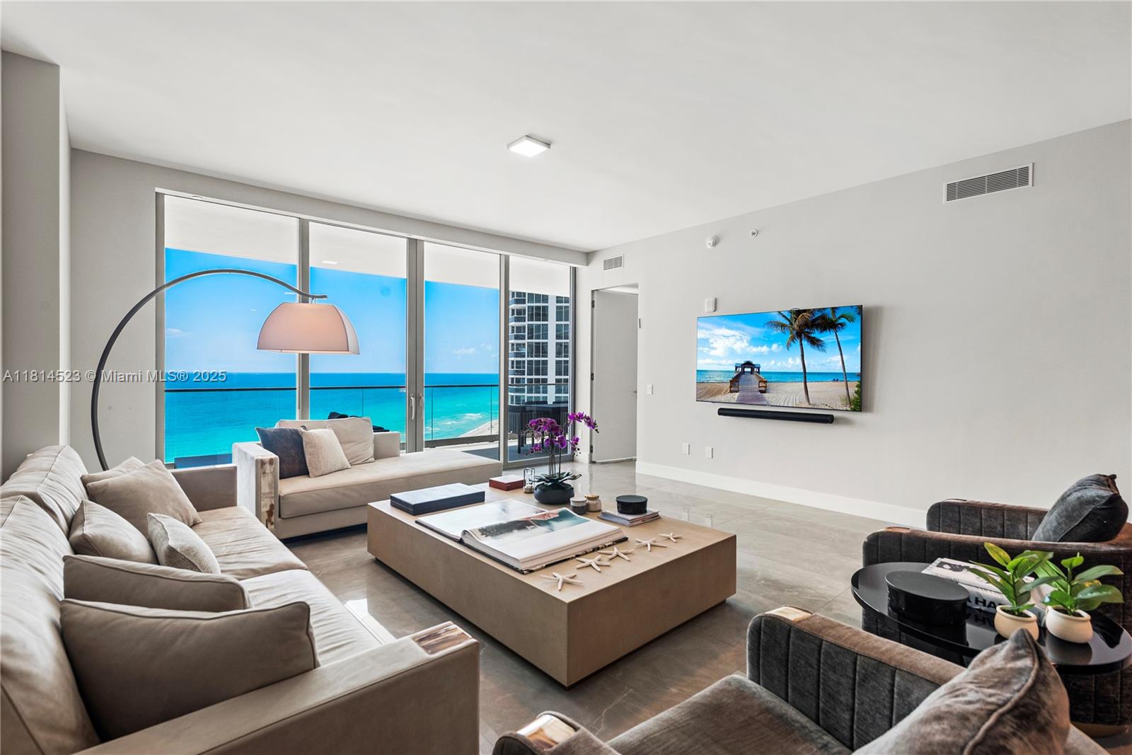 Gorgeous 3 bedrooms + studio oceanfront apartment at Residences by Armani Casa, Sunny Isles Fl. Highest quality finishes in kitchen & bathrooms by Armani Casa, two large/deep terraces; facing the turquoise ocean with white sand. And bayview/city view with amazing sunsets in the second. Principal bedroom with builtin minibar, walk-in closet and elegant marble bathroom with doble vanity, bathtub, shower & water-closet. Studio can be turned into a 4th bedroom with a shared bathroom. Live with style in one of the most elegant and luxurious residences in Miami. Armani Spa, Armani café, top of the line gym, restaurant, oceanfront outdoor jacuzzi & much more. UNIT COMES FURNISHED.