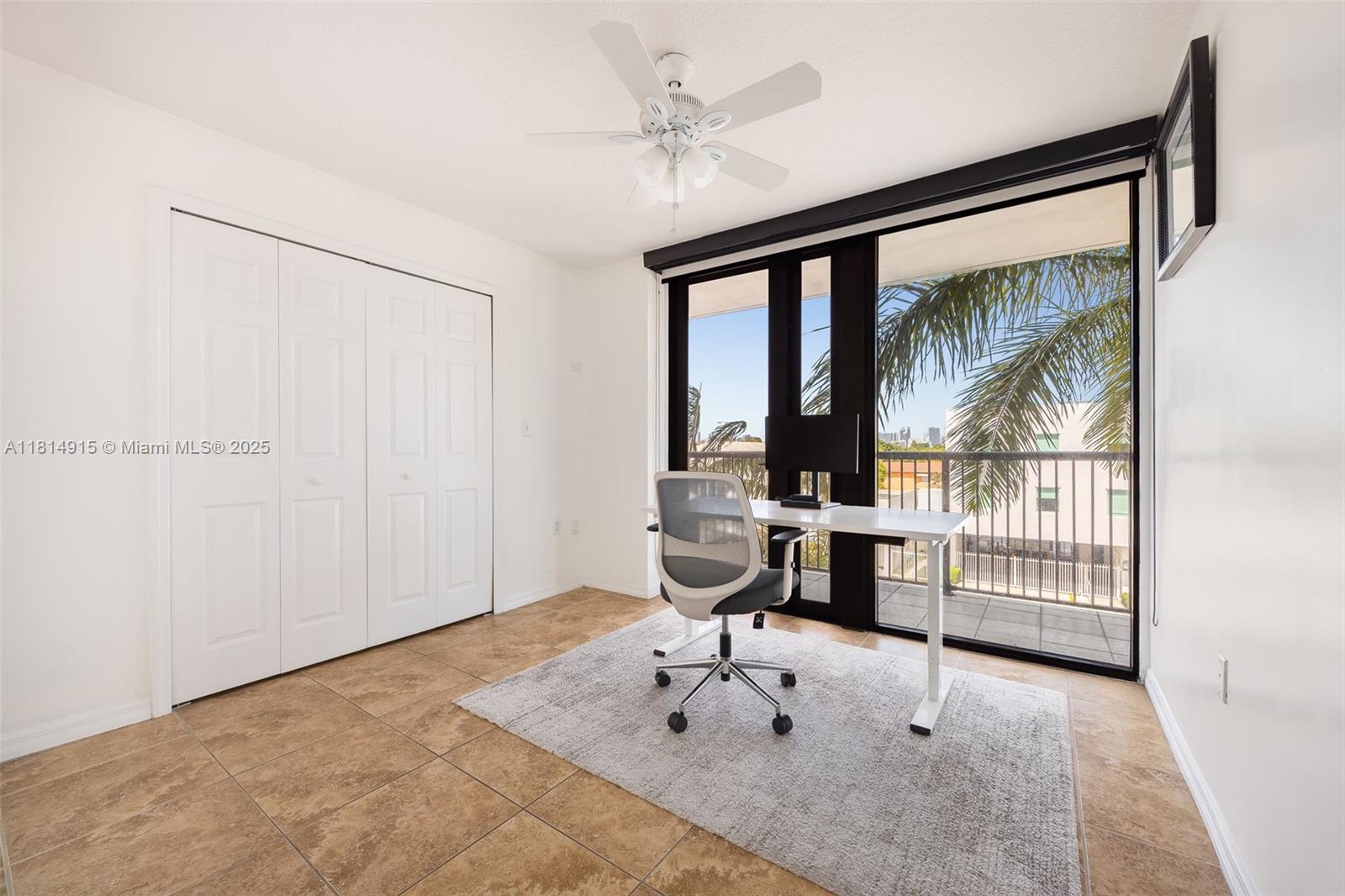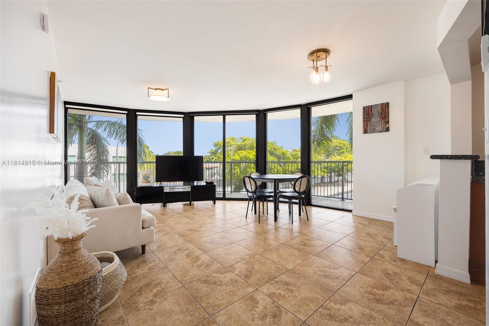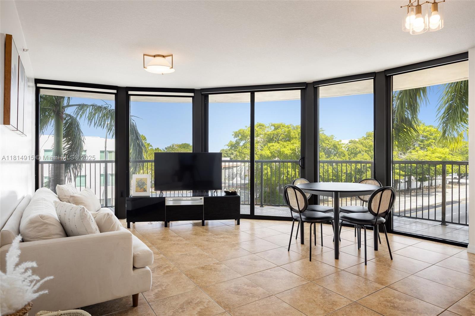 Bright, inviting, and perfectly located—this furnished 2BR/2BA condo offers easy living in the heart of Coral Way. The open layout flows to a private wraparound balcony with tree-lined views and impact glass. Features include ceramic tile flooring, in-unit washer/dryer, walk-in closet, and blackout shades in both bedrooms. This corner unit includes one assigned covered parking space in a secured garage and offers same-floor access to the pool, fitness center, and community room. Minutes from Coral Gables, Shenandoah Park, Coconut Grove, Brickell, MIA, UM, and major hospitals.