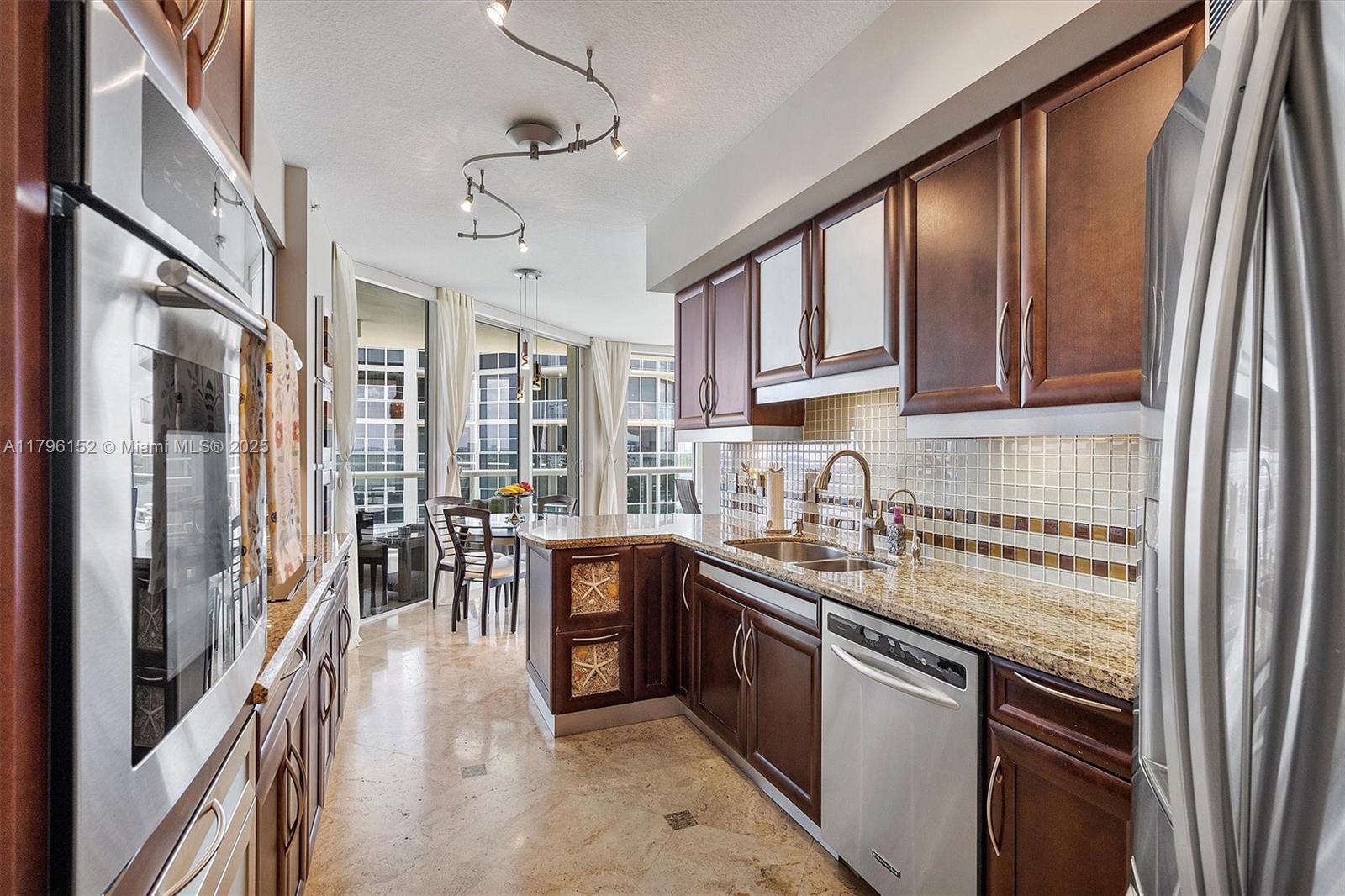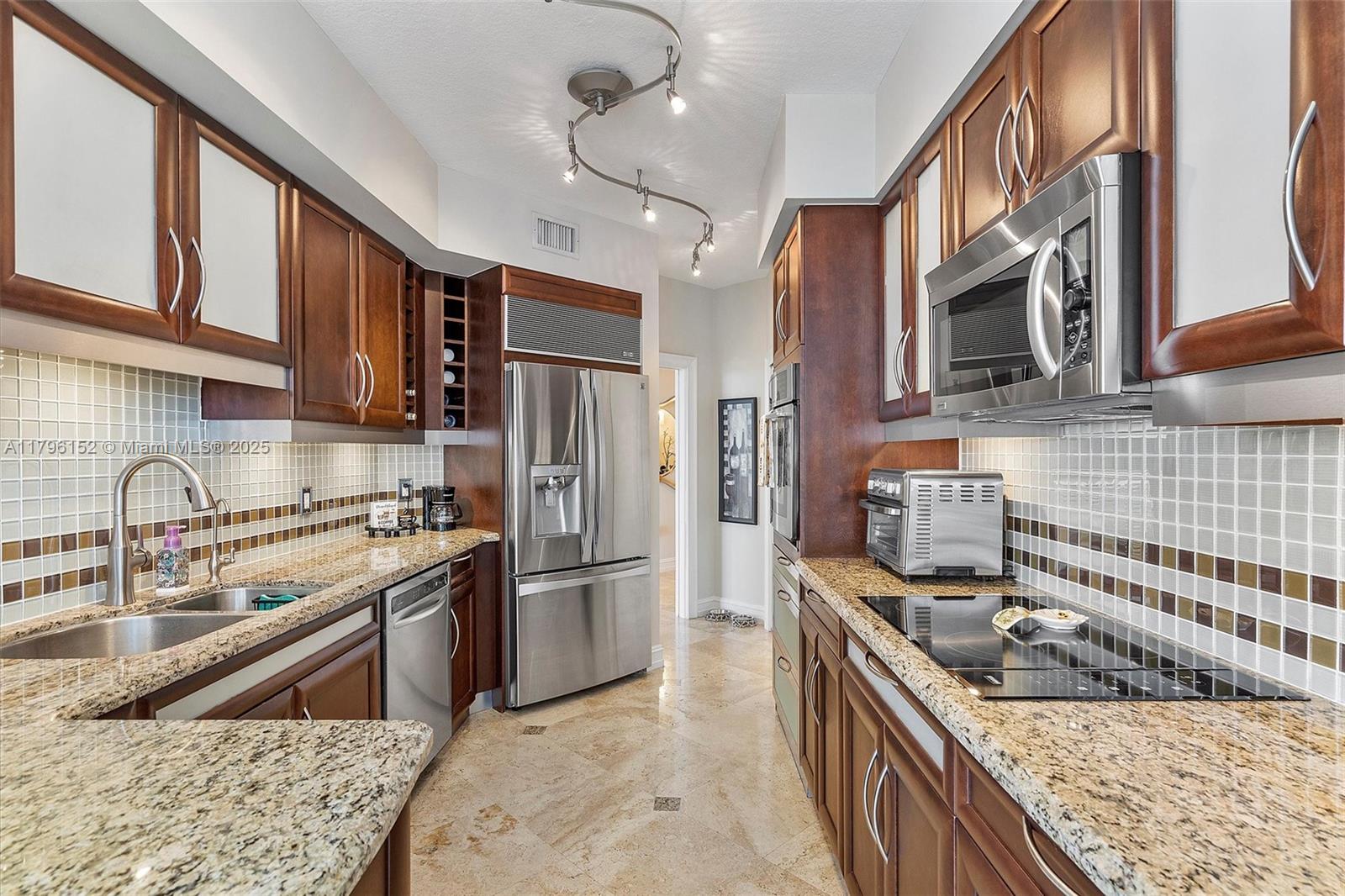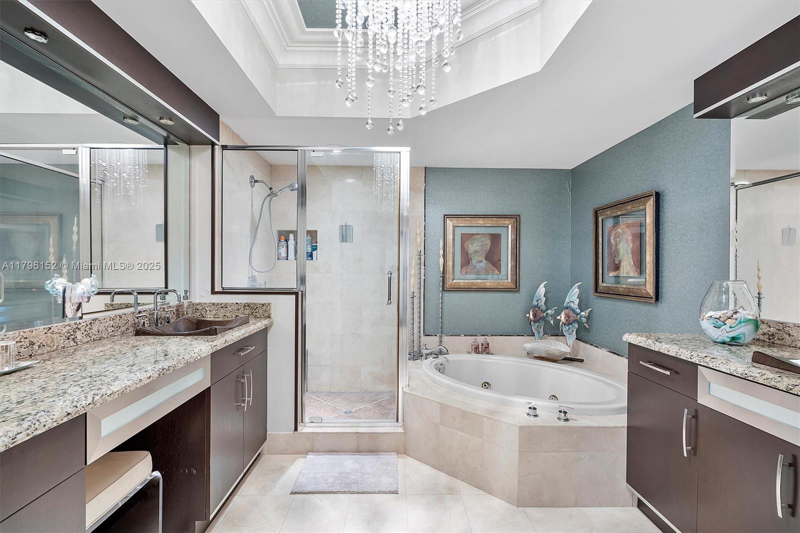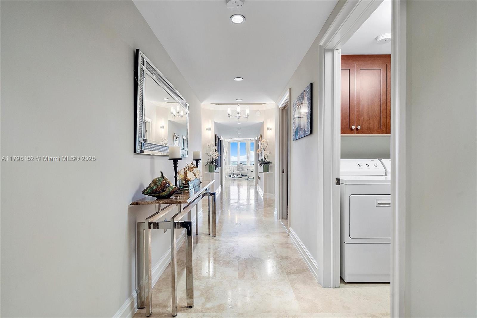 DIRECTLY ON THE SAND! BEAUTIFULLY APPOINTED OCEANFRONT RESIDENCE OFFERS EXPANSIVE VIEWS OF THE OCEAN & INTRACOASTAL. PRIVATE ELEVATOR W/ FOYER ENTRY & DOUBLE GLASS DOORS WELCOMES YOU INTO THIS BRIGHT OPEN RESIDENCE FEATURING MARBLE FLOORS, CROWN MOLDINGS, RECESSED LIGHTING, FLOOR TO CEILING GLASS, OPEN LIVING & DINING SPACE WITH A LARGE WRAPAROUND BALCONY, GOURMET KITCHEN W/ DOUBLE OVENS, GRANITE COUNTERTOPS AND BACKSPLASH, STAINLESS APPLIANCES, AND SO MUCH MORE! PRIMARY SUITE OFFERS LARGE MASTER BATH W/ 2 SEPARATE VANITIES, JACUZZI TUB, LARGE WALK-IN CLOSET & FLOOR TO CEILING GLASS WINDOWS. SPLIT BEDROOM FLOOR PLAN. PERFECTLY LAID OUT WITH AMPLE STORAGE. LAUNDRY ROOM W/ SINK. FULL SERVICE LUXURY BEACHFRONT BUILDING WITH ALL THE AMENITIES ANYONE COULD WISH FOR AND CONCIERGE SERVICES.