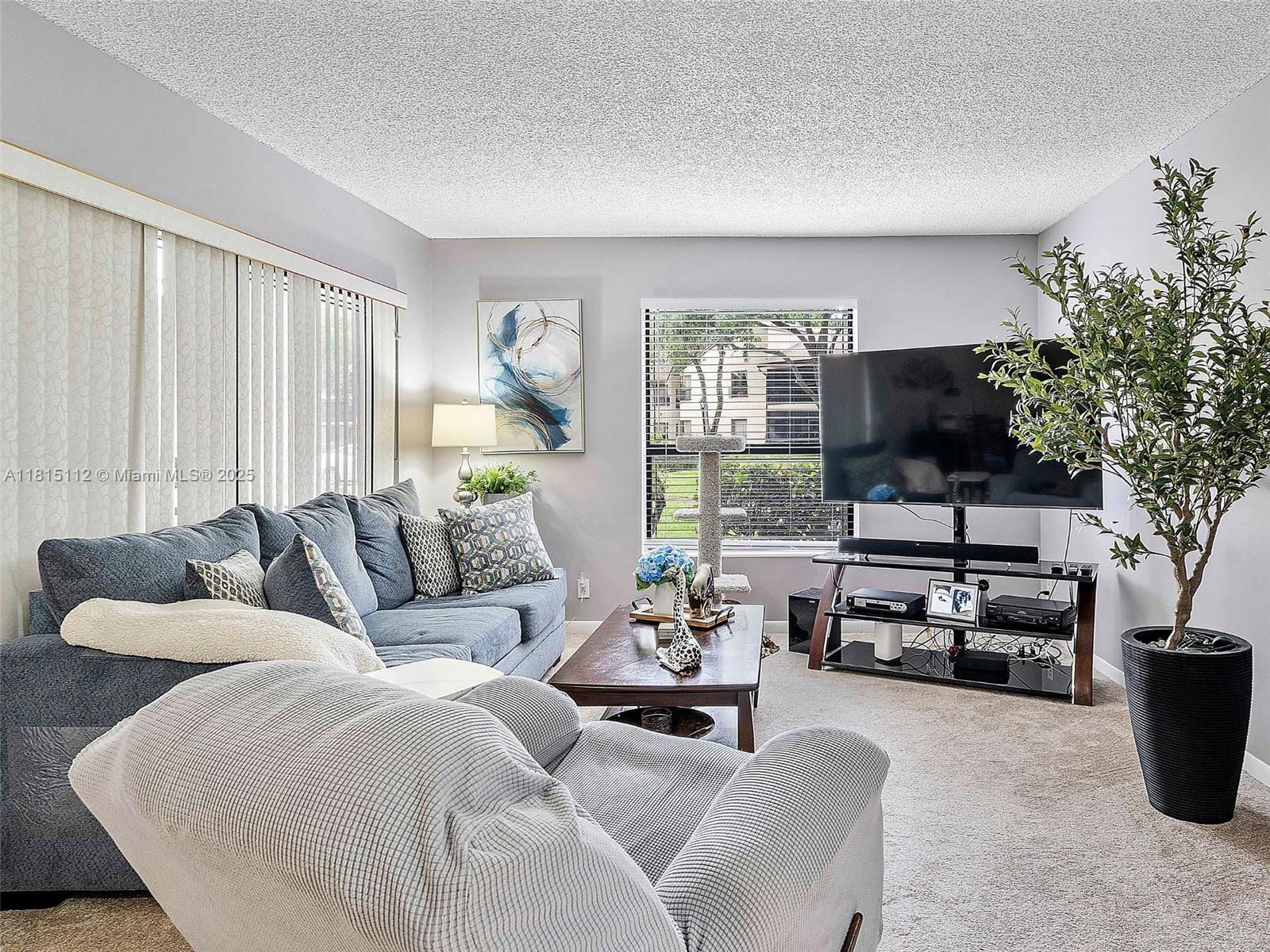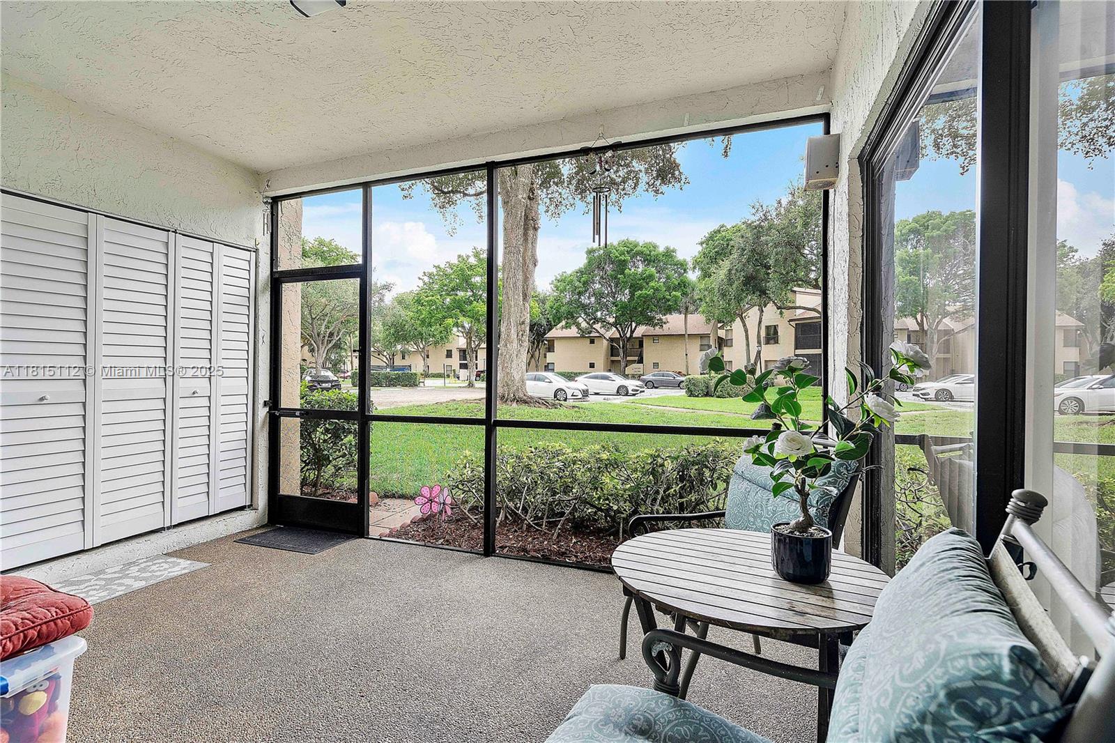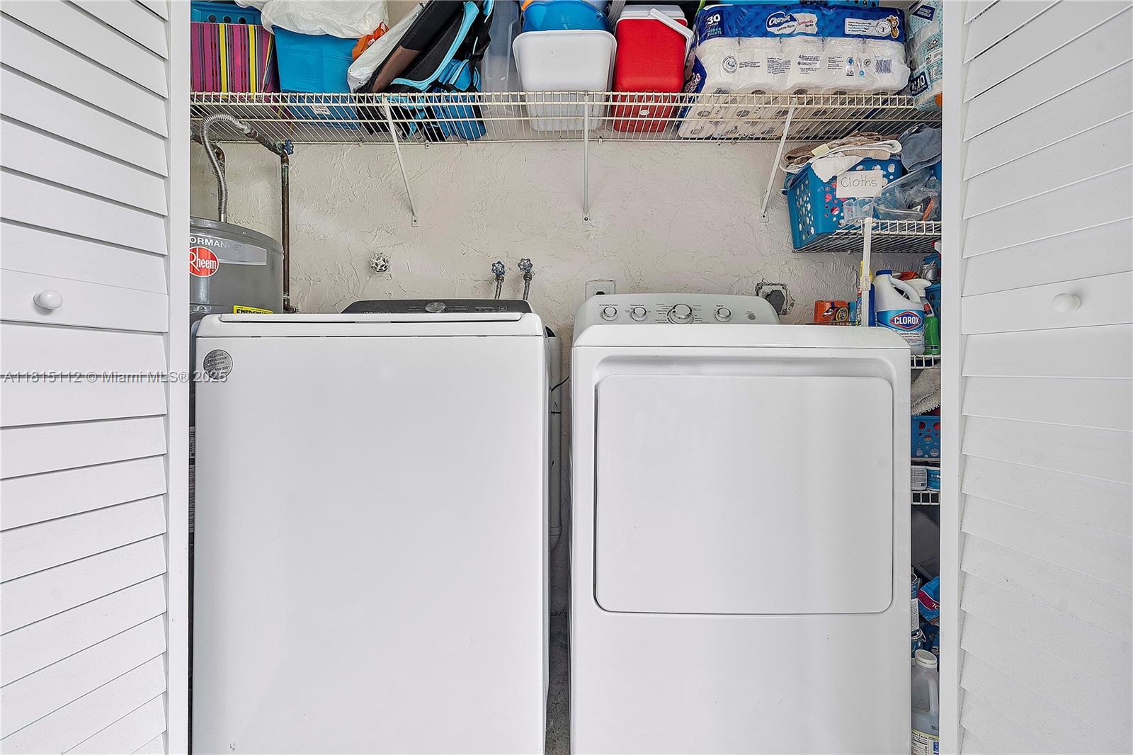 Welcome to this charming 2-bed, 2-bath first-floor condo in an all-ages community with a peaceful water view from the kitchen. This move-in-ready unit features 982 sq ft under air and 1,233 with the screed patio, a full-size washer and dryer on the patio, and a 2023 roof. Leasing is allowed right away, making it perfect for homeowners or investors. The 40-year certification is complete, and there's no minimum down payment required by the HOA. The HOA includes roof, exterior insurance, water, pest control, sewer, trash & much more. Enjoy the Township amenities: gym, athletic pool, outdoor jacuzzi, sauna, theater, yoga, dance lessons, tennis courts & more. Conveniently located near major highways, shopping centers, parks, and beautiful beaches. Easy to show.