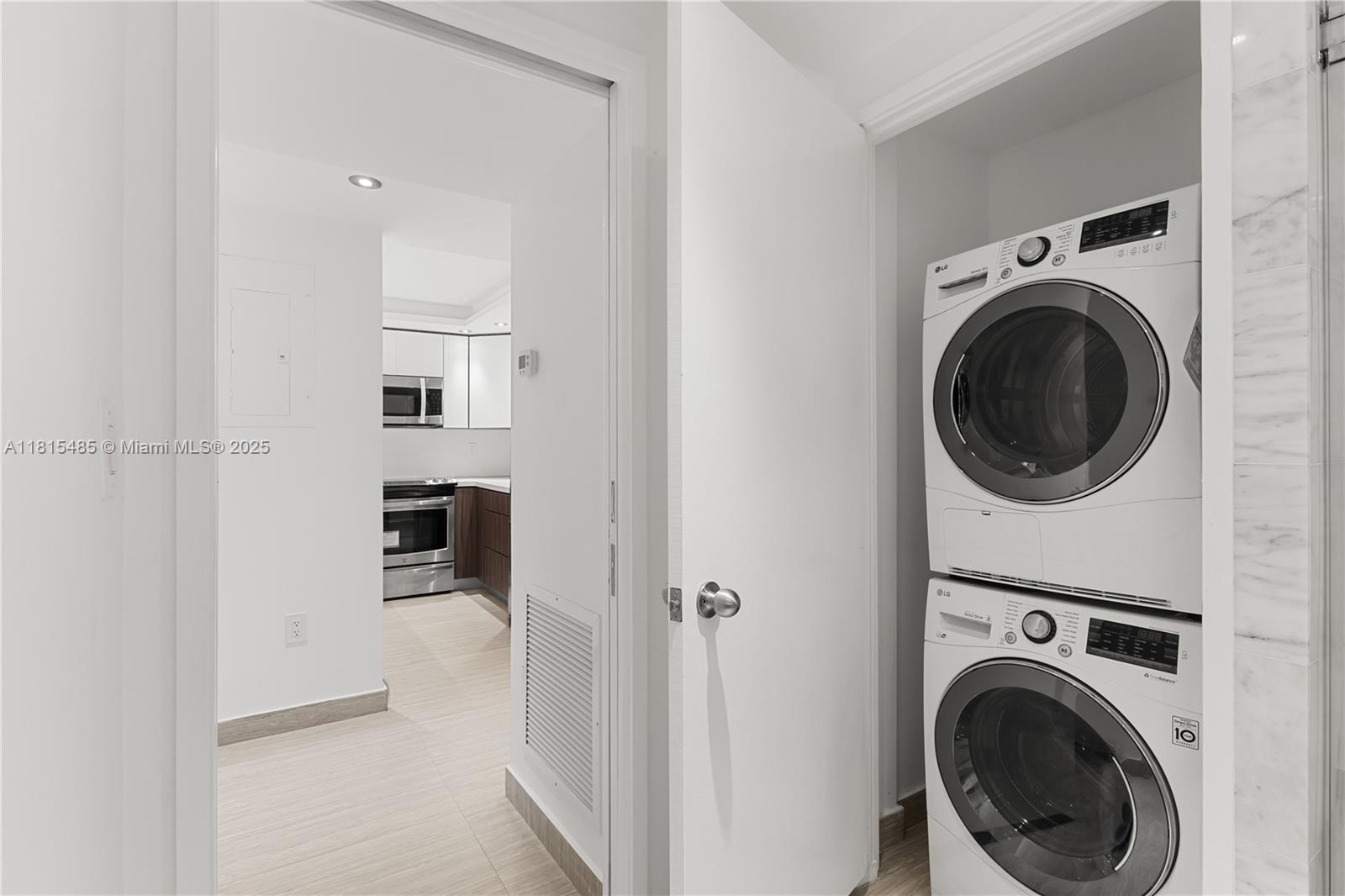 Seller was relocated for work: priced to sell fast! Completely updated 1 bedroom, 1 bathroom w/2nd floor garage parking, & washer & dryer in unit! Beautiful tile floors throughout. Gorgeous open kitchen w/stainless steel appliances including French door fridge & flat top range, w/white quartz countertops & modern cabinetry. Spacious bath w/glass shower enclosure & front load laundry. Huge walk-in closet w/built-ins, custom lighting & blinds, impact windows & doors, & open balcony w/views to the ocean. In newly remodeled Oceanfront South of 5th St building w/no assessments: new Oceanfront heated pool, new elevators, & new exterior completed. Low fees include reserves, cable, wifi, & beach service including two chairs & an umbrella. New gym & hallways are next. Great upside for a buyer!