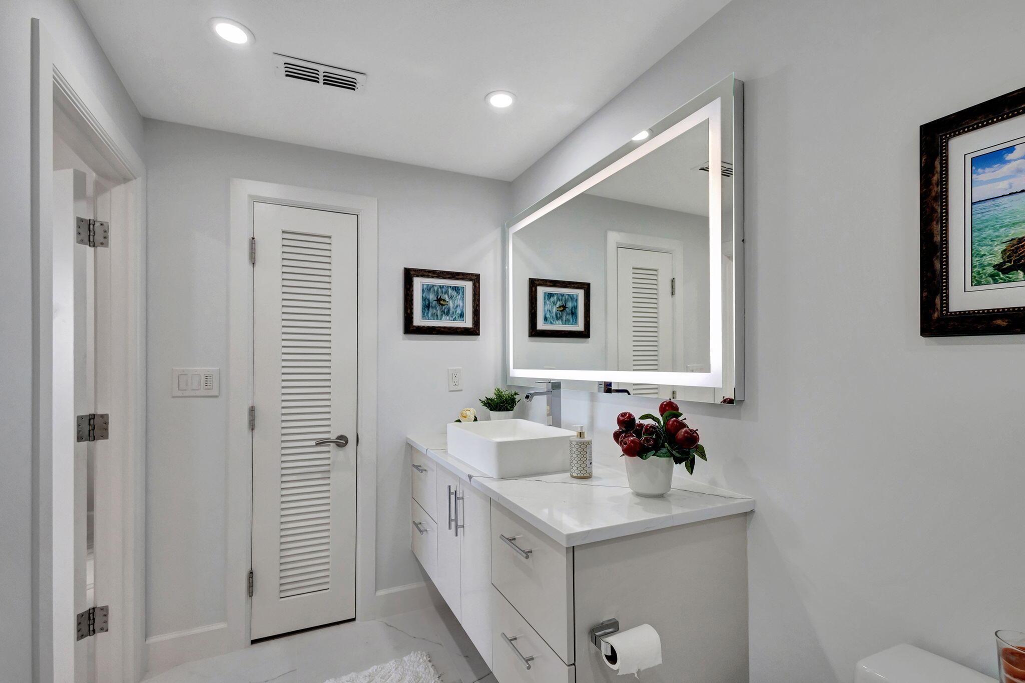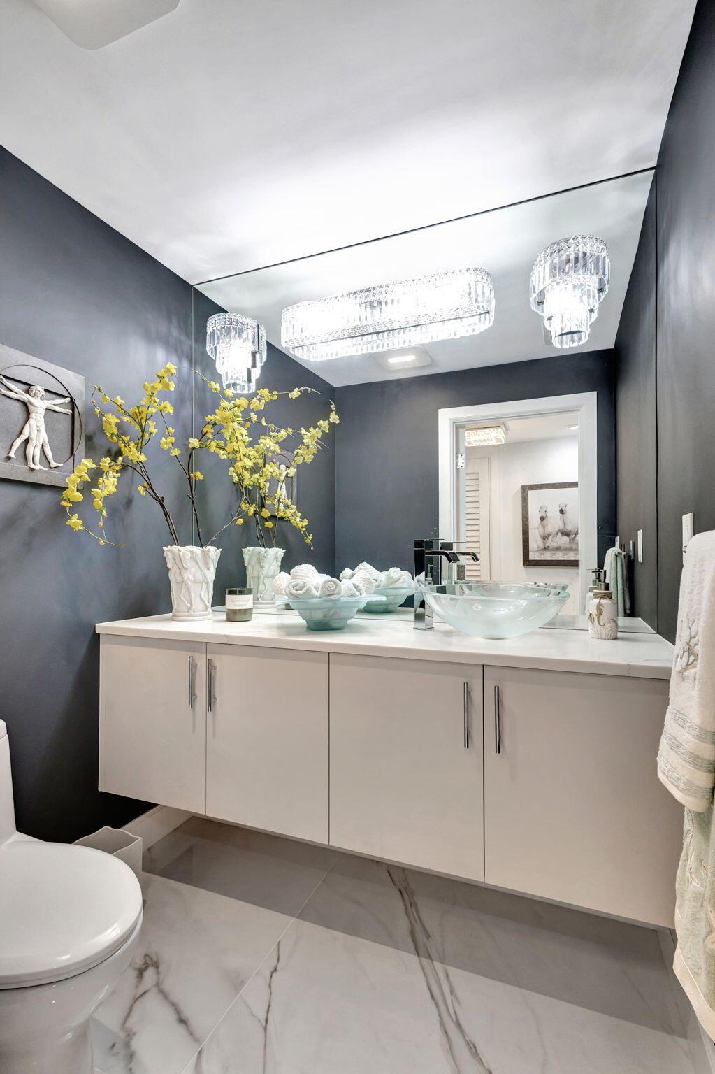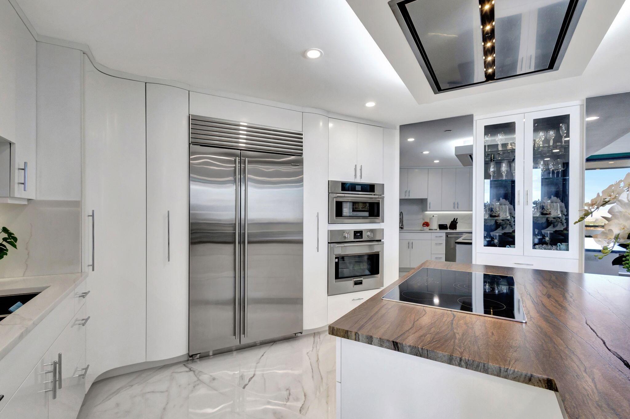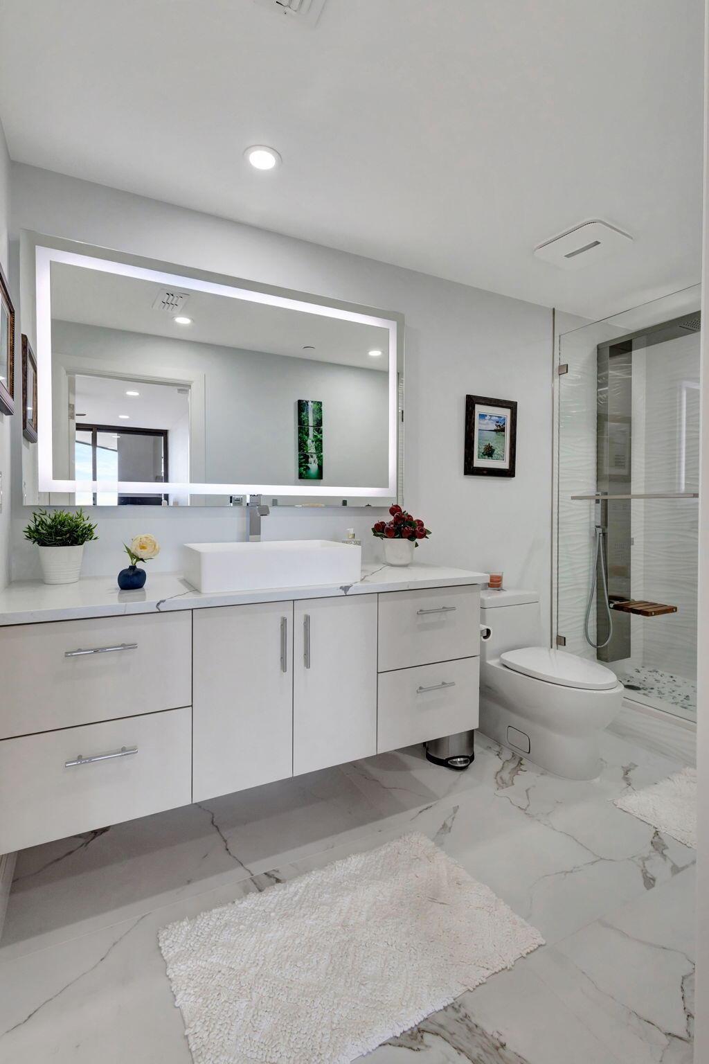 Welcome to Luxury living in Lake Point Tower. This stunning 2 bedroom, 2.5 bath condo offers breathtaking marina, intracoastal and ocean views. The north facing exposure is truly exceptional, offering year-round enjoyment without the need to shield your windows and obstruct the view. Enjoy a comfortably cool interior thanks to the desirable positioning of this condo, with reduced direct sun exposure creating a naturally temperate living space. Thoughtfully designed recessed LED lighting on dimmers brightens the home as needed, offering both energy efficiency and ambiance. The living room features custom cove lighting with over 2,000 color options, allowing you to set the perfect mood for any occasion. A sleek electric heater is integrated into a one-of-a-kind diagonally built accent wall,