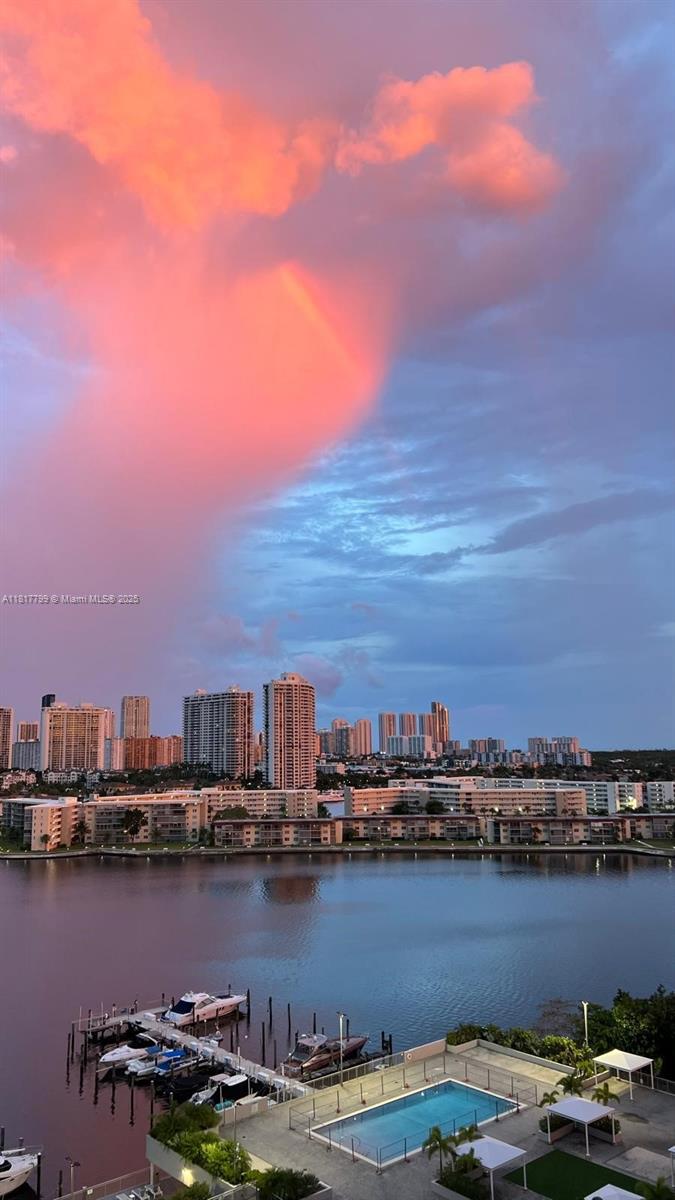 Attention: This beautifully remodeled, spacious, and bright 2 bed / 2 bath condo offers 1,565 SF on the 15th floor of the sought-after Del Prado Condo and won’t last! Enjoy stunning water views from two balconies—one facing the ocean and the other overlooking Little Maule Lake, the city, and skyline. Features include ceramic tile floors throughout, a modern kitchen with granite countertops and stainless steel appliances, and updated baths, and furniture included. Double balconies provide great cross-breeze and sweeping north/south views. Amenities: 5-star fitness center, tennis, salon, private marina, 2 pools, restaurant, mini-mart, and 24/7 gated security. Prime Aventura location—walk to shops. Minutes from Sunny Isles Beach, Aventura Mall, I-95, airports, and schools. Show and Sell!