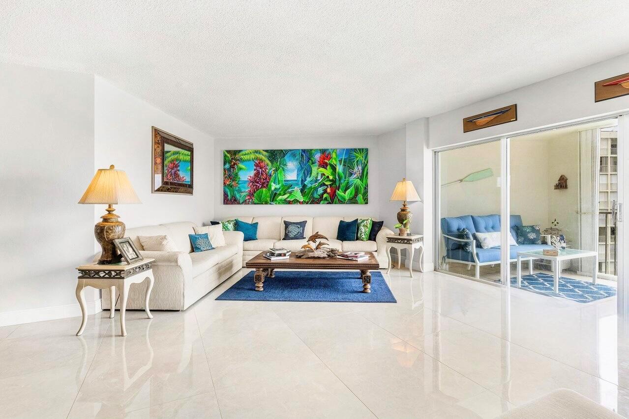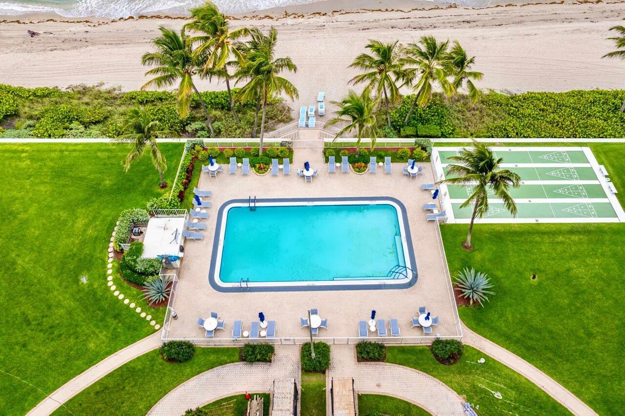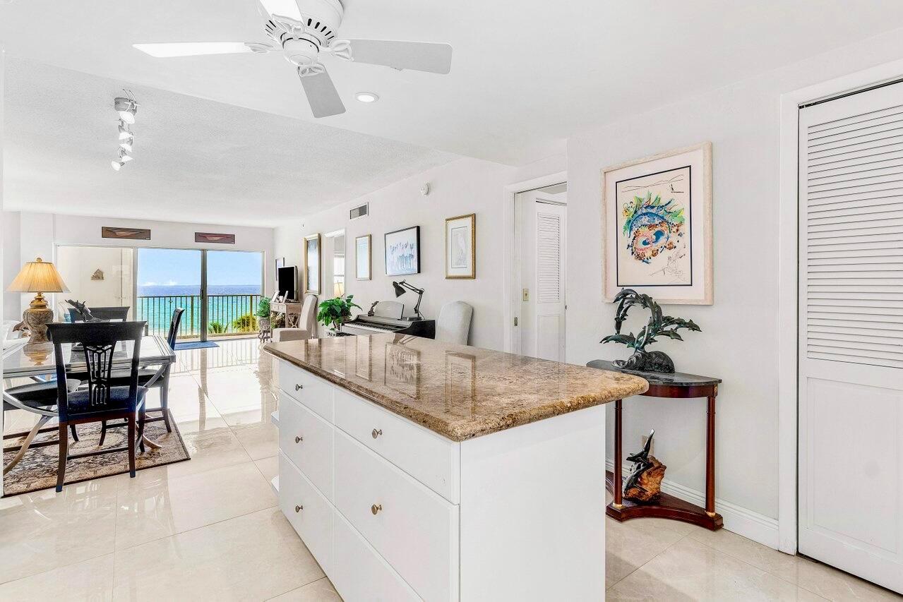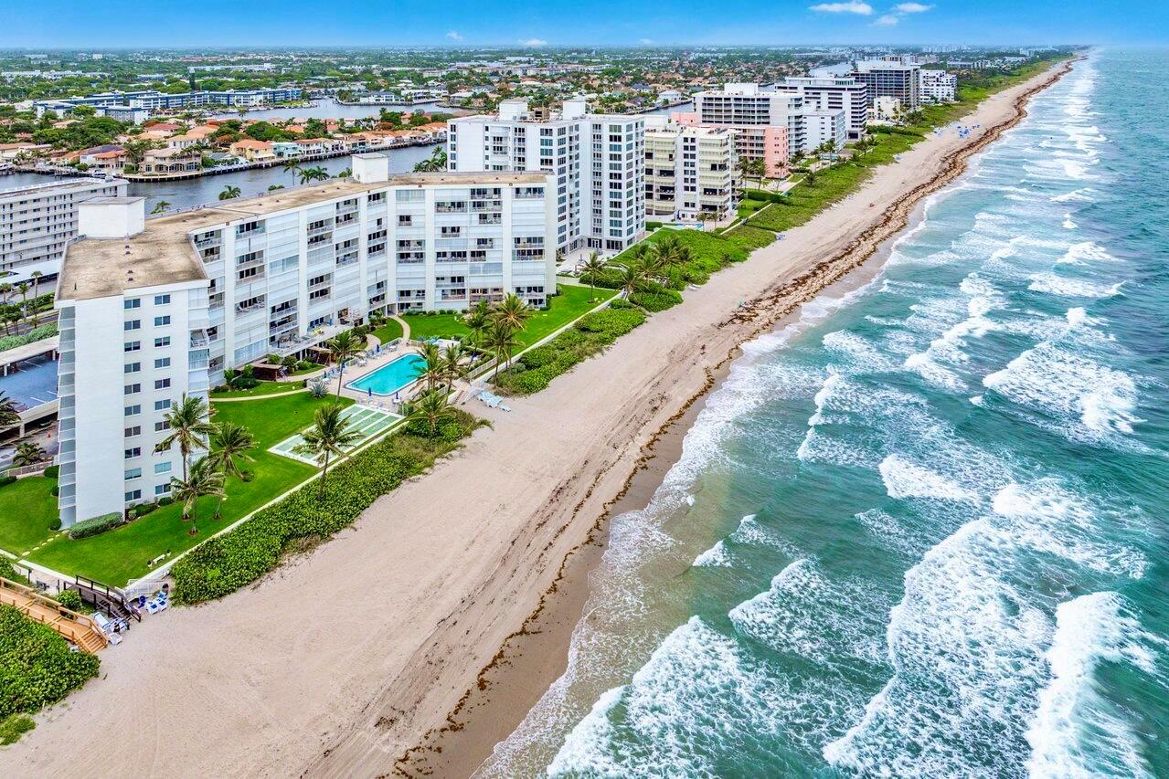 WOW! NEWLY-PRICED TO SELL! Penthouse Towers has only two available of the largest ''elbow'' residences and this two-bedroom, two-bath is the highest on Floor 7! It also boasts a desirable SE location, right ON THE SAND with 400 feet of ''private beach'' offering uninterrupted views of the ocean -- amazing sunrises, magical moonrises and fabulous winter season breezes! Spacious living areas feature new porcelain-marble flooring throughout, exquisite OPEN KITCHEN complete with center island, impact glass door and windows (south side) as well as accordion shutters on the 26'x8' covered dining balcony with storage closet. A warm, community atmosphere includes countless amenities for its friendly active residents to enjoy in addition to many scheduled social events throughout the year!