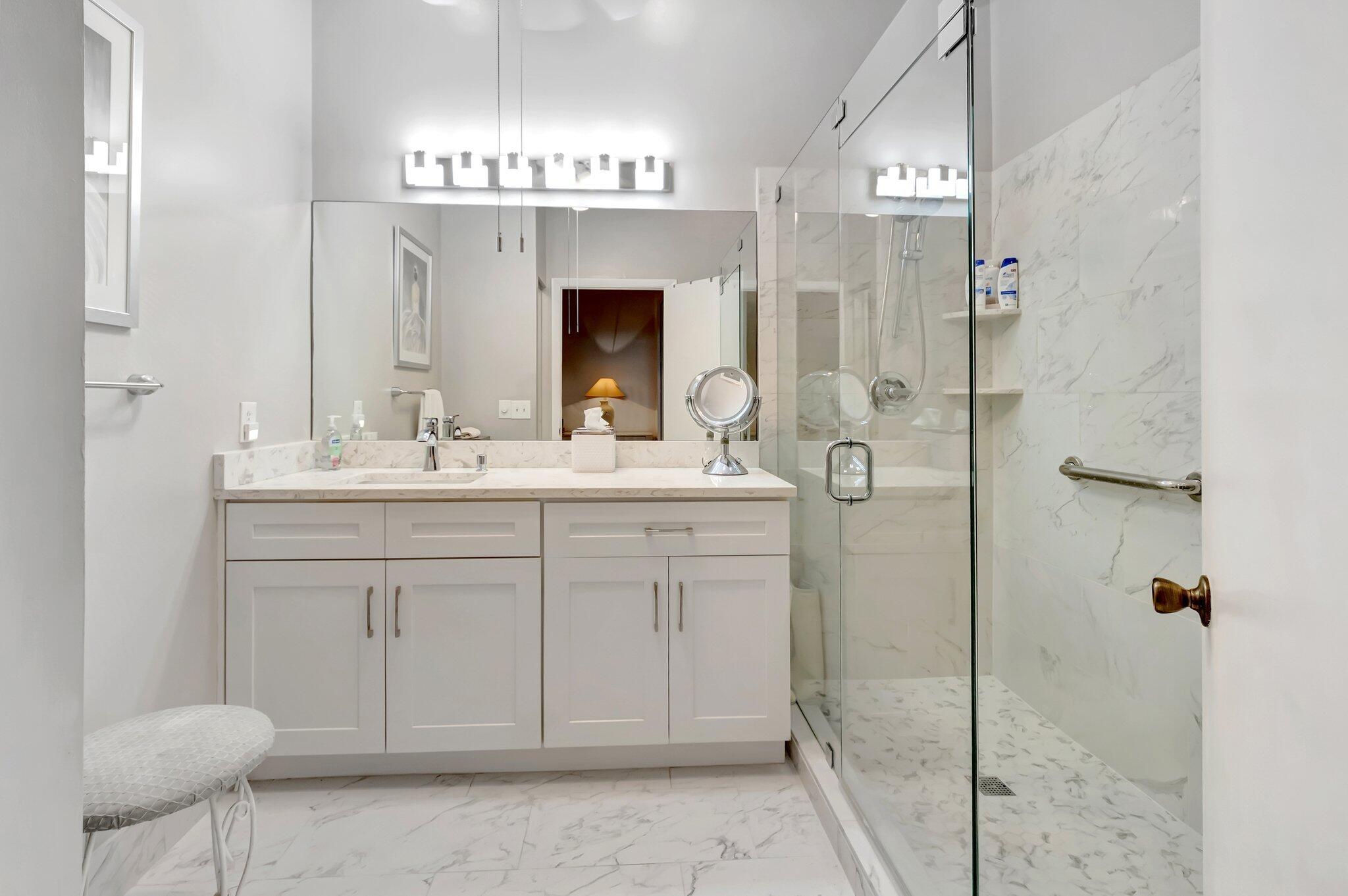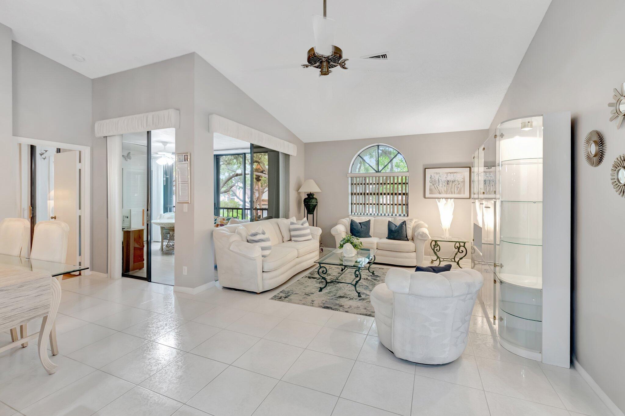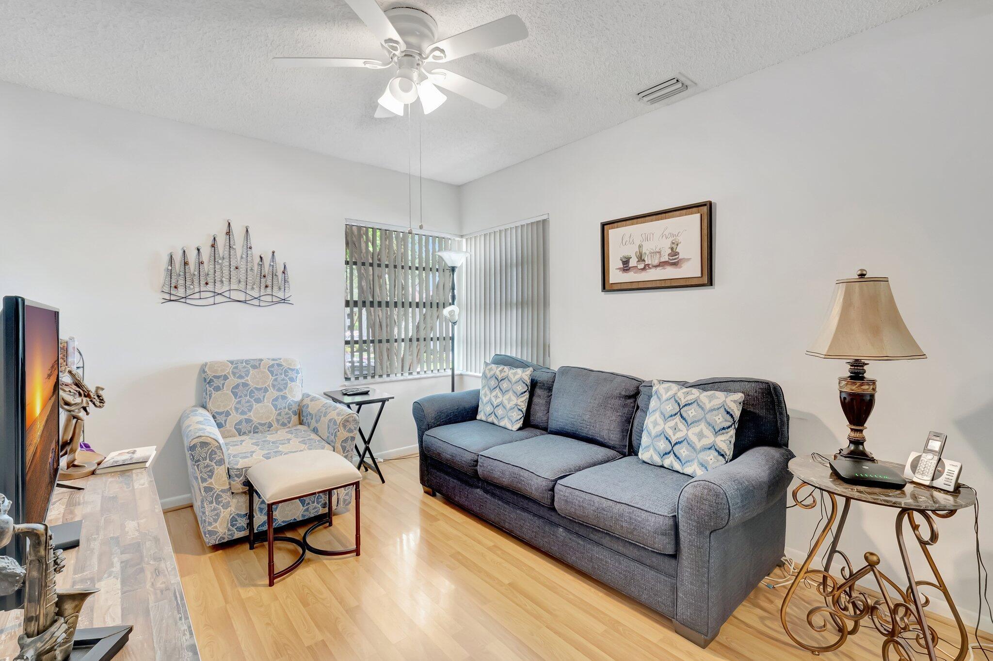 This second-floor condo offers a spacious and modern living experience with three bedrooms, two full bathrooms, and a multitude of updates that make it truly move-in ready. Every aspect of this home has been thoughtfully designed for comfort, style, and functionality. Just a few steps away from a satellite pool! It's just like having your own private pool! Ceramic tile flooring spans the living areas, offering a clean look. All three bedrooms feature durable and attractive laminate flooring. Both bathrooms boast luxury vinyl flooring for a contemporary finish. The master bathroom has been beautifully renovated with granite countertops, ample storage, and a frameless walk-in shower. The second bathroom features an updated granite-top vanity and glass-enclosed bathtub.