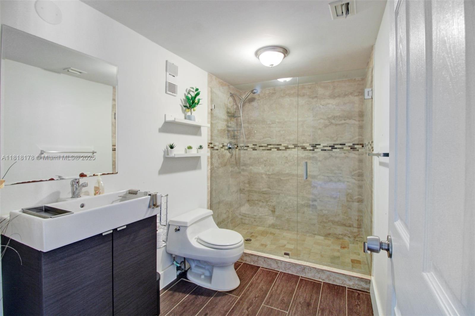 Beautiful 2-bedroom, 2-bathroom condo in the sought-after Coco Wood community. This first-floor residence boasts a modern kitchen, a screened balcony with partial lake views, and a recently remodeled bathroom. The master suite features a spacious walk-in closet and ample storage. Enjoy top-notch amenities including a waterfront pool, 24-hour security, and a welcoming lobby area. Ideally located just minutes from I-95, major malls, and Aventura Park. Maintenance includes cable. There are no special assessments, giving you one less expense to worry about as a buyer.