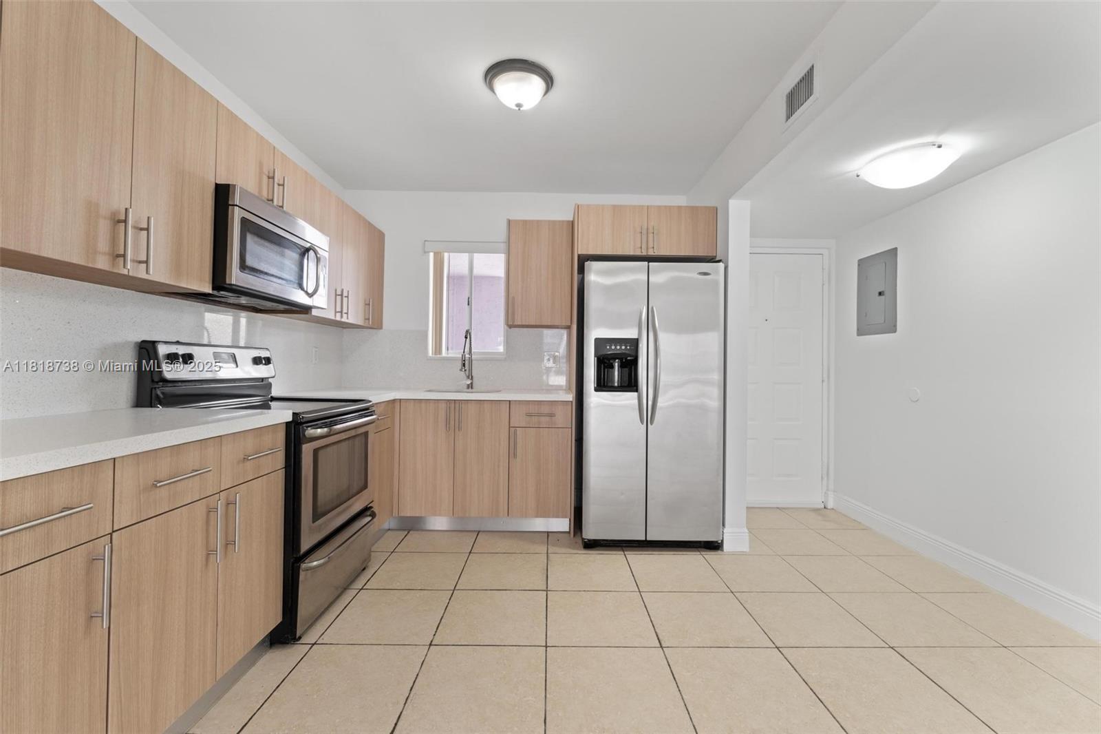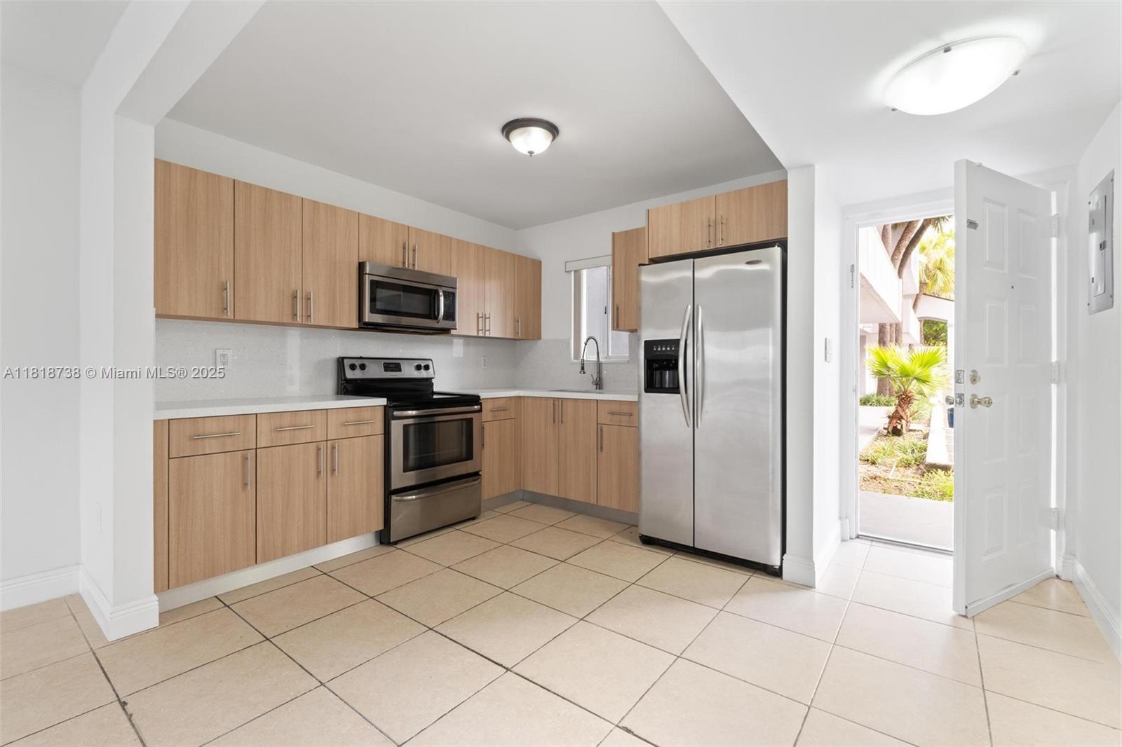 This beautifully maintained 2-bedroom,1.5-bathroom condo located in the desirable Terrazas Del Sol community.This first-floor unit offers 985 square feet of comfortable living space, ideal for first-time homebuyers,downsizes,or investors.The interior features a spacious open layout with tile flooring throughout,a modern kitchen equipped with stainless steel appliances including a refrigerator ,electric range, microwave, and in-unit washer/dryer.The well-kept, gated community offers low HOA fees per month,covering exterior maintenance and common areas. With strong rental potential and excellent long-term value, this move-in-ready condo is a great opportunity in one of Hialeah’s most central neighborhoods.