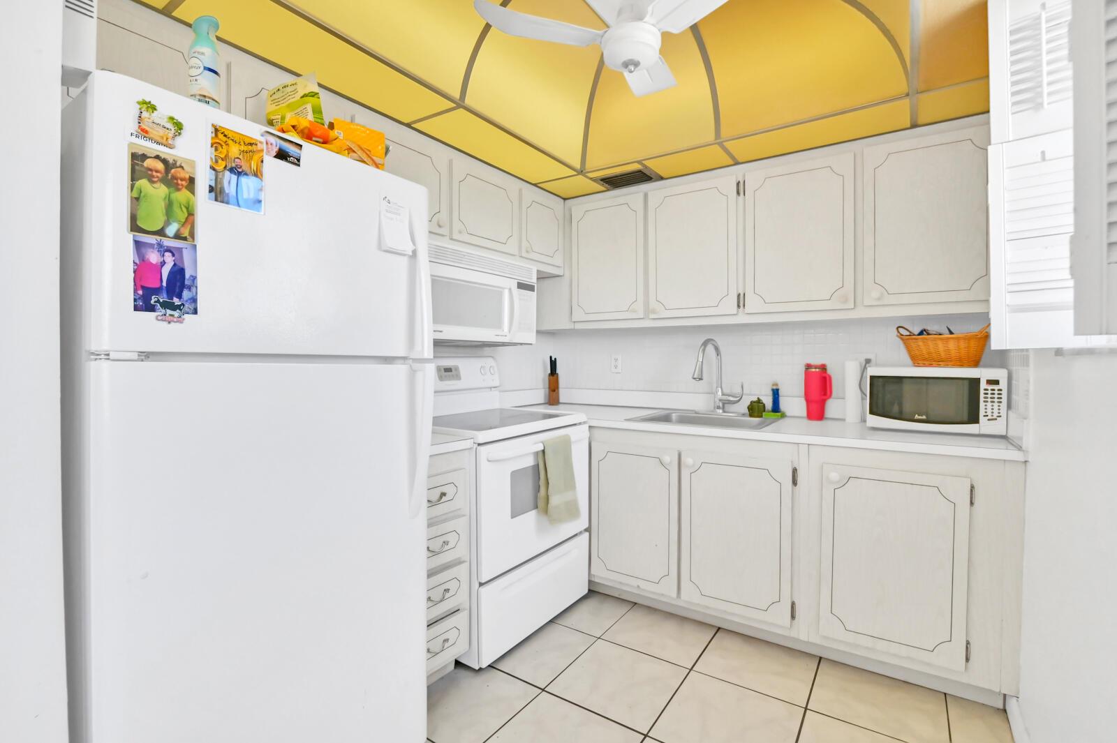 Step into this delightful end/corner unit 2-bedroom, 2-bathroom condo situated in a peaceful 55+ community, offering an ideal balance of comfort and convenience. With 825 square feet of space, this charming unit boasts an array of attractive amenities. As you enter, you'll find a well-equipped kitchen featuring essential appliances such as a refrigerator, stove, dishwasher, and microwave, ensuring cooking and dining are enjoyable experiences. The living area is complemented by a light fixture and ceiling fans, enhancing the overall ambiance and coziness of the home. Enjoy the convenience of designated parking, making arrivals and departures hassle-free. Step out onto the covered and screened balcony, providing a serene space to relax and take in the beautiful surroundings.