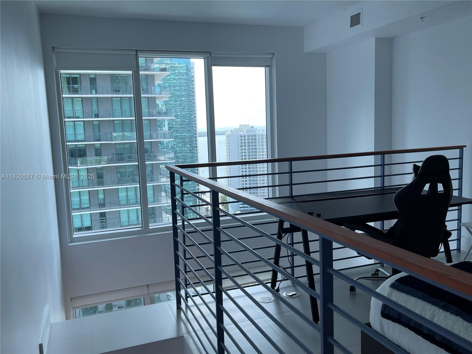 Bright and open 2 story loft style floorplan 1 bed/1.5 bath facing east high floor with panoramic open views in Brickell. This unit offers water and Miami skyline views. Beautiful sunrise!!! Kitchen have a breakfast area, 1 garage space. Master bedroom with walking closet upstairs. Washer and dryer in the unit. Amenities complete with fitness center, wet room, cold plunge pool, sauna, steam, business center, game room, cafe, 24 hours valet parking, management on site. Across the street to Cipriani Residences. Walking distance to many shops, restaurantes, banks, grocery stores, offices. Ideal for end user or an investor. Not special assessments, full reserve in the building. 20 ft. Ceilings.
