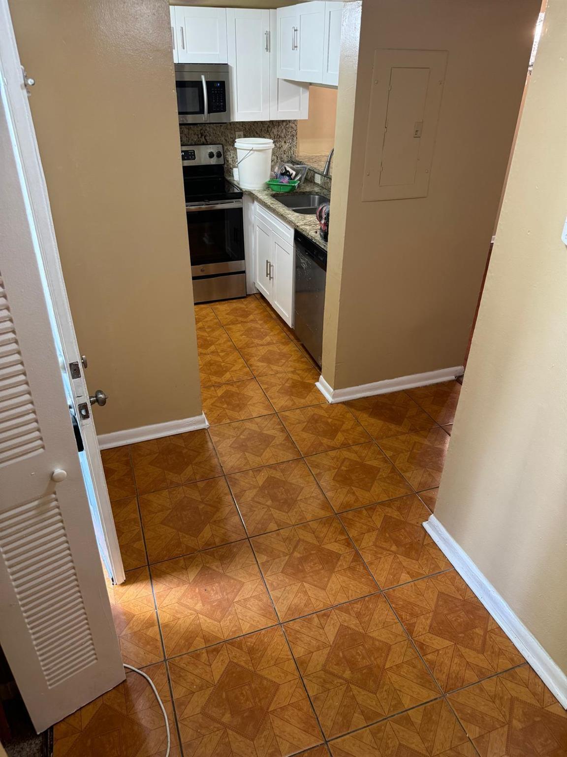 Beautiful 3/2 large corner condo on 1st Floor,open balcony with lake view at back, newer appliances, freshly painted, wood floors. Very easy access from Belvedere Rd. Conveniently located to schools, shops & main roads.