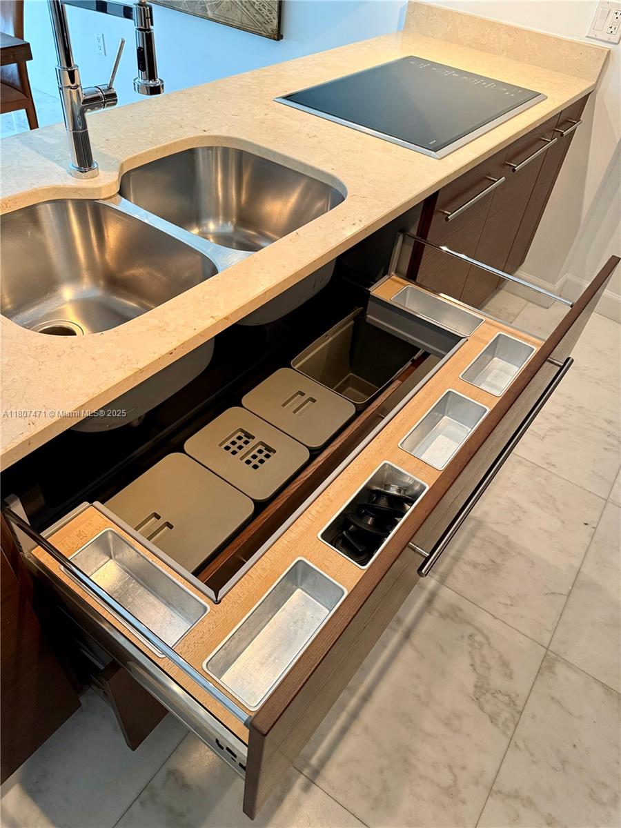 REDUCTION/RARE OPPORTUNITY - Desirable 2 Bed/1 Den/2 Baths Bay Unit at IconBrickell located on the 8th floor with balcony overseeing the Biscayne Bay and Brickell Key from every room. The unit features split floor plan, terrace, marble floors, electric blackout curtains, ensuite bathrooms, and recent Heat Pump AC System. 1 garage space on the same floor, right outside your entrance! Furniture can be bought as well, an absolute turn key deal!