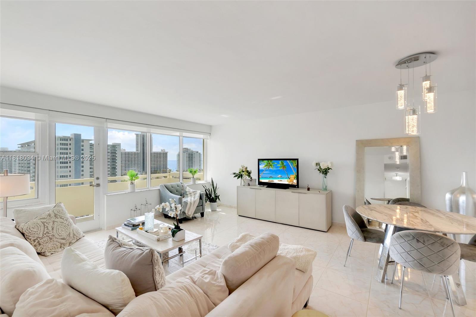 RENOVATED 2/2 CONDO WITH STUNNING CITY AND OCEAN VIEWS FROM ALL NEW IMPACT WINDOWS. PRICED WELL BELOW RECENT SALES. Tastefully updated eat-in kitchen. Primary bedroom features a separate vanity area with custom closets, including a walk-in. Second bedroom is bright with ample closet space. Both bathrooms are MAGAZINE-WORTHY. Watch spectacular sunrises each morning! The ocean is practically at your doorstep. Amenities include: a large, gorgeous pool right on the Intracoastal, a fully equipped gym, and a community room. This community is close to excellent shopping and restaurants, and directly across from the beach. EV CHARGING STATIONS AVAILABLE! MAINTENANCE INCLUDES CABLE AND WIFI! BUILDING IS FINANCIALLY SECURE - NO UPCOMING ASSESSMENTS! Click on VIRTUAL TOUR for VIDEO.