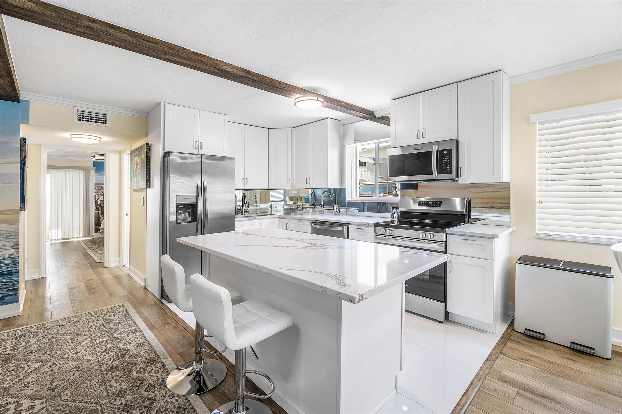 COMPLETELY RENNOVATED! NO WORRIES HERE! OWNER FINANCING AVAILABLE! Low HOA only $367! 55+ Light and bright 1st floor: NO STAIRS! Park right next to your front door! Open concept Living area, huge bedroom w/spacious closets, crown molding, new kitchen & appliances, quartz counters & table-top, big island-extra storage. Year-round comfy enclosed patio. NEW ROOF-2024. NEW TANKLESS WATER HEATER-2024 NEW-A/C-2020. ACCORDIAN HURRICANE SHUTTERS on all windows. Big utility/storage room. Laundry and mailbox just steps away. WALK across the street to HEATED POOL, John Prince Park & Lake Osborne w/walking-biking trails, boating! CLUBHOUSE with activities to suit your lifestyle. Shuffleboard, Billiards & Social Gatherings. 2.9mi to beach, 8.2mi to PBI Airport, 1.3mi to I-95. Renting after 1 yr ok