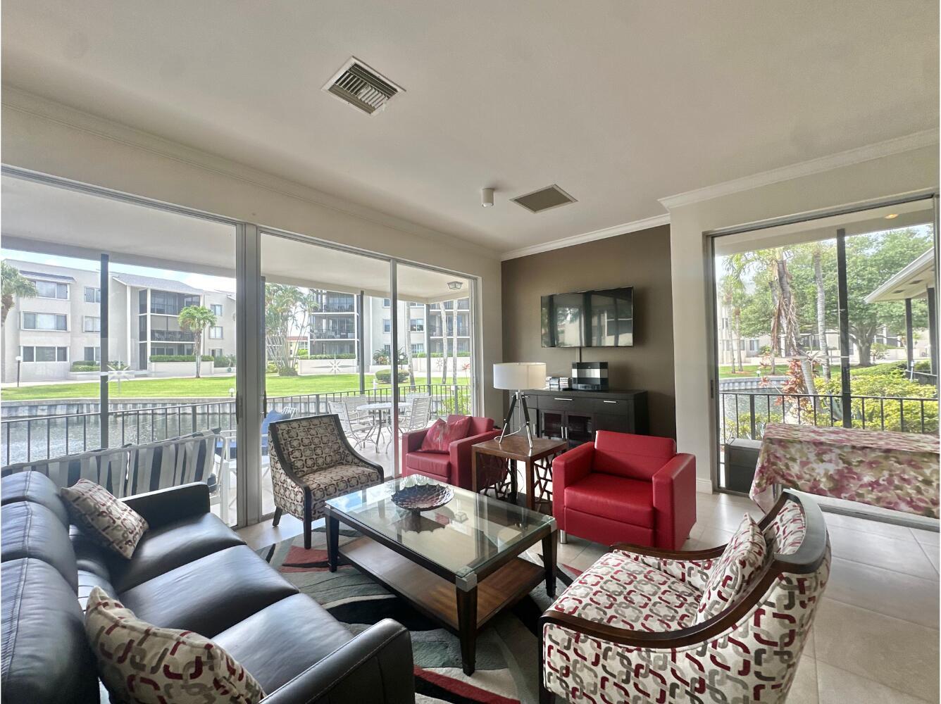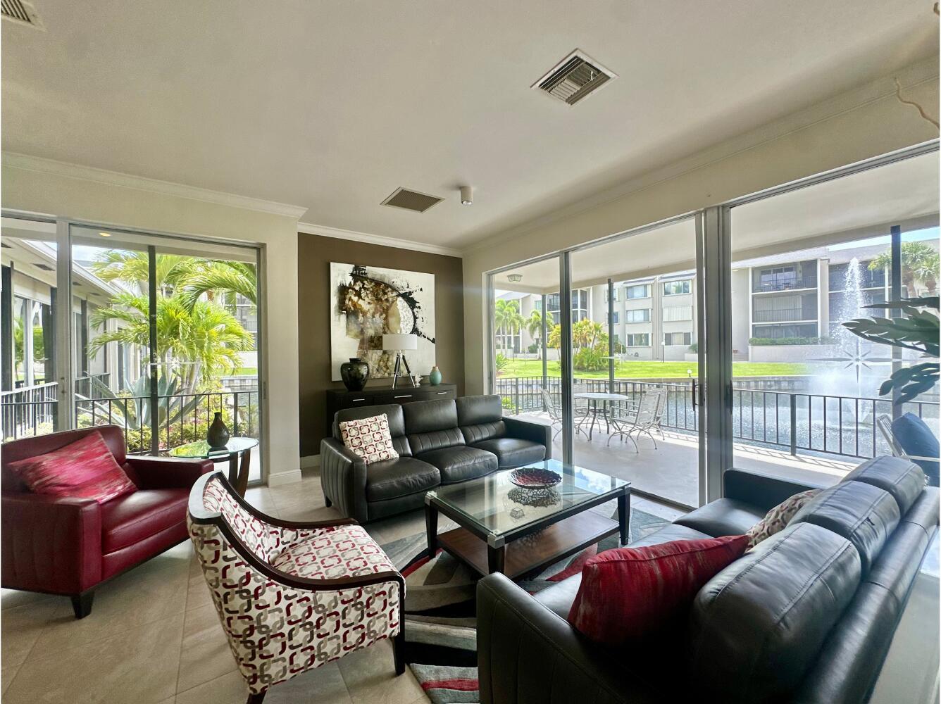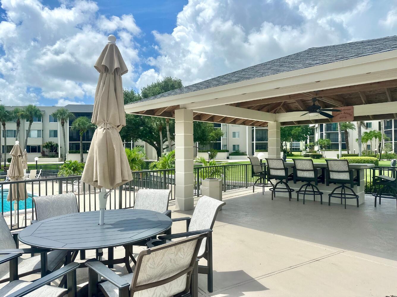 Enjoy resort-style, coastal-convenient living in this beautifully renovated and oversized 2-bedroom, 2-full-bath residence with 1,537 sq. ft. under air and 1,726 sq. ft. total. This desirable corner unit offers a spacious wrap-around screened porch with direct courtyard access to the community's many amenities. NO shared laundry; Laundry Hook-up in Unit! Inside, enjoy a brand-new kitchen, coastal luxury waterproof vinyl flooring, modern bathrooms, stainless steel appliances, and abundant natural light. Step outside to the waterfront pool, outdoor kitchen/bar with grills, and the clubhouse featuring a wet bar, kitchenette, dining area, and lounge overlooking the lake. Pickleball courts, beautifully maintained grounds, and walkable shopping and dining complete the package. Call today!