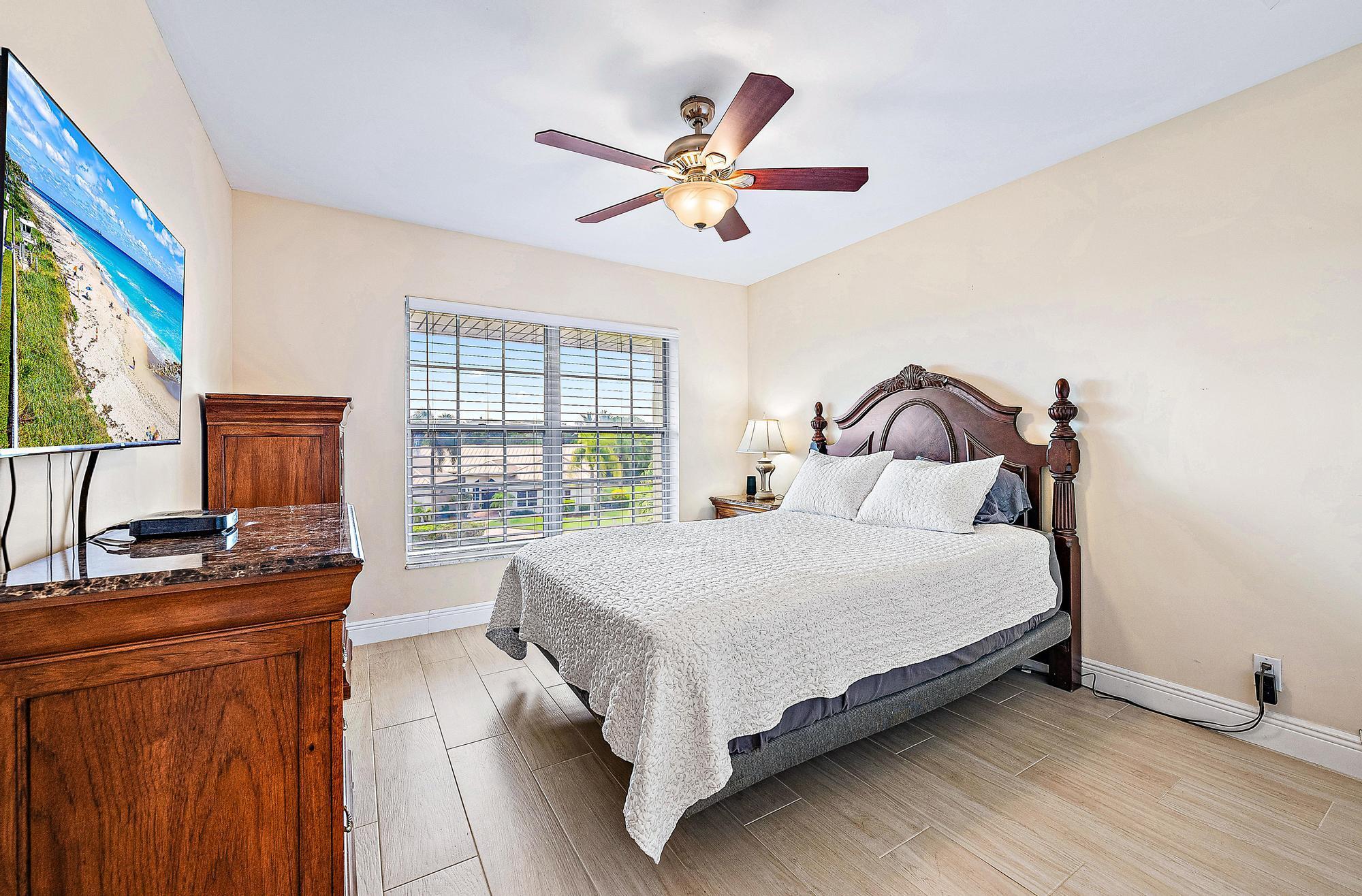 Privately tucked away on the top corner level of Tamberlane, and accessible by elevator, this condo offers peaceful charm in a premier 55+ Palm Beach Gardens community. Just steps from the elevator, enjoy nearly 1,000 sq ft of natural light, serene treetop views, and casual golf course vistas. The glass enclosed balcony adds year-round living space and a tranquil setting for coffee or relaxing. The updated kitchen features granite countertops, modern appliances, and custom cabinetry. Both bedrooms offer spacious retreats. Enjoy resort-style amenities and a prime location near PGA dining, shopping, golf, and beaches. Florida living at its finest.
