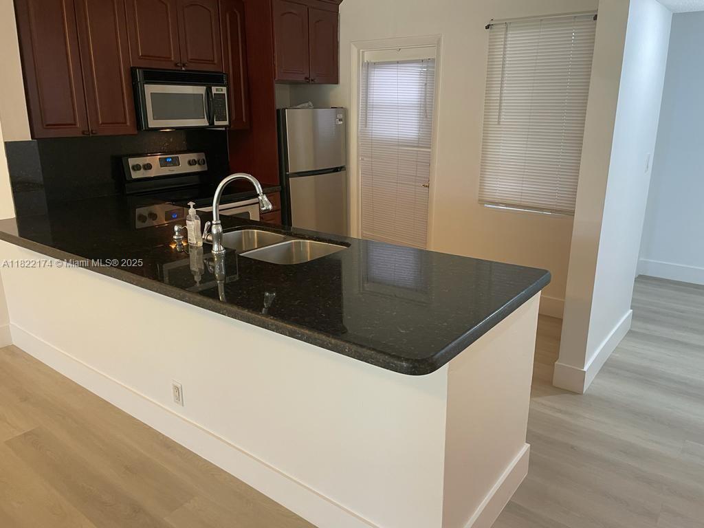 Excellent for 1st time Buyer & perfect for investor too !This stunning 2-bedroom, 2-bathroom unit boasts a plethora of desirable features, including a community pool, granite counters, stainless steel appliances, and wood flooring throughout. Freshly painted and just renovated, this first-floor gem offers a screened balcony with a breathtaking view of the club house, with blackout window treatment for privacy and energy saving. The community itself is a haven of amenities, with a pool, Jacuzzi, club house, library, gym, and sauna at your disposal. Located just 5 minutes away from the pristine Dania Beach and Fort Lauderdale Int'l Airport, convenience is at your fingertips. Don't miss out on this incredible opportunity to experience the ultimate in comfort and convenience.