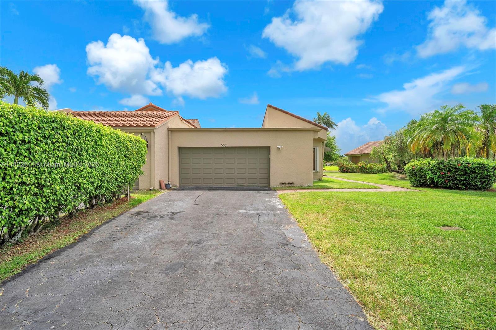 PRICED FOR QUICK SALE. Rare 1-story corner unit villa in Patio Village w/stunning lake views! Beautiful 3/2 home features 2-car garage, vaulted ceilings, enclosed patio & tile floors. Needs some roof work. Tankless water heater. Spacious living room offers abundant windows/natural light. Kitchen boasts plenty of cabinets & ample counter space. Dining room perfect for meals/entertaining. Primary bedroom with en-suite bath and walk-in shower. Second bedroom includes walk-in closet. Third bedroom used as den, easily convertible. Hurricane shutters included. Association payment includes exterior paint. Bonaventure Town Center Club features pools, tennis, bowling, indoor basketball, gym, billiards & more. Low HOA fees & Bonaventure annual dues $385. Available for immediate rental. Easy to show.