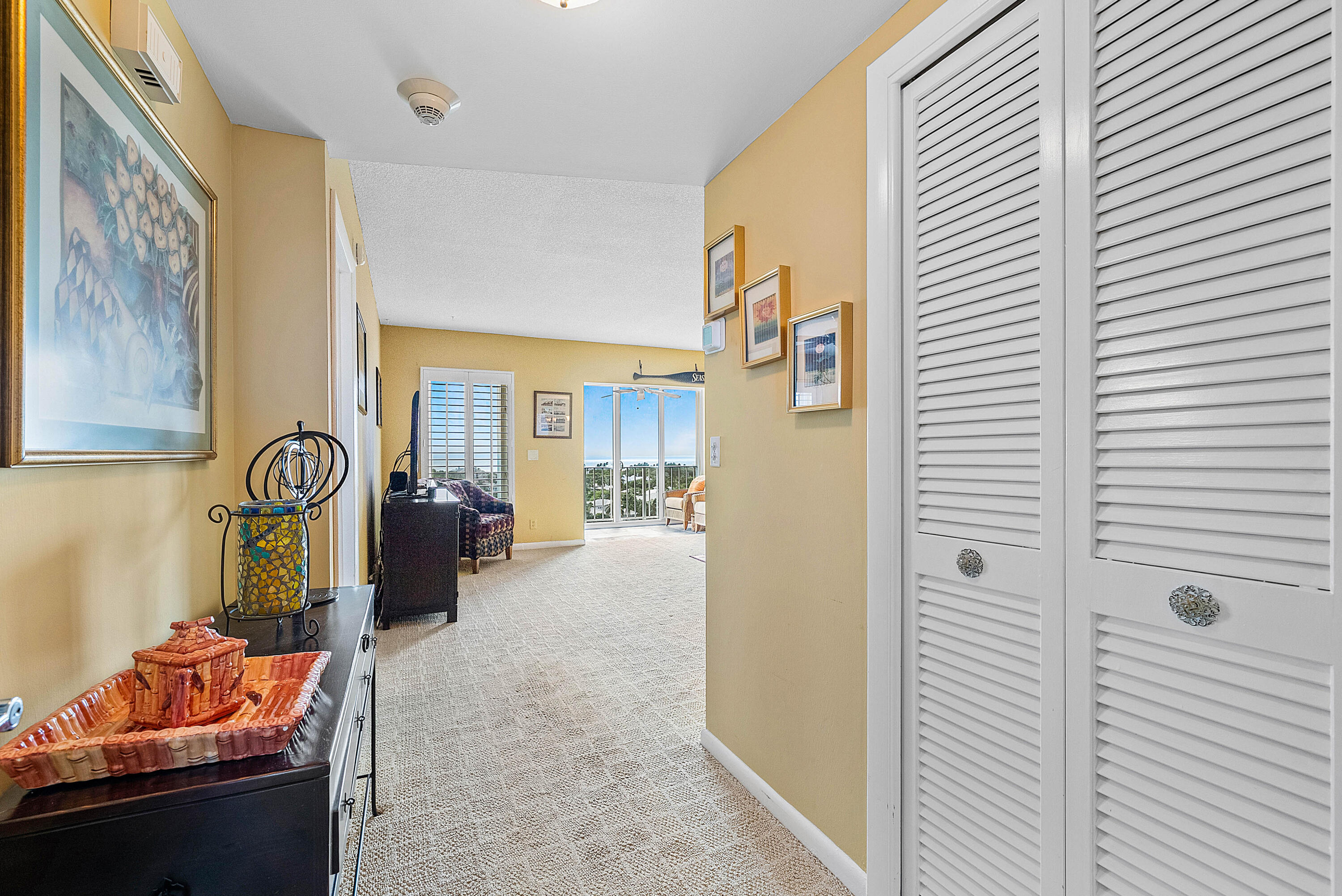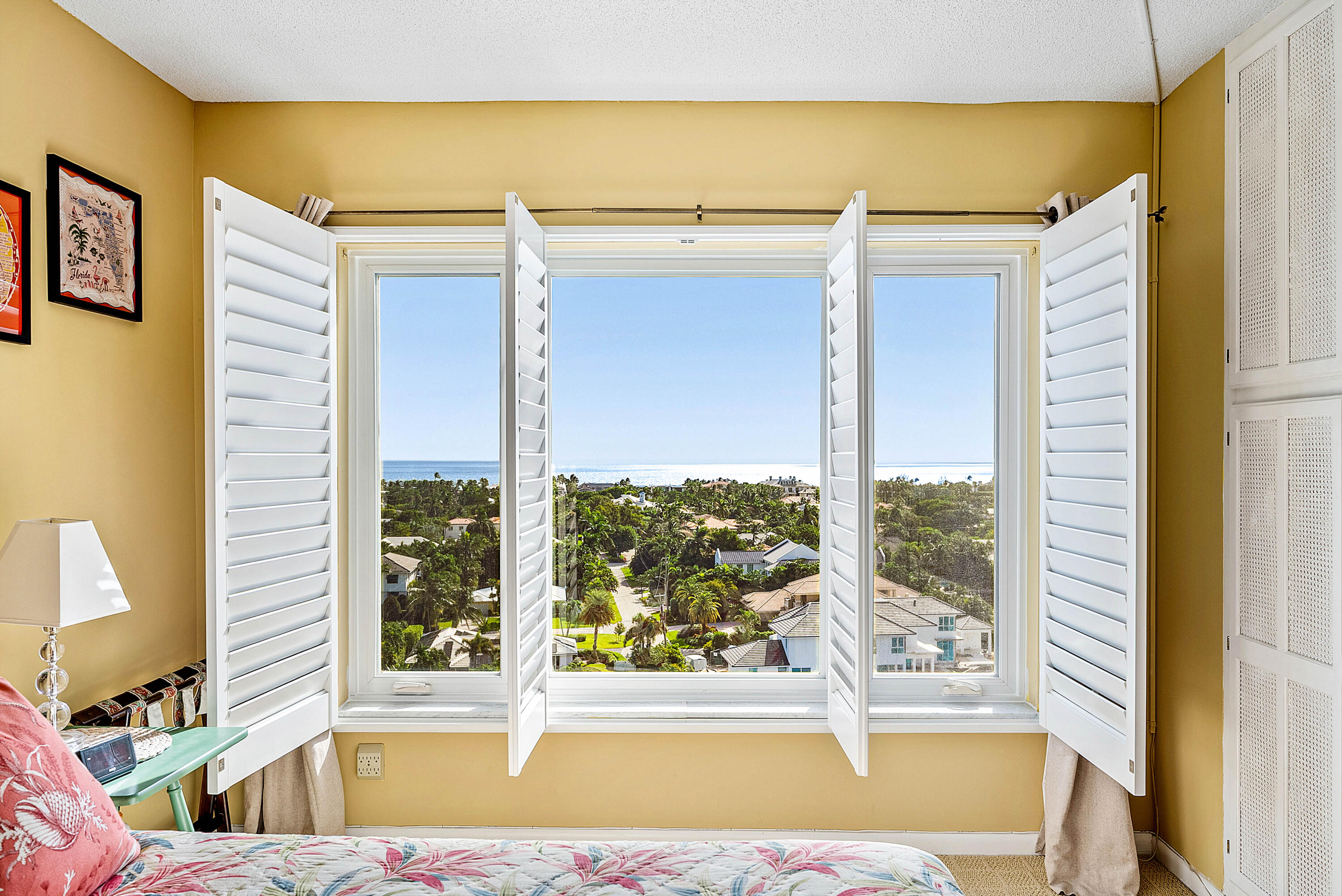 East Delray, Waterfront with Ocean and Intrcoastal Views, and close proximity to Atlantic Ave for under $500,000. This incredible 1/1.5 is located on the 11th floor of The Barrton. The short distances (.64 miles) to Atlantic Ave. and (1.2 miles) to the beach makes this a very desirable building in Delray. 24/7 security. Impact windows. Parking space close to entrance. Association application fee is $150 and deposit is a $500 refundable move-in deposit. Financing requires 20% down. No rentals allowed. No Pets. No Washer and Dryer in unit. Common laundry room on each floor. Additional 107 sq. ft. of the enclosed porch area is included in the living sq. ft. All measurements are approximate and subject to error, omission, and changes without notice.