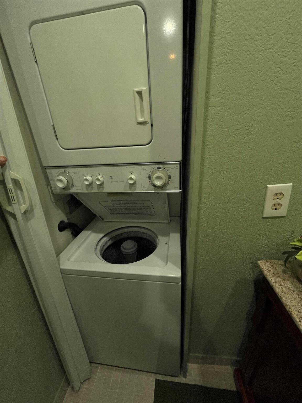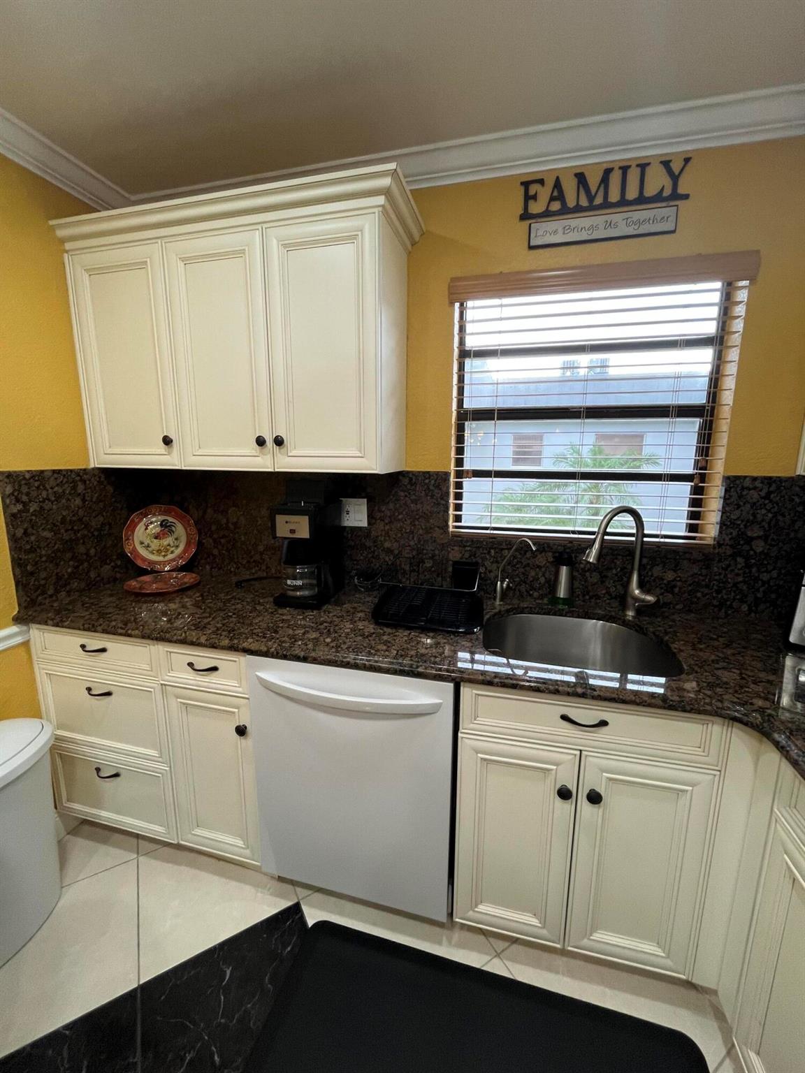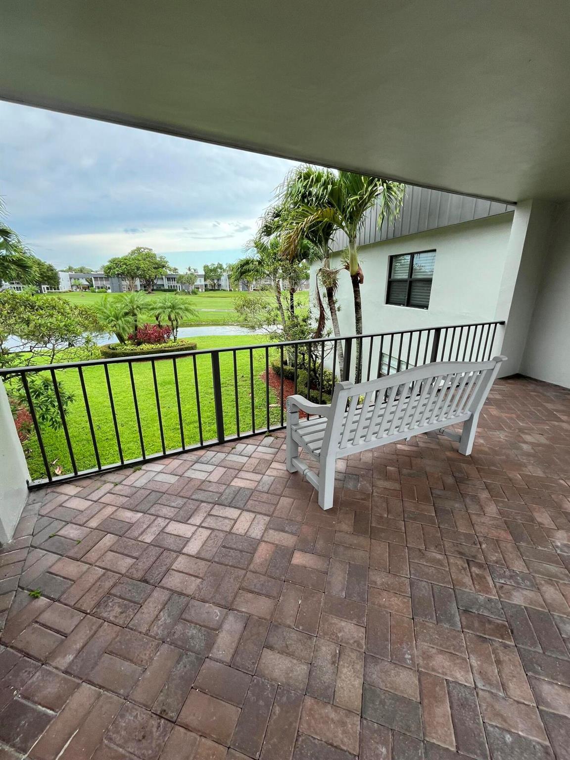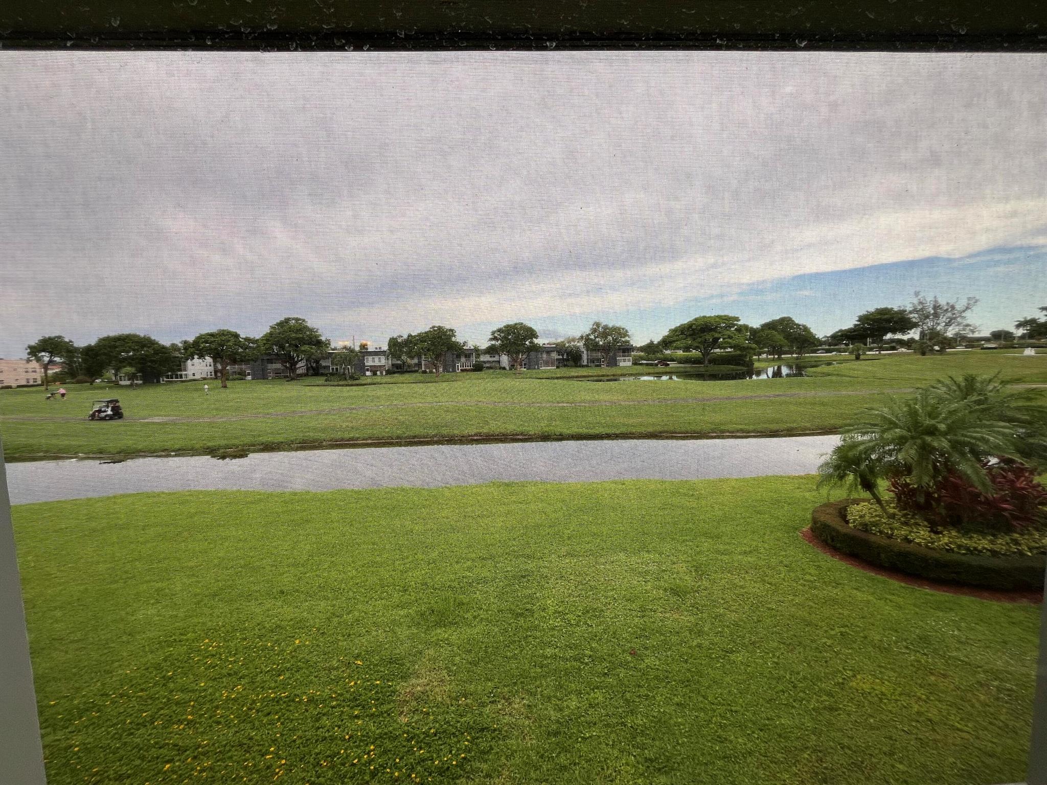 Afternoon setting sun from your huge wide enclosed patio overlooking the peaceful serene lake and golf course views. Patio enclosed with hurrican impact glass sliding doors. Open to fresh seasonal breezes through the screened room or allow the a/c to flow to this addtl. Florida room. Beautiful neutral colored tiled flooring throughout on a diagonal design. White kitchen appl.'s with recessed lighting in the ceiling. Granite countertops Guest/2nd bedroom with wood laminate flooring. Oversized stackable w/d in front bathroom. Both bathrooms updated. Huge walk-in closet in the primary rear bedroom. Split bedroom plan for privacy. Unit comes fully furnished. Deisigner crown mouldings throughout. Higher baseboards. Water heater 2022. A/C '14. A beautiful spectacular unit to behold. Take a look