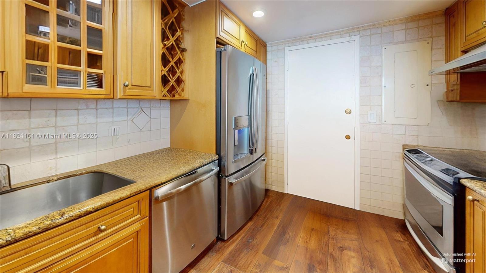 Experience breathtaking direct water views from this stunningly renovated, extra-large 2-bedroom, 2-bathroom residence. The spacious and bright open living area seamlessly connects to a renovated kitchen, featuring dark wood floors throughout and top-of-the-line stainless steel kitchen appliances. Both oversized bedrooms offer expansive walk-in closets and ensuite bathrooms. This unit also includes an in-unit washer/dryer, a dedicated storage unit, and one assigned covered parking spot with complimentary valet service. The building has been extensively upgraded, boasting elegant hallways, a brand-new gym, a new pool, a modernized lobby, and an entertainment room. Situated on Biscayne Boulevard, you’ll be just moments away from grocery stores, shopping, dining, entertainment, and much more.
