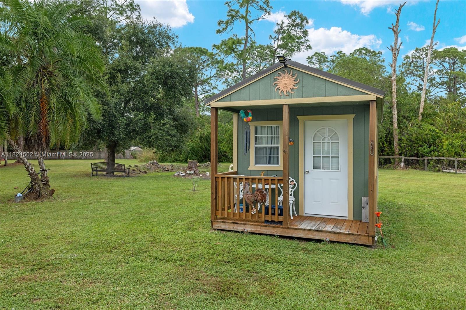 • Exterior Feature:Deck, EnclosedPorch, Fence, Patio, Shed, StormSecurityShutters