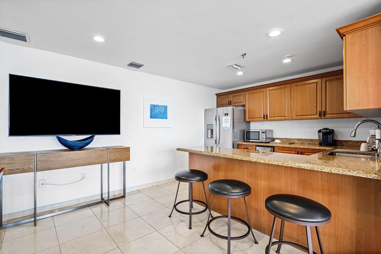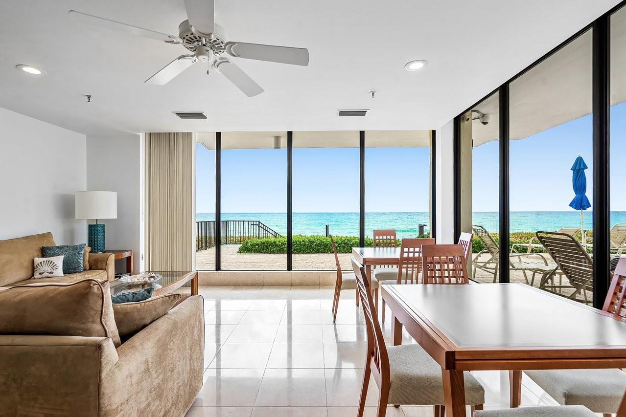 ON THE SAND--3 full bedroom/ 3 full bath in boutique Condo in Highland Beach. Awesome views of the Ocean from Living Room and Master Bedroom. Fully renovated with open kitchen. 2 balconies, enjoy sunrises and sunsets. One underground parking space w ample guest parking. Pool and jacuzzi overlook the Ocean. Bike to Atlantic Ave or quick drive to enjoy shops, restaurants and night life: or walk just 3 buildings north to Latitudes. Enjoy the best Highland Beach has to offer. Remodeled Lobby and Concrete Restoration assessments paid. Social Room w expansive view of the ocean is great for small get togethers. Low HOA $5050 Quarter. Furniture negotialble. NO PETS, NO SMOKING. On Site manager 9 -5 Monday thru Friday.