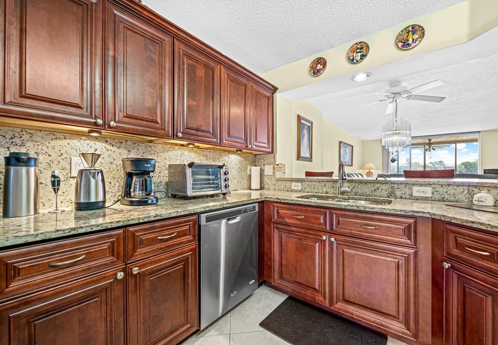 A Large Beautiful 1st floor Corner unit!! 55+ community at Trent Building H in Kings Point. Immaculate 2/2 with a beautiful split, spacious & private. Upgraded Kitchen with granite countertops, Stainless Steel appliances in the kitchen and two huge bedrooms with the master bedroom having its own walk-in closet. Washer & Dryer in the unit. Enjoy your enclosed screened patio with a breathtaking water lake view. Accordion shutters on all windows & the patio. Enjoy the Pool in Trent community. Included is everything that Kings Point c has to offer is a great Clubhouse, State of the Art Theater, courtesy bus and the fabulous amenities! A Must See! Monthly Fees are $192.00 to Kings Point + $478 to Trent H community combined = $670.00 ** No Leasing allowed**
