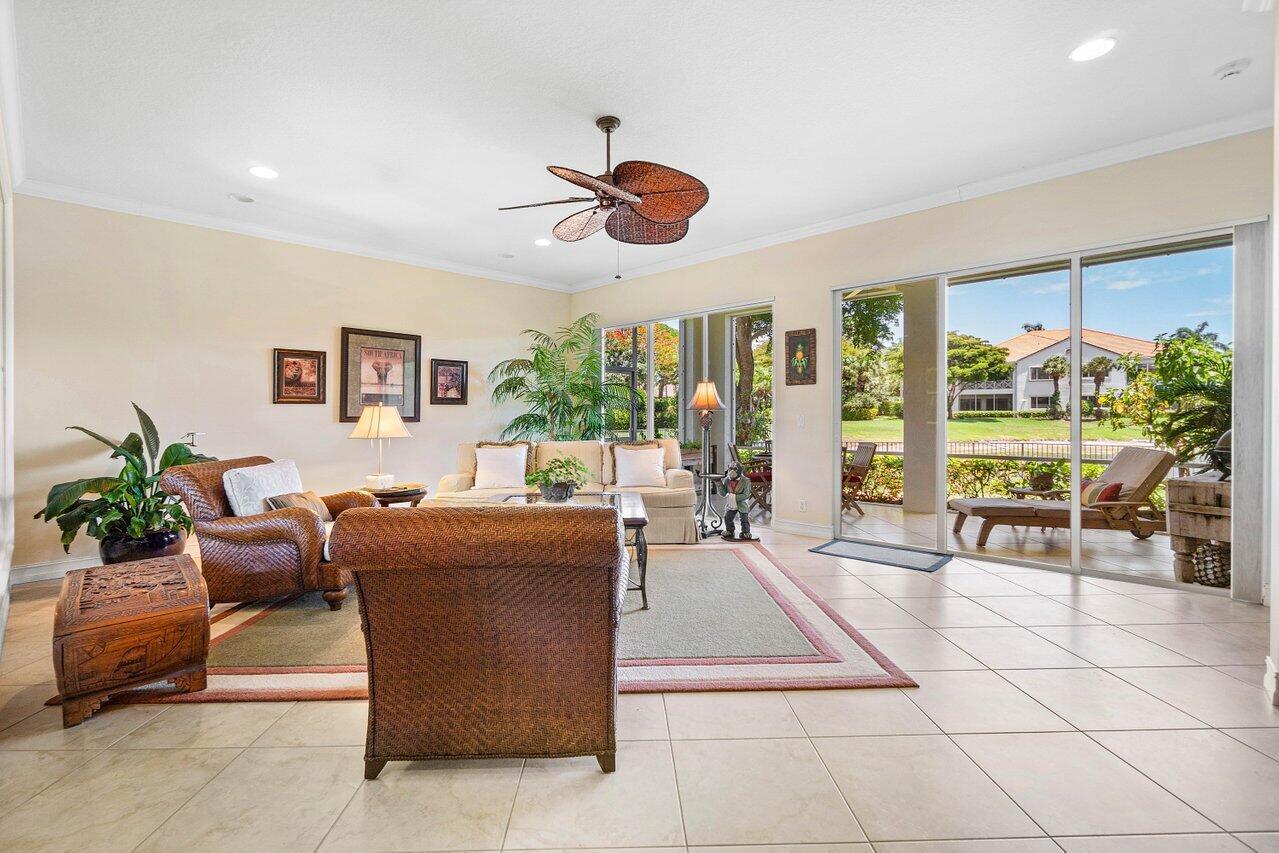 Experience the ultimate in luxury and privacy in this beautifully maintained 1st-floor end unit in the exclusive Palm Bay Club at BallenIsles Country Club. Any membership category is available - choose your preferred Full Golf, Sports or Racquets.This spacious residence features 3 bedrooms with the 3rd bedroom is currently configured as a beautifully built-in office. Enjoy breathtaking lakefront views framed by elegant iron fencing, all from the comfort of your own private oasis. This coach home has been thoughtfully updated with a new roof (2024), AC (2020), water heater (2021), patio screening, fresh exterior paint, and new landscaping -- ensuring a move-in-ready experience and peace of mind.
