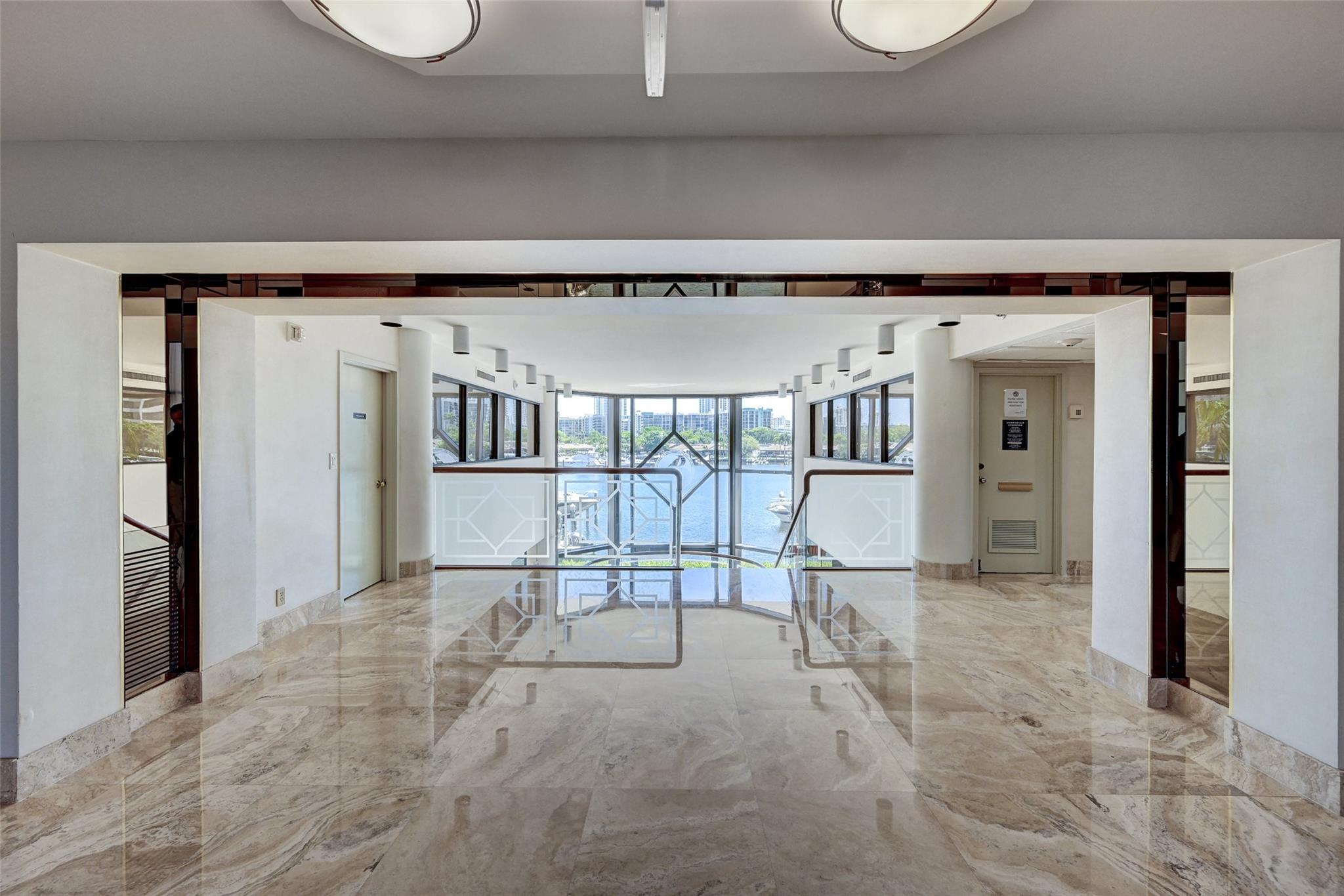 THREE BEDROOM CONDO Beautifully renovated corner unit with exquisite wood cabinetry, granite countertops, and stainless steel appliances. Enjoy the convenience of a full size washer & dryer, impact windows with accordion shutters, tankless water heater, and a brand new A/C. This 2 story layout offers privacy and flexibility, with a dramatic spiral staircase leading to a spacious third bedroom or cabana perfect for guests, a home office, or a live in assistant. Includes 1 deeded parking space 1 assigned. Boat slips available with electric meter. 40 year inspection passed. a rooftop furnished deck state of the art gym with water views, heated pool, barbecue area, tennis courts, security desk in lobby and brand new tennis & pickleball courts! First year no rentals allowed.