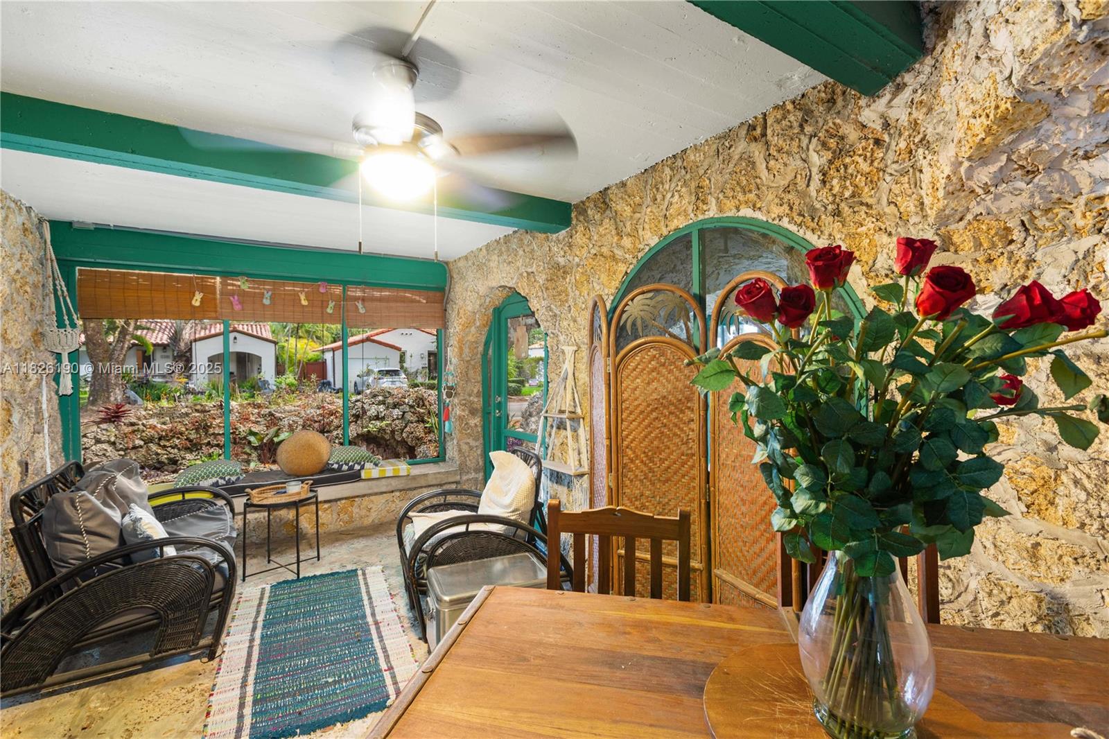 Step into a timeless gem that transcends typical Coral Gables living—this enchanting coral rock community is steeped in local history and architectural charm. Tucked away in a storybook setting, this residence features exposed beam ceilings, and a charming front porch perfect for breezy afternoons. The heart of the home is its spectacular Gaudí-inspired terrace—an artistic escape that blends whimsical design with Mediterranean flair. With classic details throughout, this is Coral Gables living reimagined with soul, style, and historical significance.