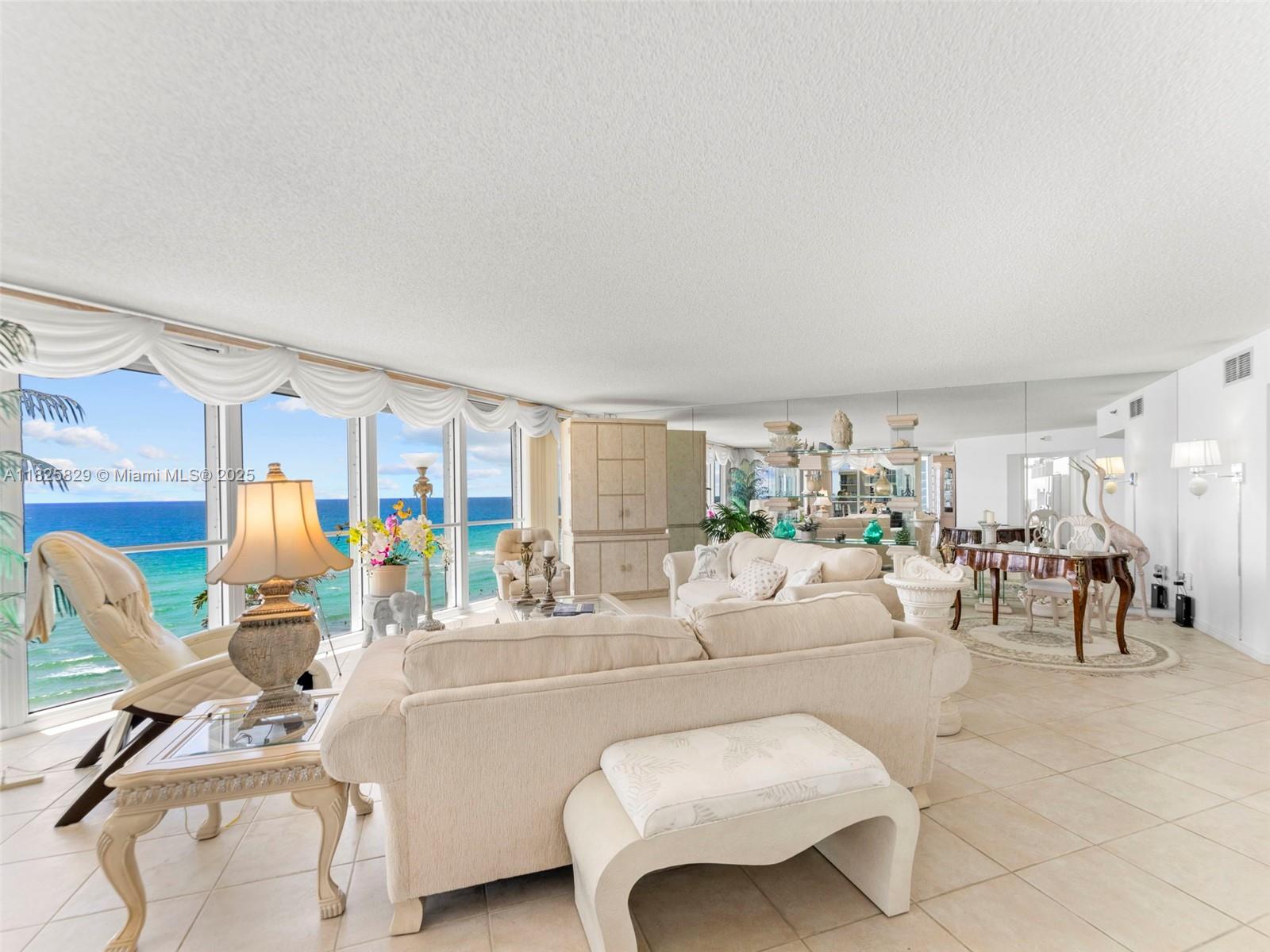 Stunning oceanfront residence with a rare feature: fully equipped cabana valued over $100,000. From the moment you step inside, you’re captivated by unobstructed views of the sparkling azure sea. This elegant apt features 2 bedrooms, 2.5 baths, and wraparound balconies with floor-to-ceiling windows and hurricane shutters. The luxurious primary suite offers a walk-in closet, dual sinks, balcony. Enjoy resort-style living