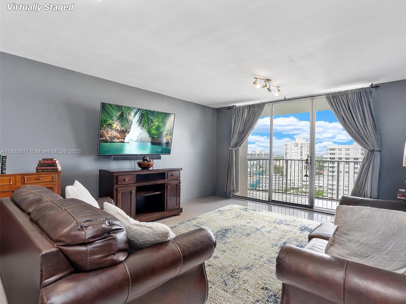 Stunning and contemporary condominium situated in an ideal location near Williams Island. This 2-bedroom, 2-bathroom unit spans 1220 square feet and boasts an abundance of natural light. Featuring chic white cabinetry, upgraded countertops, and stainless steel appliances, the kitchen exudes style. The primary bedroom offers ample space with a walk-in closet, while breathtaking views enhance the beauty of the surroundings. Residents can enjoy two heated pools, basketball courts, a fitness center, BBQ area, and tennis courts all within close proximity. Mortgage savings may be available for buyers of this listing.