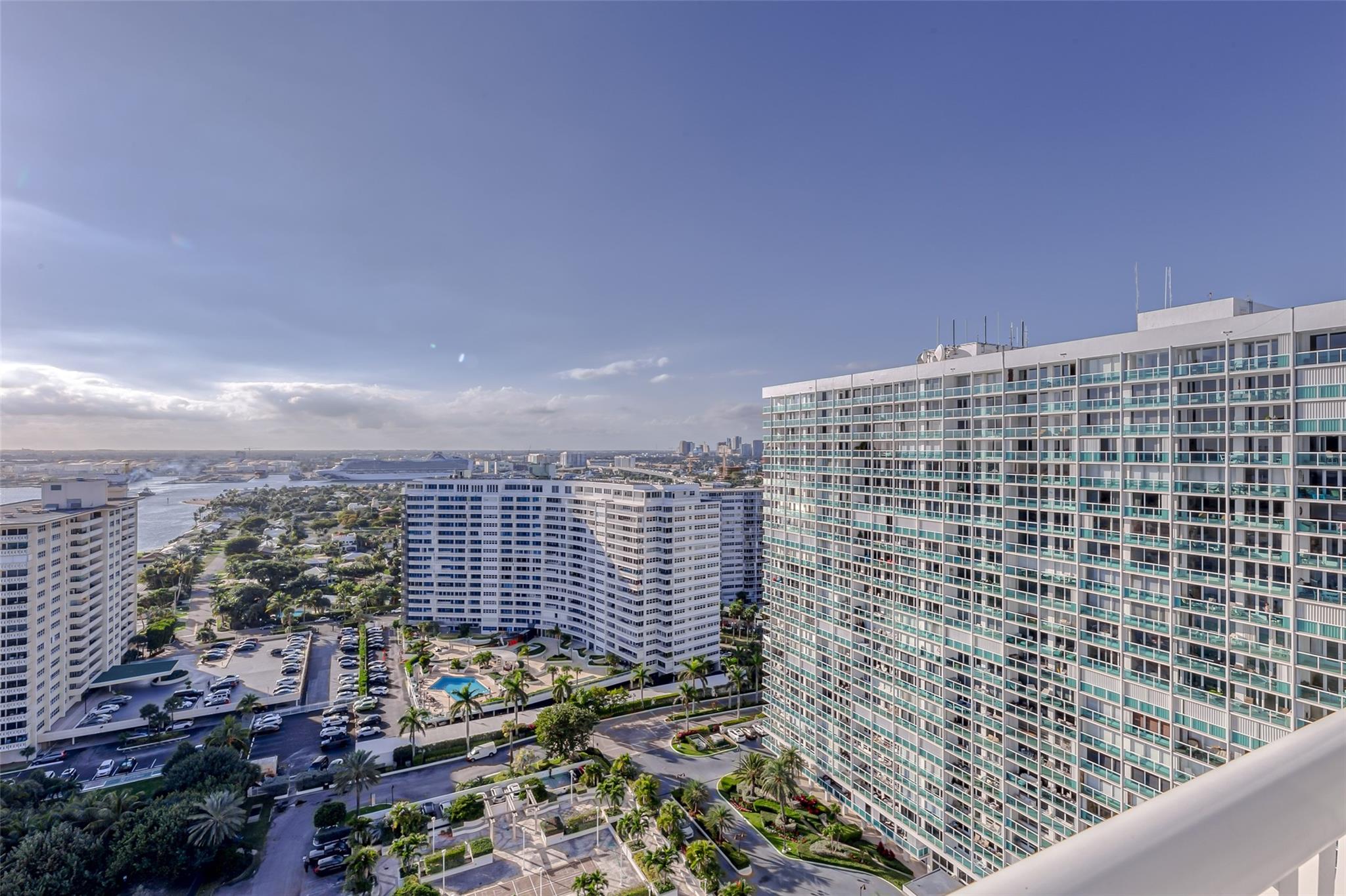 This sought-after high floor S.W. corner residence at the famed Point of Americas II is a must see! The well appointed POA has all the must have amenities such as a private restaurant, inhouse hotel suites, multiple gyms & pools, beach service and social clubs that a discerning purchaser expects while located on the widest stretch and SE point of Ft. Lauderdale's Harbor Beach. This spacious 2 Bed/2 Bath residence has that hip retro 1980s vibe of being on a luxury cruise liner with some of the most stunning & dramatic panoramic views in all of South Florida awaiting you. This "nest in the sky" is a priced to sell and is the perfect home for snowbirds or year-round living with amazing direct views of the ocean, inlet, south shoreline vistas to Miami & the skyline of Greater Fort Lauderdale.
