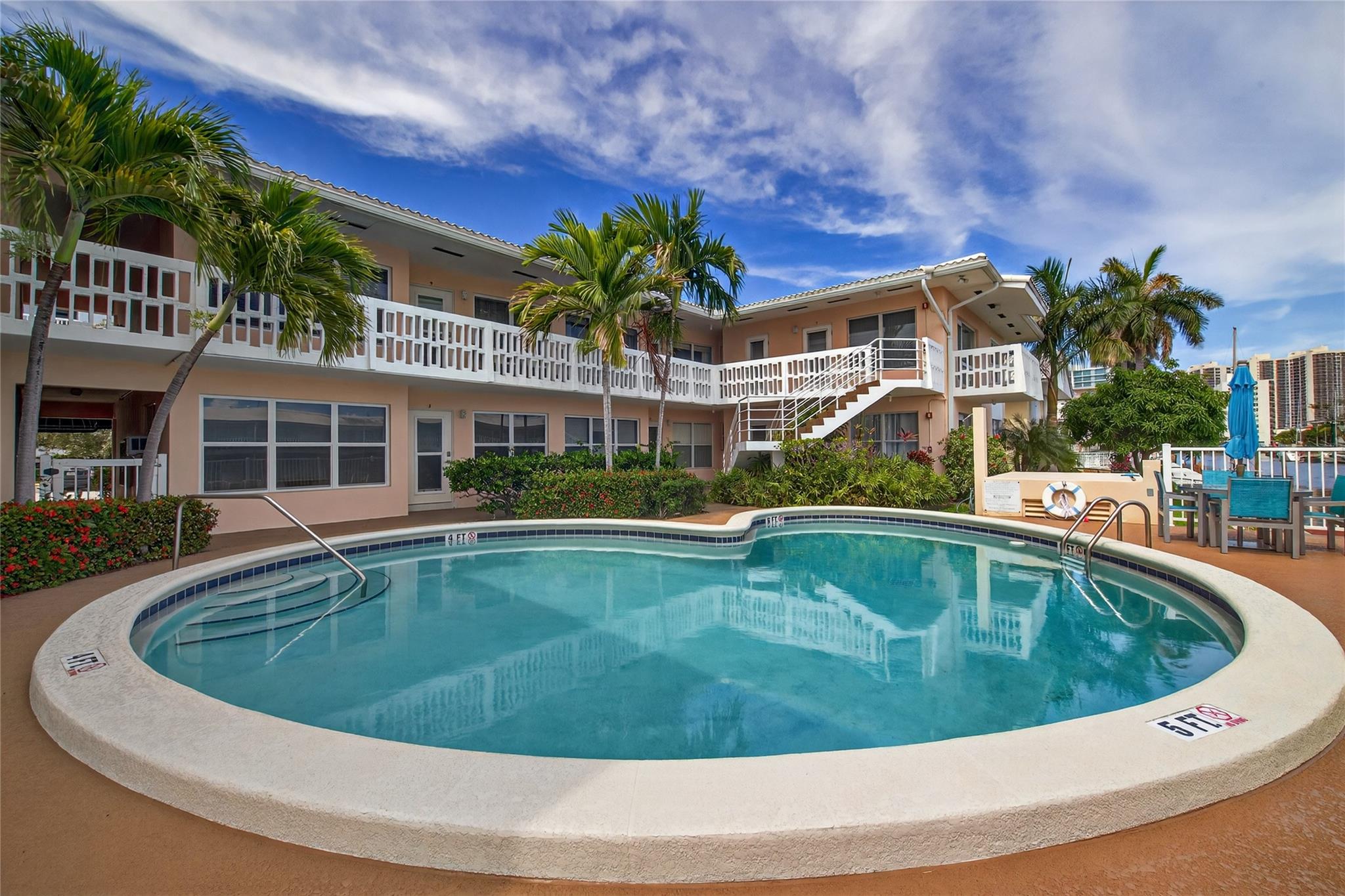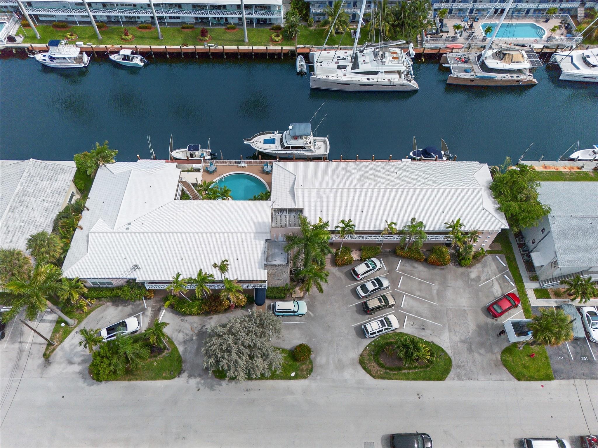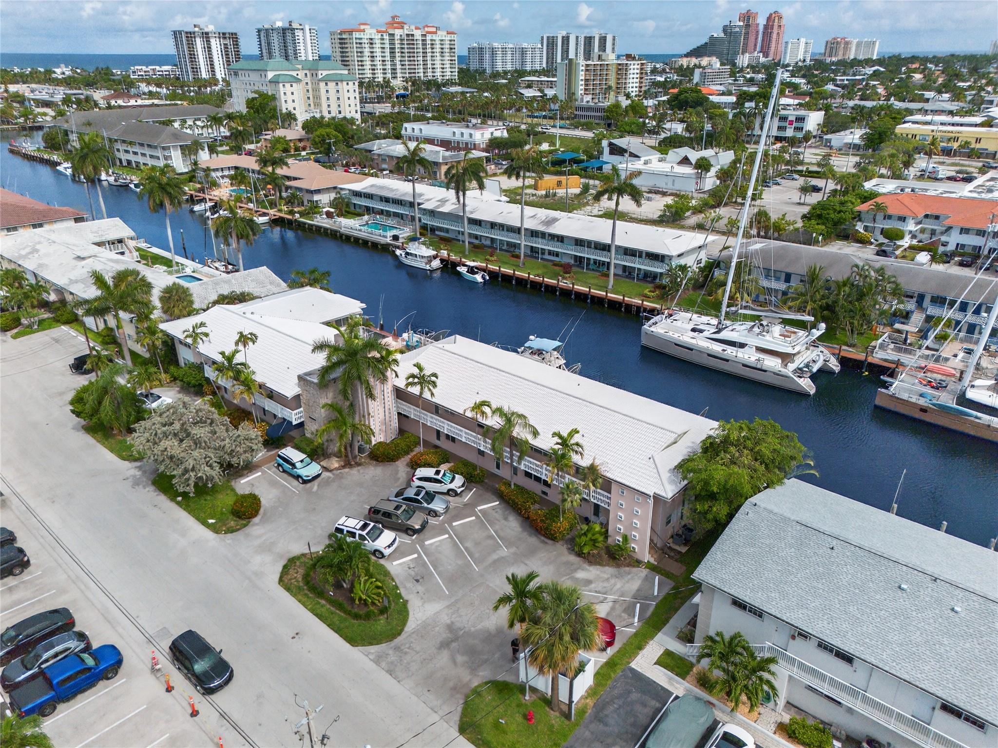 BRING YOUR BOAT to this wonderful hidden gem on deep water in East Fort Lauderdale. No fixed bridges - the Intracoastal Waterway is at the end of the street! 2023 roof! Super efficient floor plan features two large bedrooms, two full baths, a huge living room, dining area, renovated kitchen, and a charming patio overlooking the recently upgraded pool and the dock! Oakland Arms is a quiet community ideally located within walking & biking distance to the beach, Birch State Park and the fabulous restaurants and night life of the Galt Mile, Lauderdale-By-The-Sea, and Fort Lauderdale Beach! Short drive to golf, pickleball, tennis and airport. Boat dockage $2.75/linear ft. when available. 1 assigned parking space. Community laundry on each floor (no in-unit laundry). No renting first 2 years.