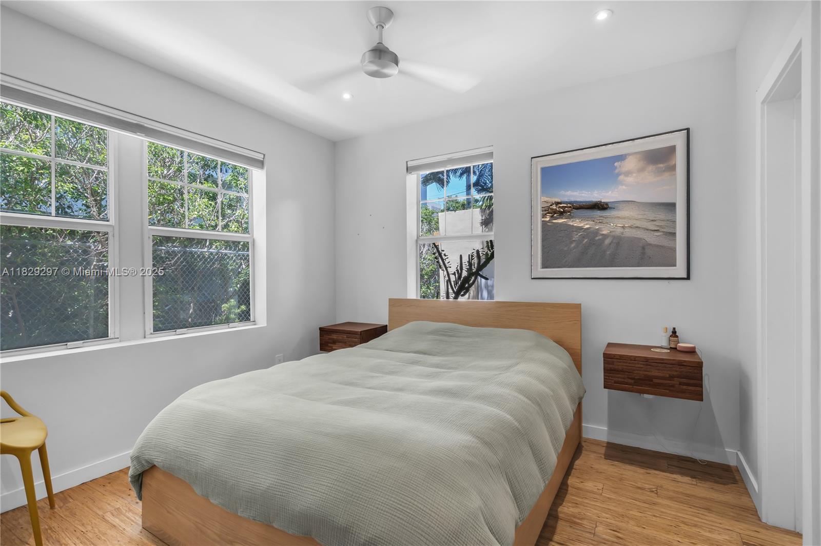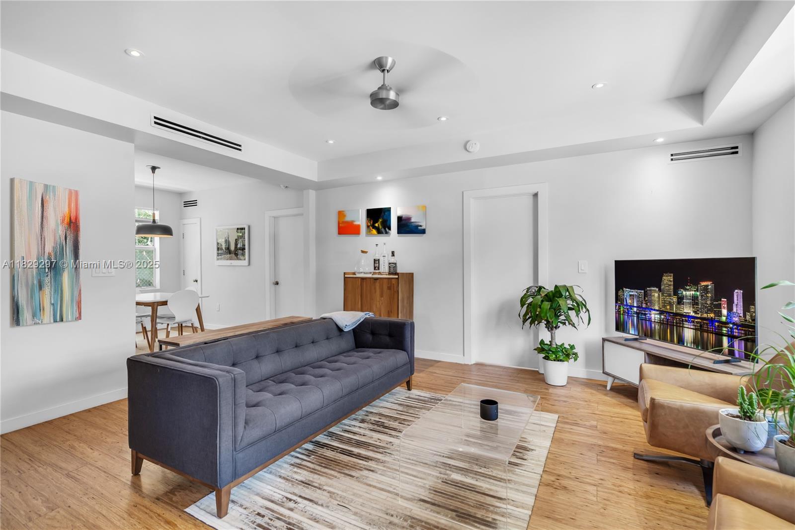 Rarely available gem in the heart of South Beach! This spacious 2-bed, 2-bath corner unit is located in a boutique 4-unit 1930 Mediterranean Revival building designed by Schoeppl & Skinner. Thoughtfully remodeled, it feels more like a private home—complete with a detached garage & EV charger. The unit features wood floors throughout, a modern kitchen w/ quartz countertops, S/S appliances including a dishwasher, subway tile backsplash, & washer/dryer. Both bedrooms have sleek en-suite baths, & the layout offers a separate dining area & a bright living space with three exposures. Enjoy lush views perfect for relaxing. Next to Flamingo Park with Tennis, Pickleball, Basketball & Dog Park. Walk to the beach, top restaurants, shops, & nightlife. Pet friendly & can be sold furnished. 40 Year Recertifications Done, Property has Reserves, and No Current Special Assessments