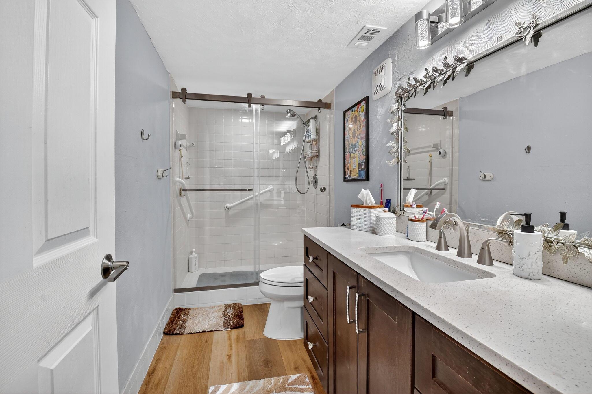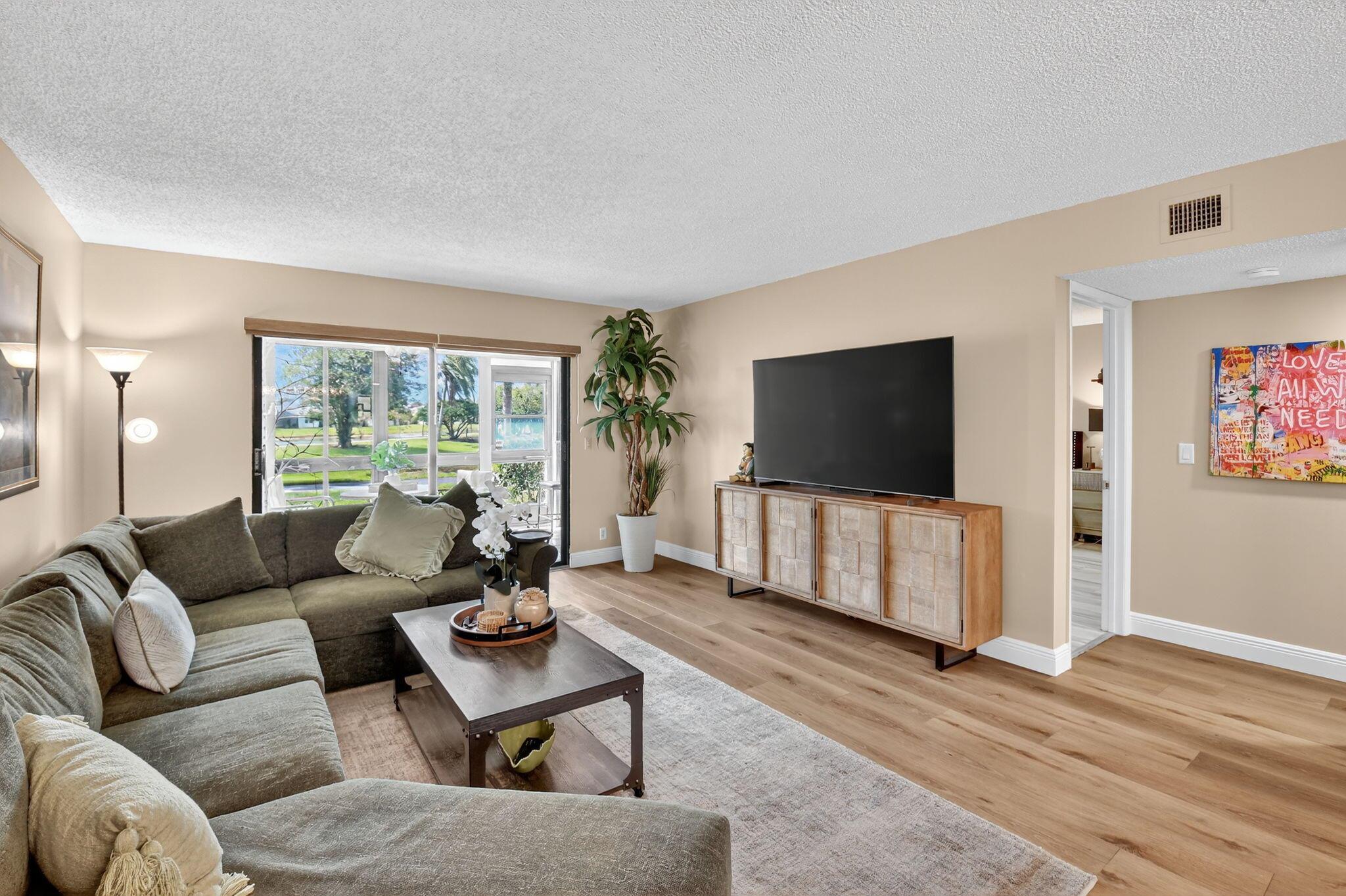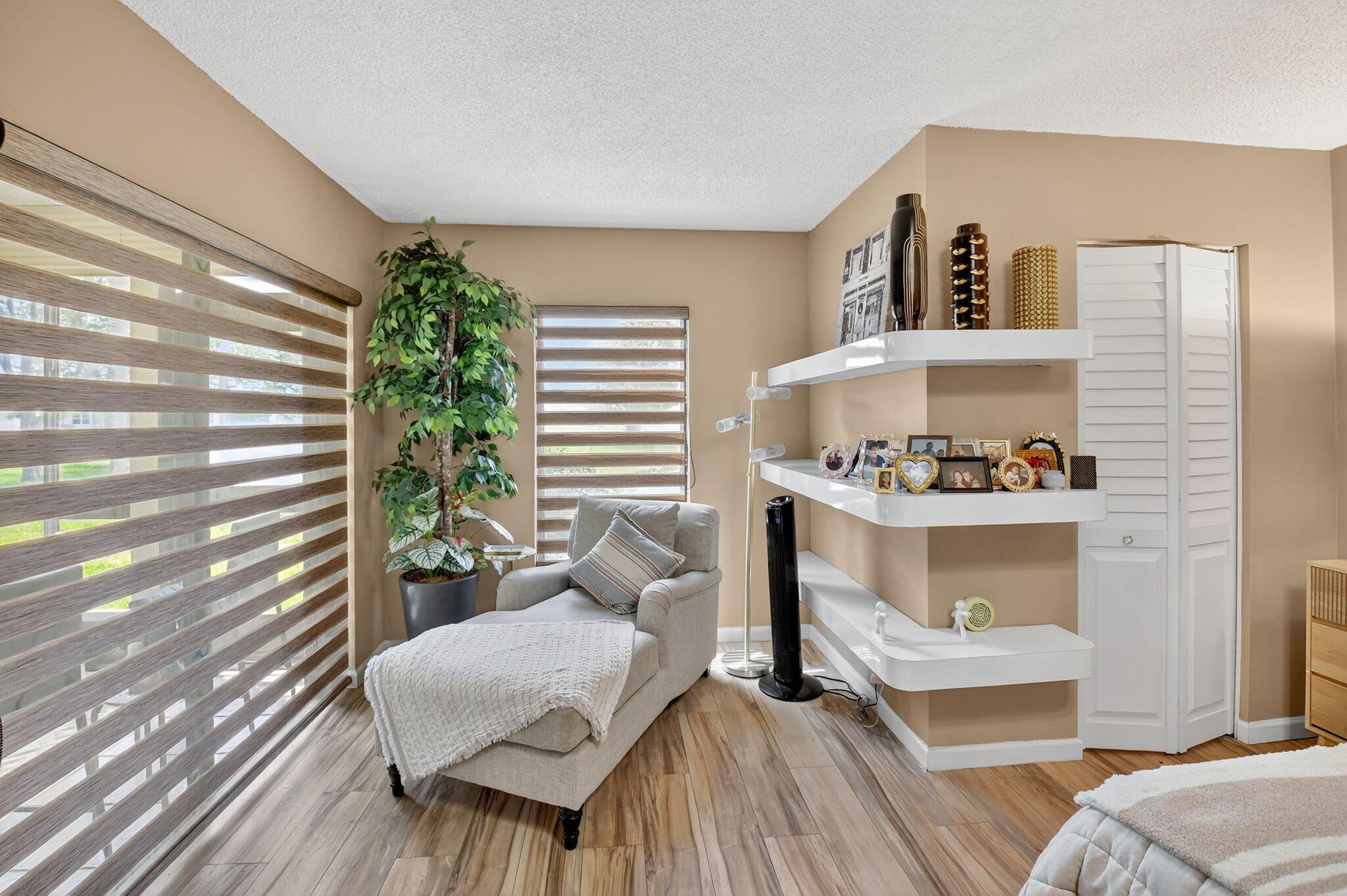 A lush, floral oasis welcomes you into your own private garden retreat. This charming ground-floor condo has a designated parking just steps from the front door. Inside, contemporary finishes create an inviting atmosphere throughout the unit.The sleek, open-concept kitchen has been elegantly updated with premium appliances, beautifully refaced cabinetry, a stylish backsplash, and granite countertops--perfect for cooking and entertaining. The spacious living and dining areas are bright and beautifully styled, offering a model-home feel.Enjoy additional living space in the enclosed Florida room, complete with serene views and direct access to a walking path that leads to the large primary suite. This tranquil bedroom features include a cozy sitting area, two custom walk-in closets