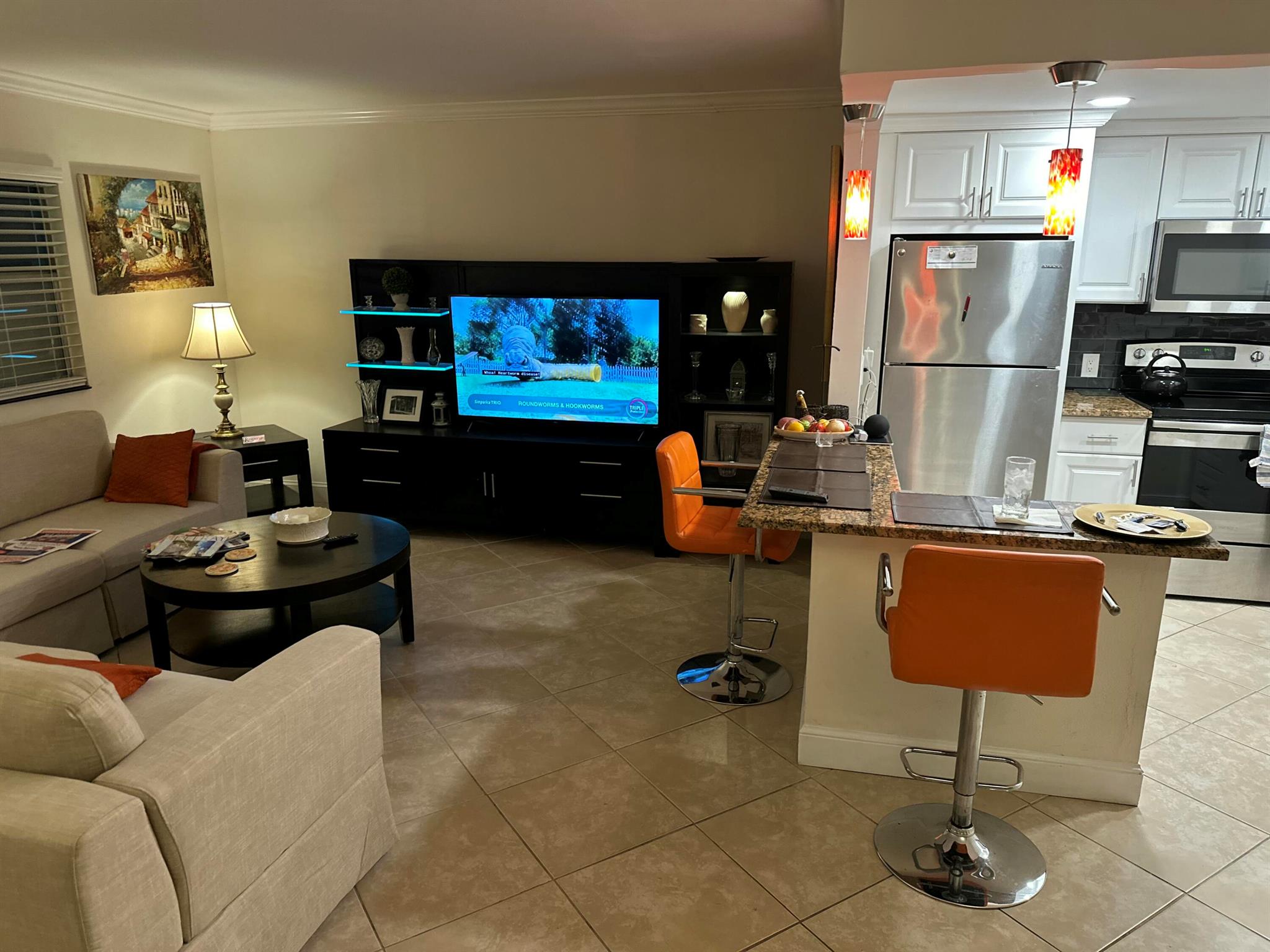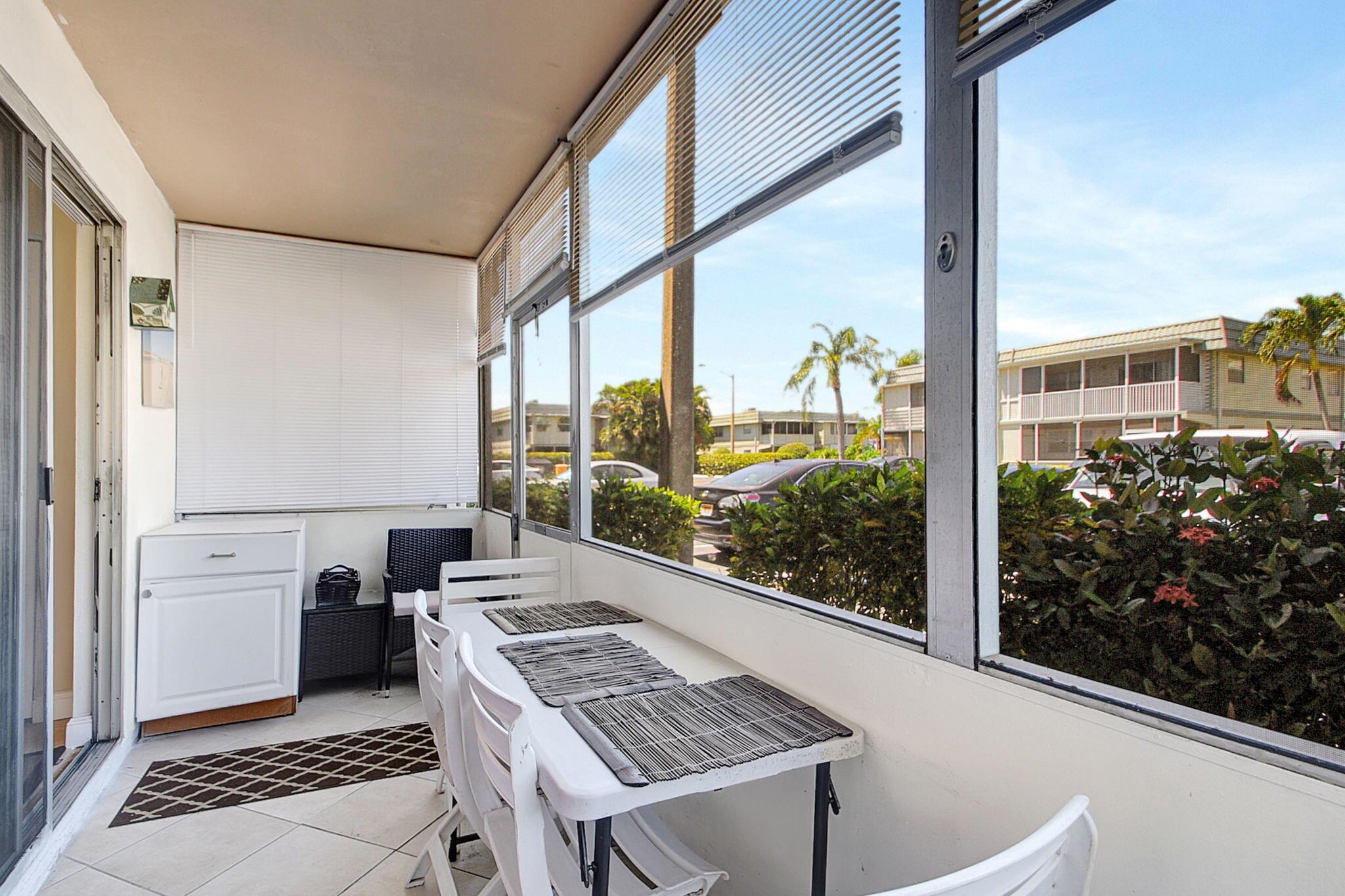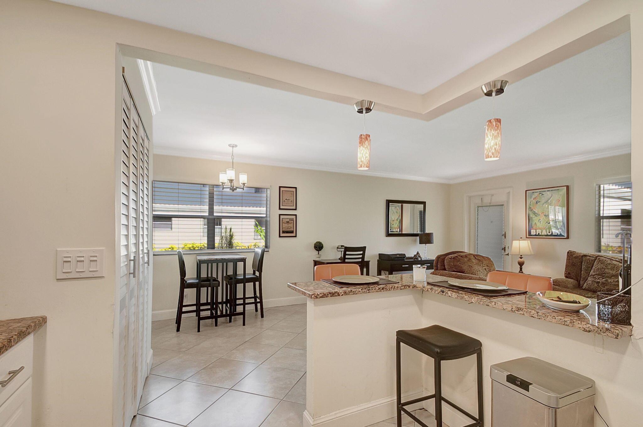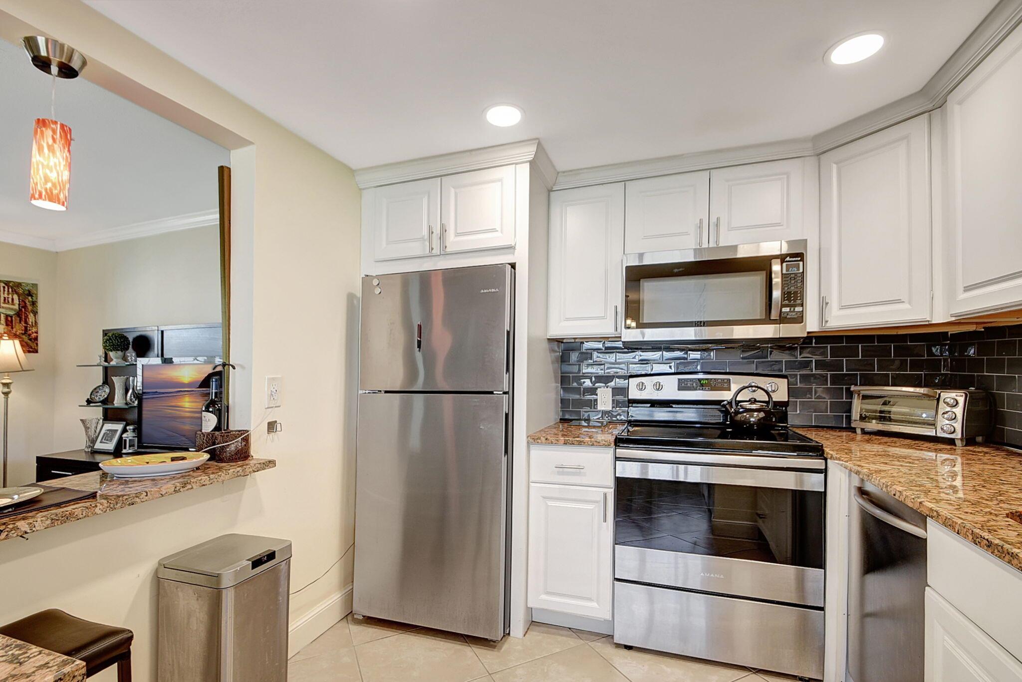 Discover this beautifully updated ground-floor unit, offering 1 bed and 1.5 baths. The unit boasts a spacious screened-in patio perfect for relaxing, complemented by an open kitchen design with elegant granite countertops and high-end stainless steel fixtures. Located on a small, quiet dead end street. Enjoy the sophistication of tiled flooring throughout and the efficiency of modern LED lighting. Located just steps from the Monaco clubhouse and pool, you'll have access to a wide array of state-of-the-art amenities. Community highlights include golf, tennis, and pickleball courts, both indoor and outdoor swimming pools, a theater, a fitness center & cafeteria.