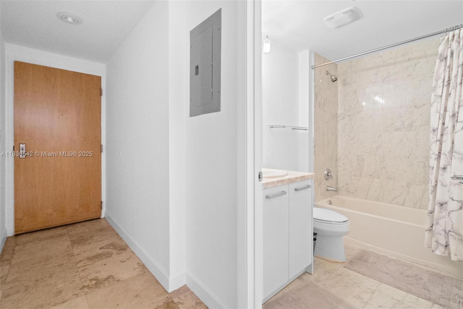 Welcome to Residence #2608 at Vizcayne South, located in Downtown Miami. This high-floor corner unit spans 1,006 square feet, offering a flexible layout with one bedroom plus an enclosed den and two full bathrooms. The enclosed den is versatile—ideal as a second bedroom, office, or guest space. The open design features floor-to-ceiling windows, providing stunning bay and city views. Italian marble floors are throughout, with two marble-clad bathrooms and a sleek kitchen equipped with stainless steel appliances. Enjoy resort-style amenities, including four pools, a spa, steam room, sauna, renovated gym, business center, lounge, and 24-hour security. Building upgrades are underway. Don’t miss this opportunity - schedule your private showing today!