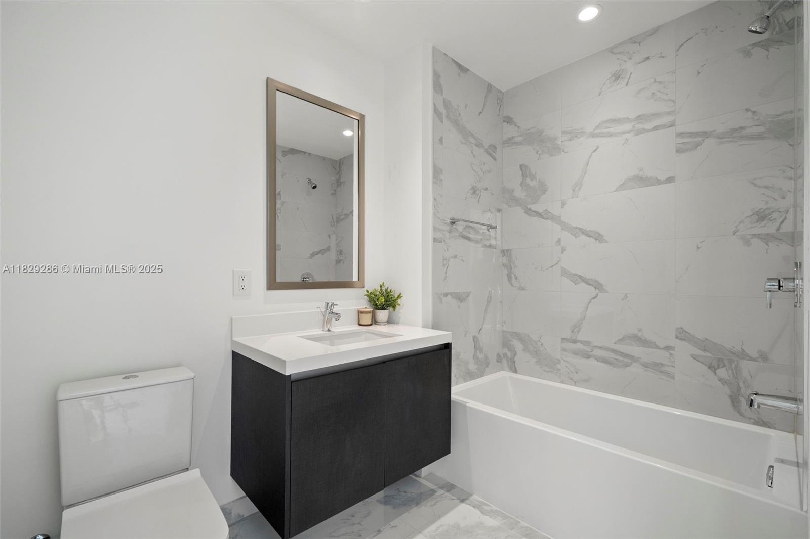 Welcome to Unit 3201 at Paramount Miami Worldcenter. This 3 bed + den, 4 bath untouched residence sits in immaculate condition. This spacious layout offers exceptional ocean + intracoastal views, floor-to-ceiling impact windows, high ceilings, and sleek porcelain tile throughout. The open kitchen features glossy white cabinetry and premium finishes, perfect for modern living. Enjoy a private elevator entry. The 3rd bedroom serves as a flexible office or Mother in Law suite. Paramount offers world-class amenities: multiple resort-style pools, spa, fitness center, basketball court, tennis courts, soccer field, rooftop observatory, and more. Located steps from Brightline, Kaseya Center, and premier dining and shopping. Move-in ready and priced to sell.