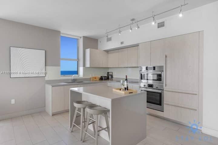 Amazing corner unit with breathtaking ocean, intracoastal and city views!! Live or invest in this beautiful 2 bedroom 2 bathroom. Unit comes elegantly fully furnished. Huge wrap-around balcony. Five star resort-style amenities with full concierge service, access to oceanfront private beach club, three heated oversized pools, cabanas, spa, state of art gym, rooftop lounge & common area with BBQ, tennis court, racquetball, high speed internet in all public areas, 24 hrs security, free valet parking. Maintenance includes electricity, cable, internet & water. The perfect vacation home and/or income producing property. Unit management by Stay Sol. NO RENTAL RESTRICTIONS!