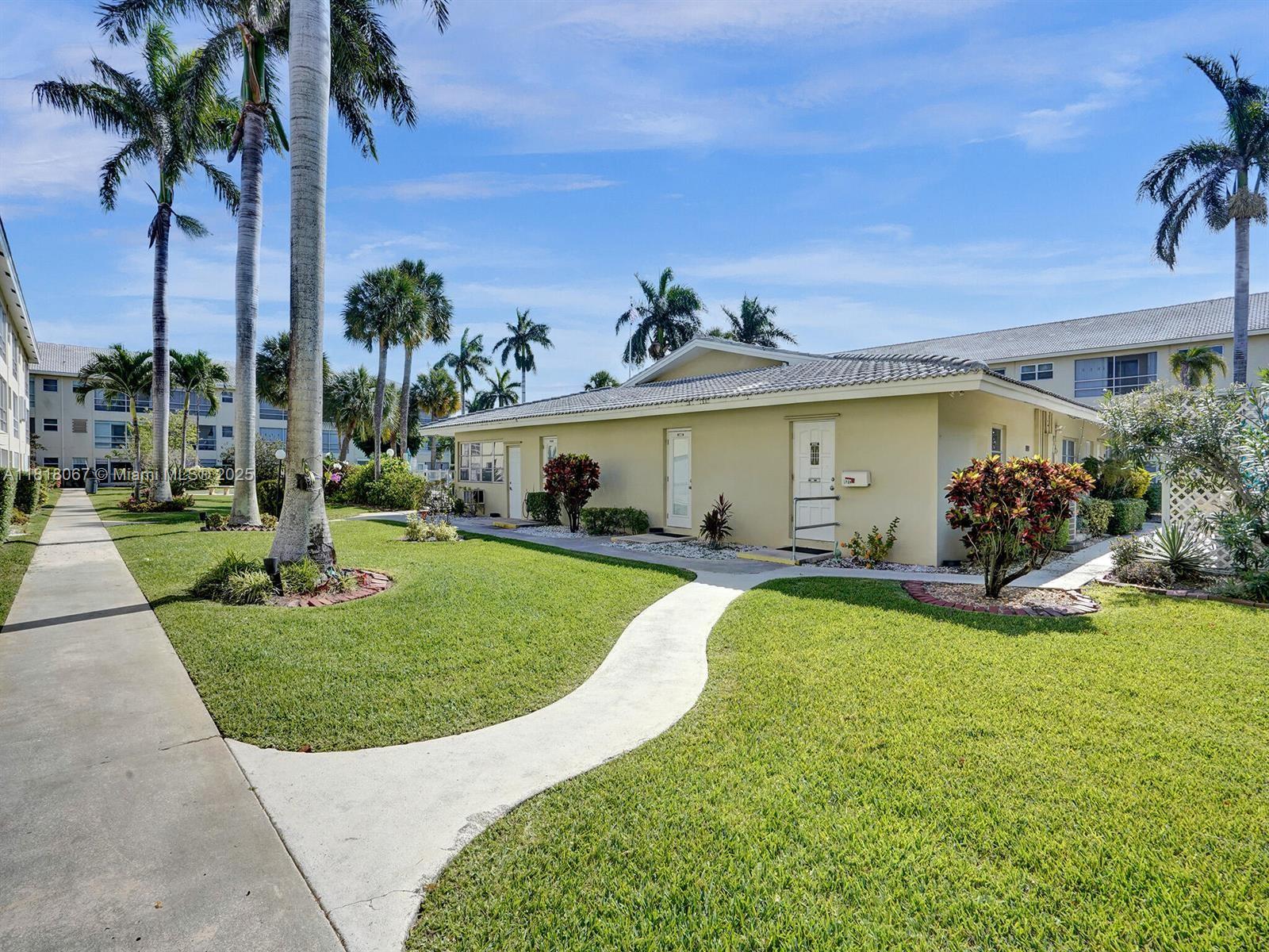 Welcome to this beautifully maintained 2-bedroom, 2-bathroom ground floor, corner unit, perfectly situated for easy access. Steps away from the pool & clubhouse, this home offers the ideal blend of comfort & community. Unit has impact windows throughout. The kitchen features stainless steel appliances & flows seamlessly into the open living area, all adorned with tile flooring throughout for a clean and modern feel. The spacious primary bedroom boasts a walk-in closet, providing ample storage. Enjoy your days surrounded by serene greenery, take a refreshing dip in the inviting pool, unwind with a good book in the community library, or challenge a friend to a friendly game of shuffleboard or golf putting. This is more than just a home, it’s a lifestyle. Schedule your private showing today!