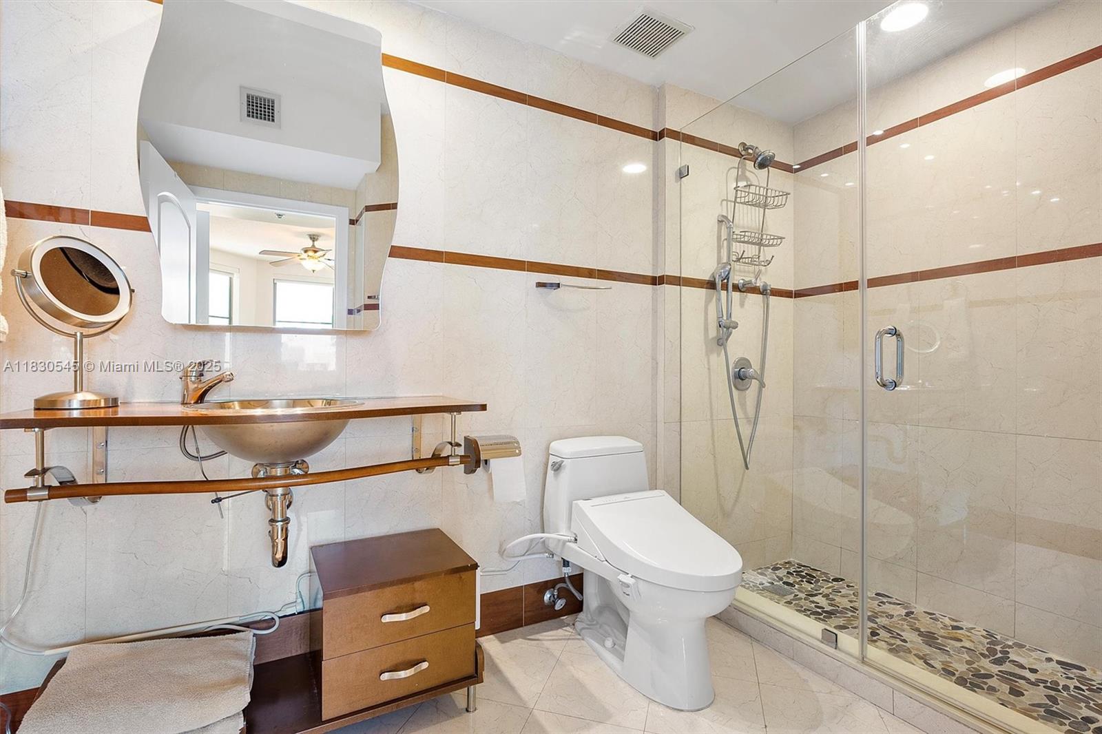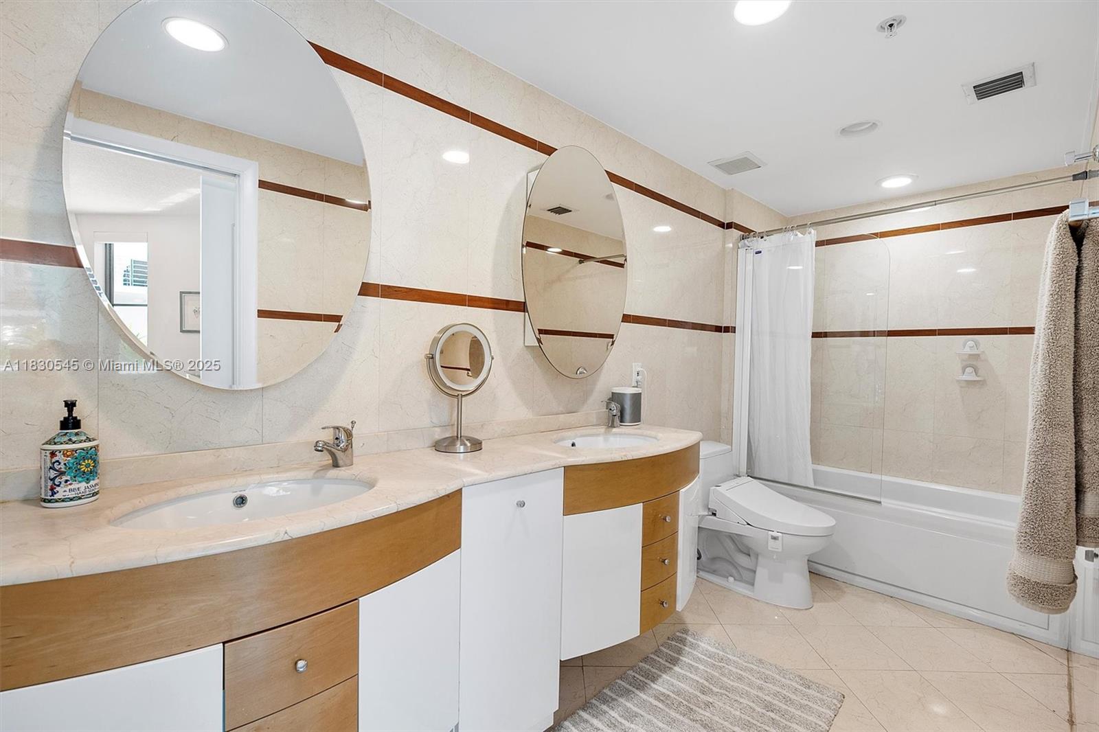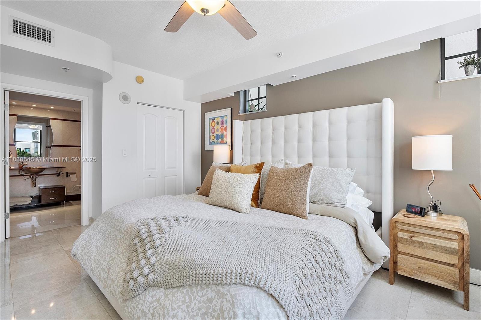 Experience sophisticated living in this elegant 2BR/2.5BA, 1,247 sqft residence in coveted South of Fifth. The thoughtfully designed split floor plan offers privacy with walk-in closets, a versatile dining/den area, and gallery-style lighting that enhances the spacious living area. The contemporary kitchen features abundant cabinetry, and a stylish barn-wood wrapped peninsula with seating for three. Enjoy a generous balcony overlooking the lush, serene tropical courtyard. The pet-friendly Cosmopolitan is a full-service building with resort-style amenities including pool, fitness center, and 24-hour security. Just steps from the beach, South Pointe Park, and world-class dining. Includes 2 covered parking spaces in tandem & private storage unit for secure, refined South of Fifth living.