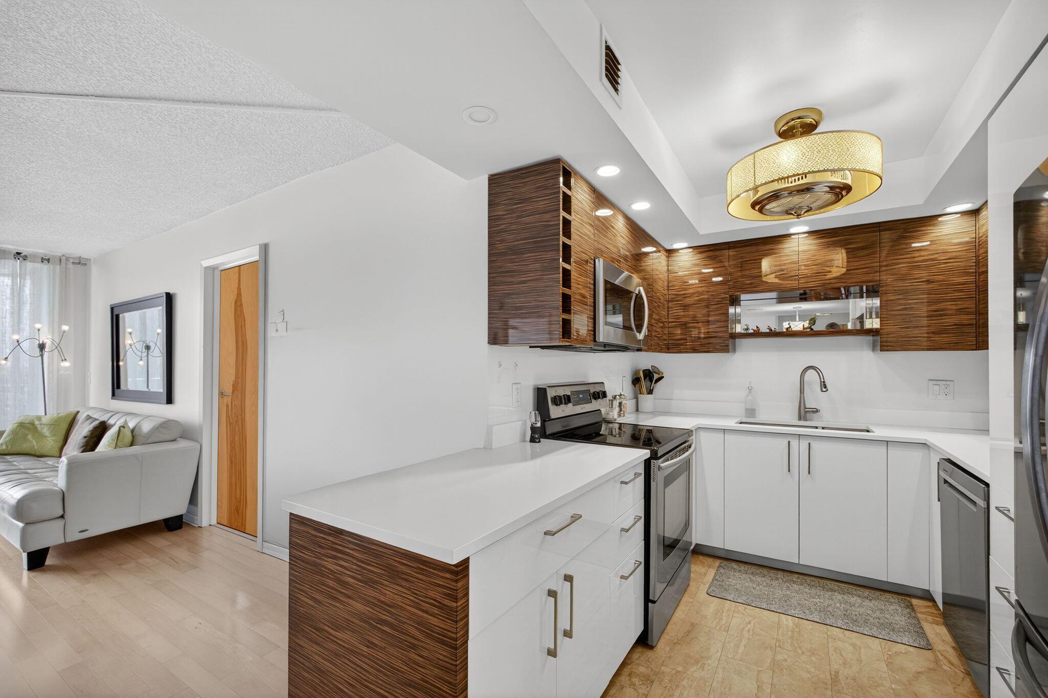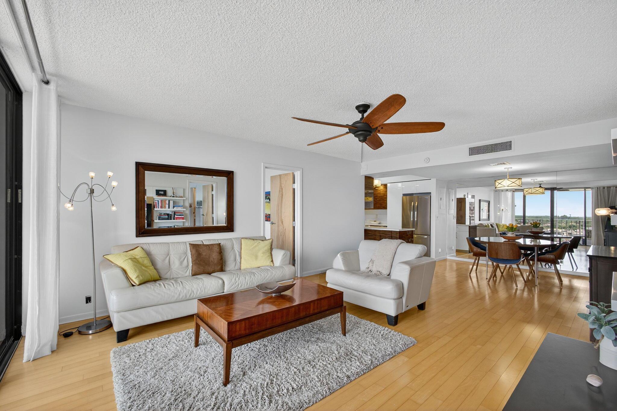 Very well modern updated 10th floor unit with gorgeous views of the intracoastal waterway, and N. Palm Beach Country Club golf course. Offered fully furnished turnkey. Enjoy sunsets, city lights and more! New impact windows and sliders. New updated kitchen and baths, Milestone inspection completed. Covered parking space. Balcony maintenance completed. Community offers heated swimming pool, tiki hut, day dock on intracoastal with kayak launch, BBQ area by the water, park-like grounds, bike storage room, billiard room, library, fitness room. Great clubhouse You must take a look.