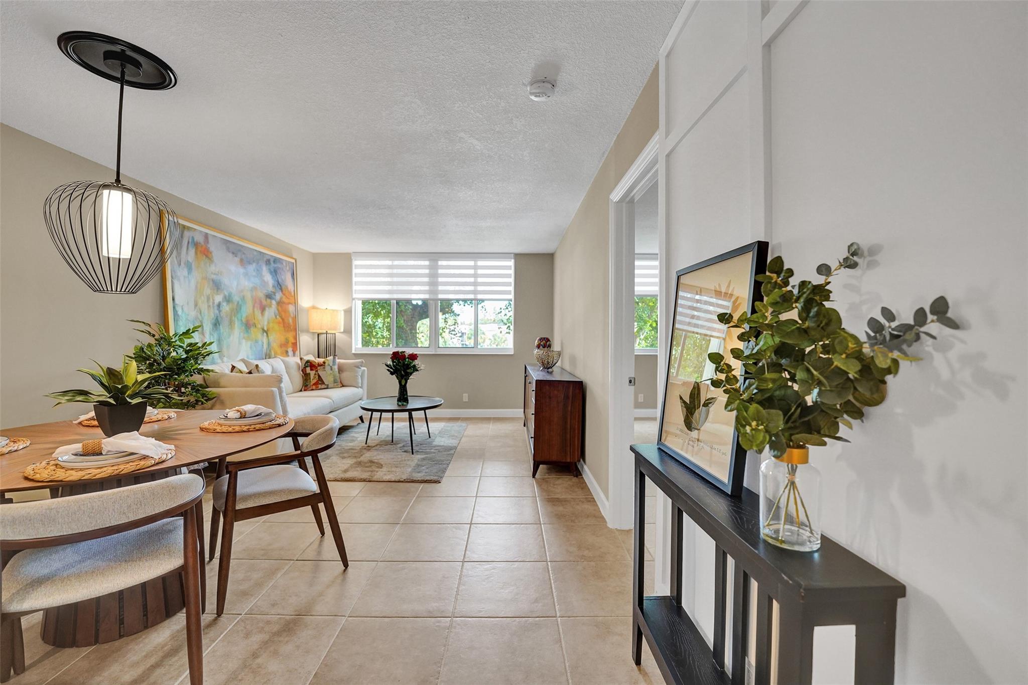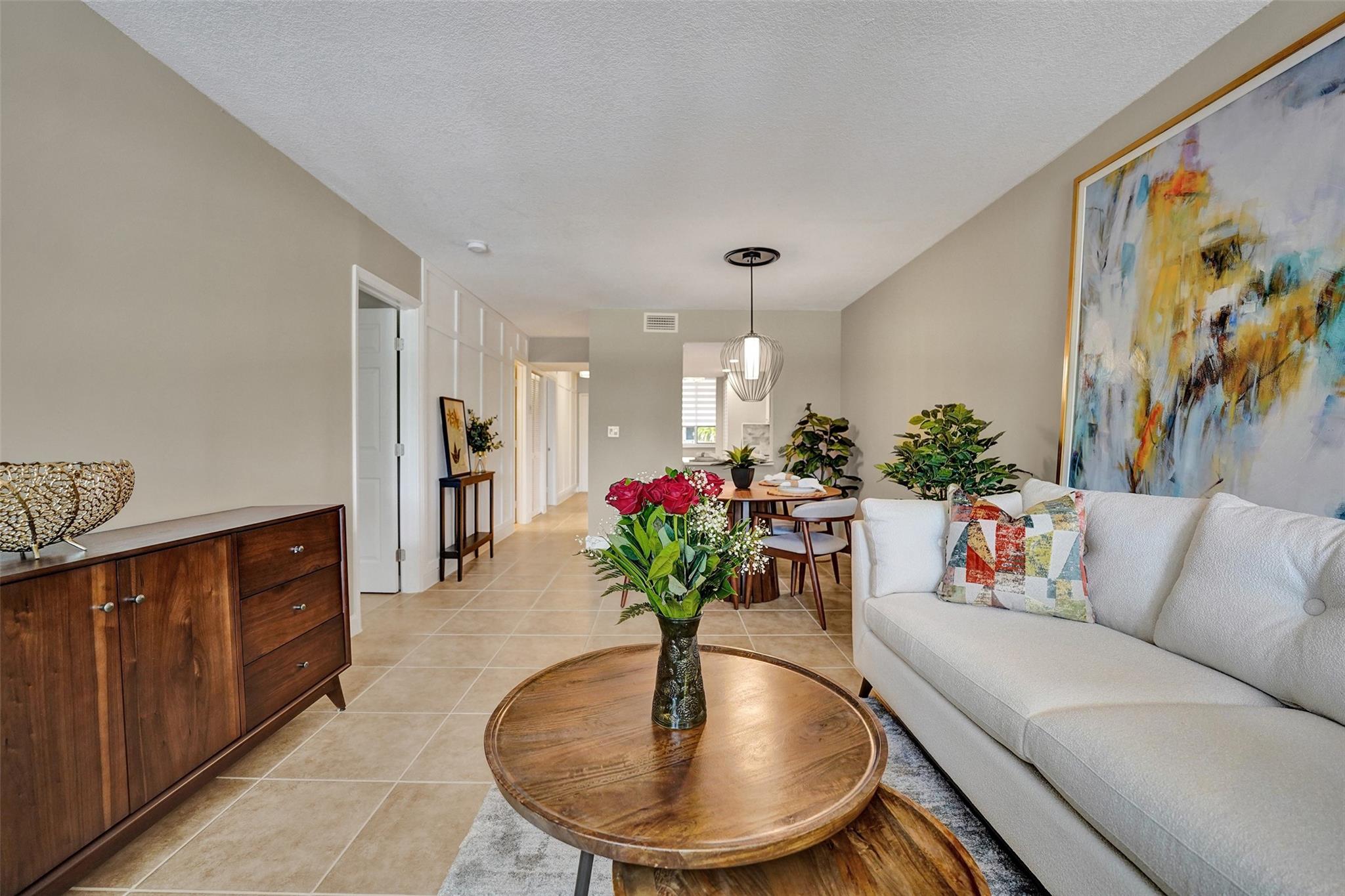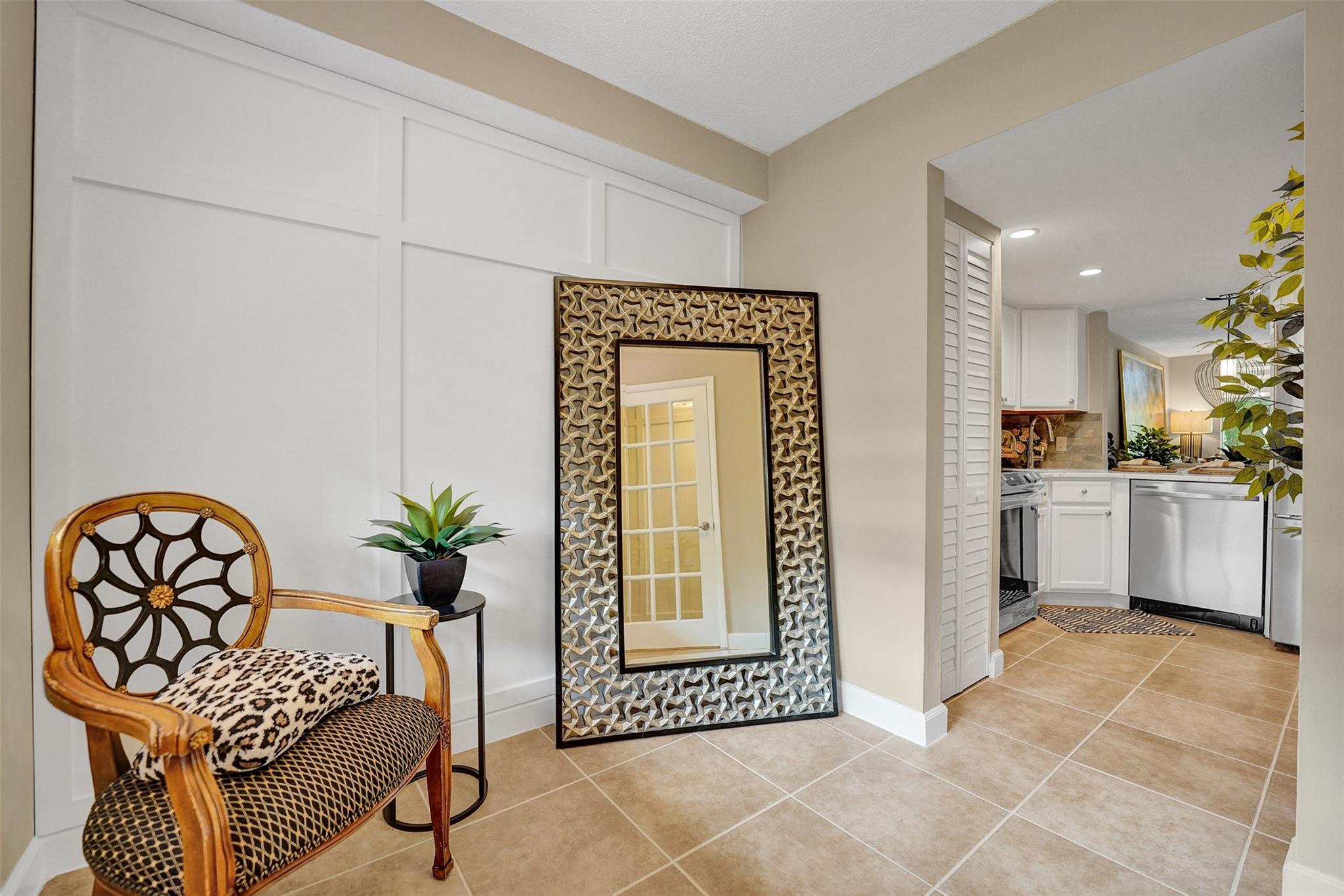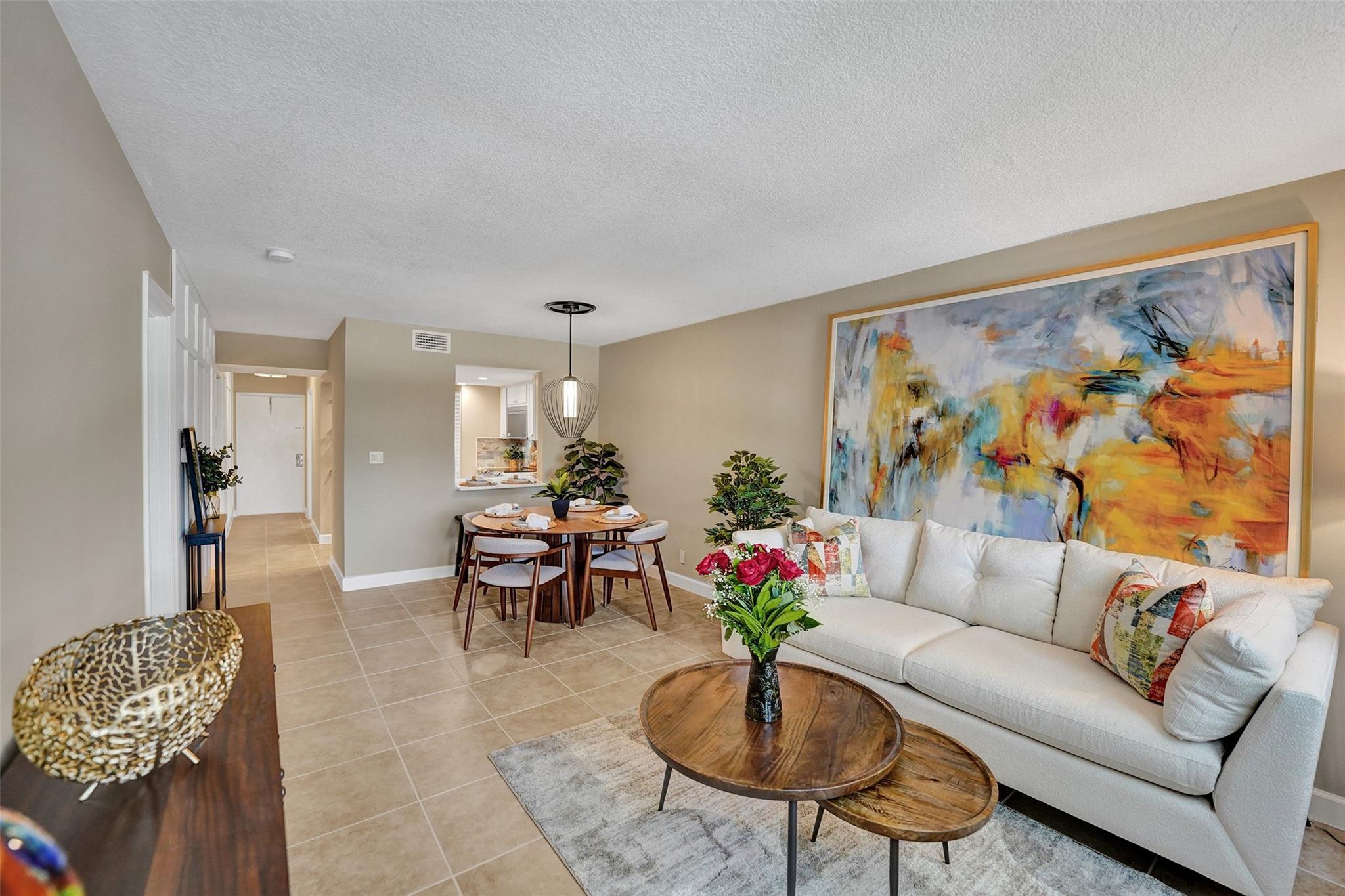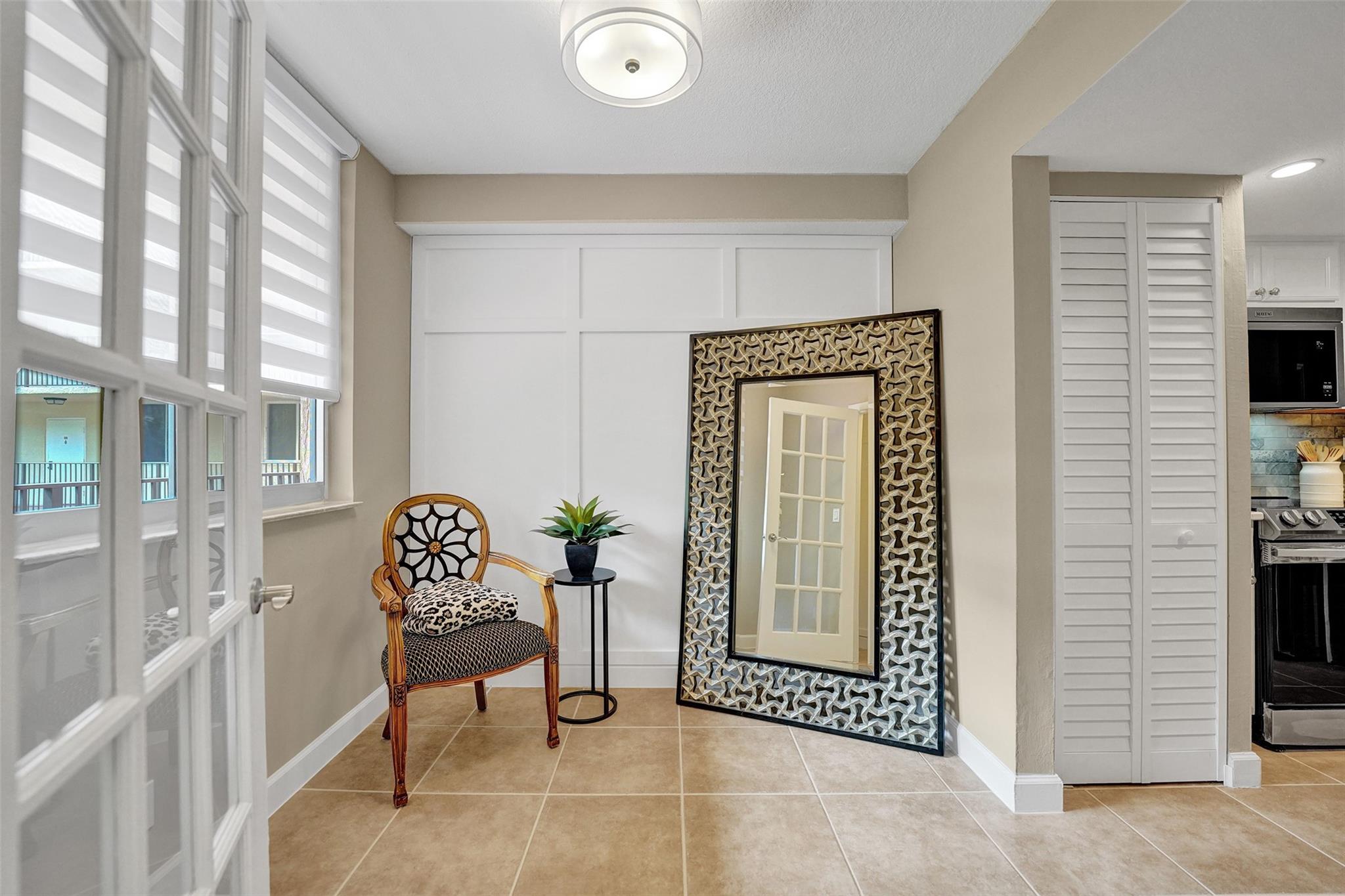 Welcome to this beautifully completely updated, move-in-ready condo featuring 2 spacious bedrooms, 2 modern bathrooms, plus BONUS den—perfect as a home office or even a 3rd bedroom. The interior showcases custom wood accent walls that add warmth and character throughout. Enjoy a fully renovated kitchen with beautiful white cabinetry, Quartz counter tops and brand-new stainless steel appliances, along with totally updated bathrooms featuring stylish finishes. Full IMPACT WINDOWS and a newer A/C (2020) provide comfort and peace of mind all year long. Private storage unit included. Located in a well-maintained pet-friendly community with large pool and spa has a low HOA of just $352/month. Centrally situated near shops, dining. **NO RENTALS ALLOWED**
