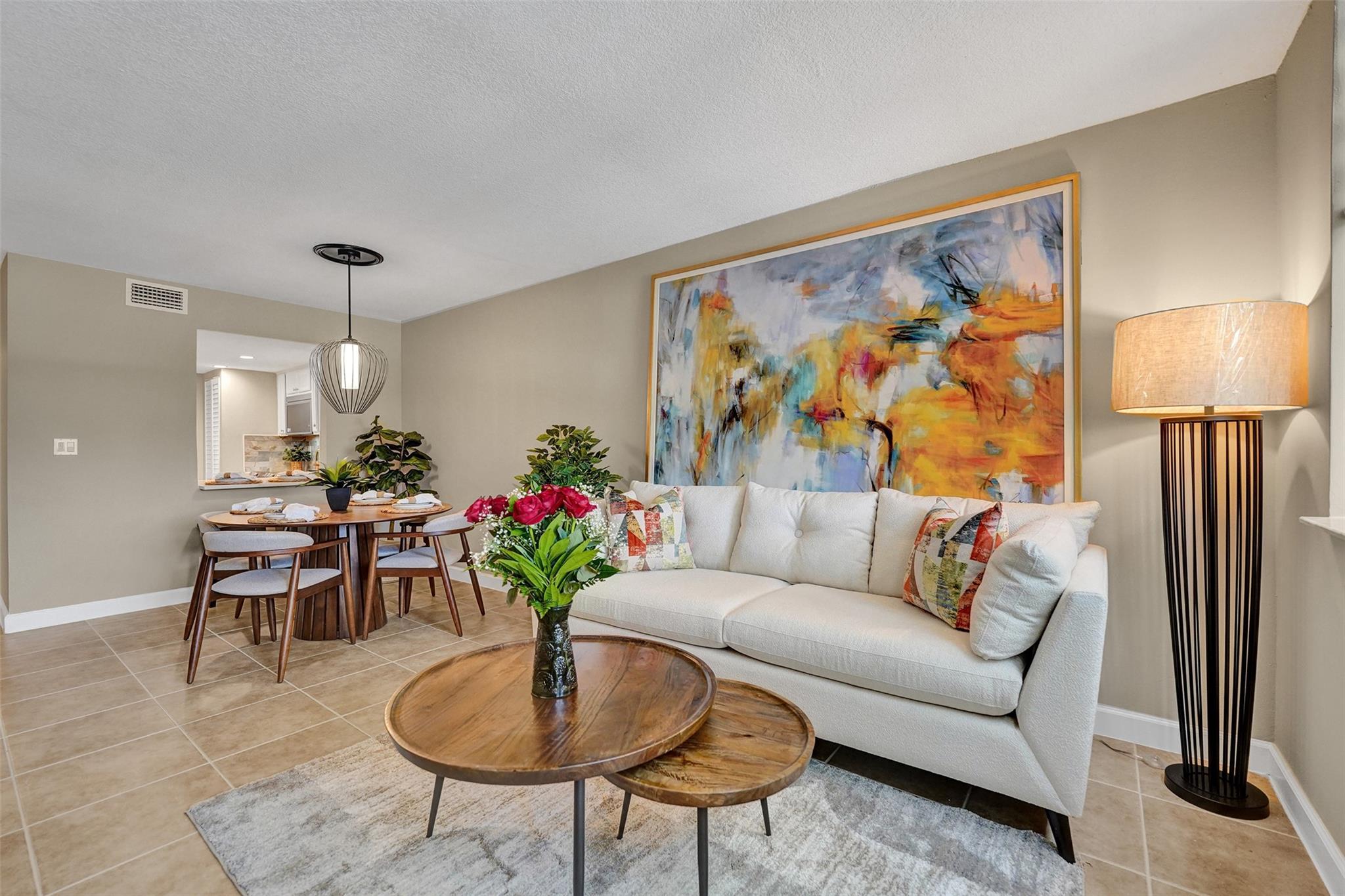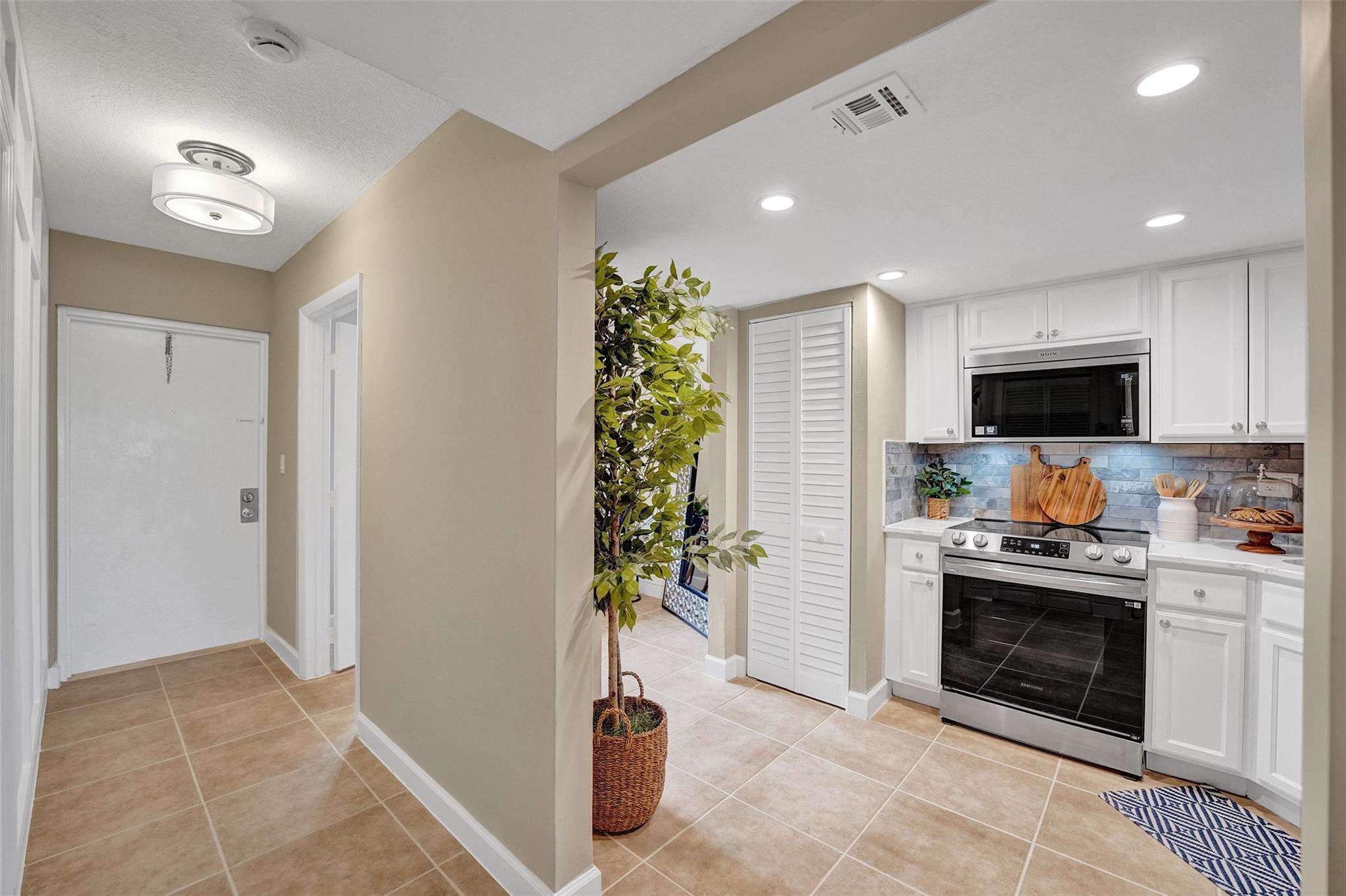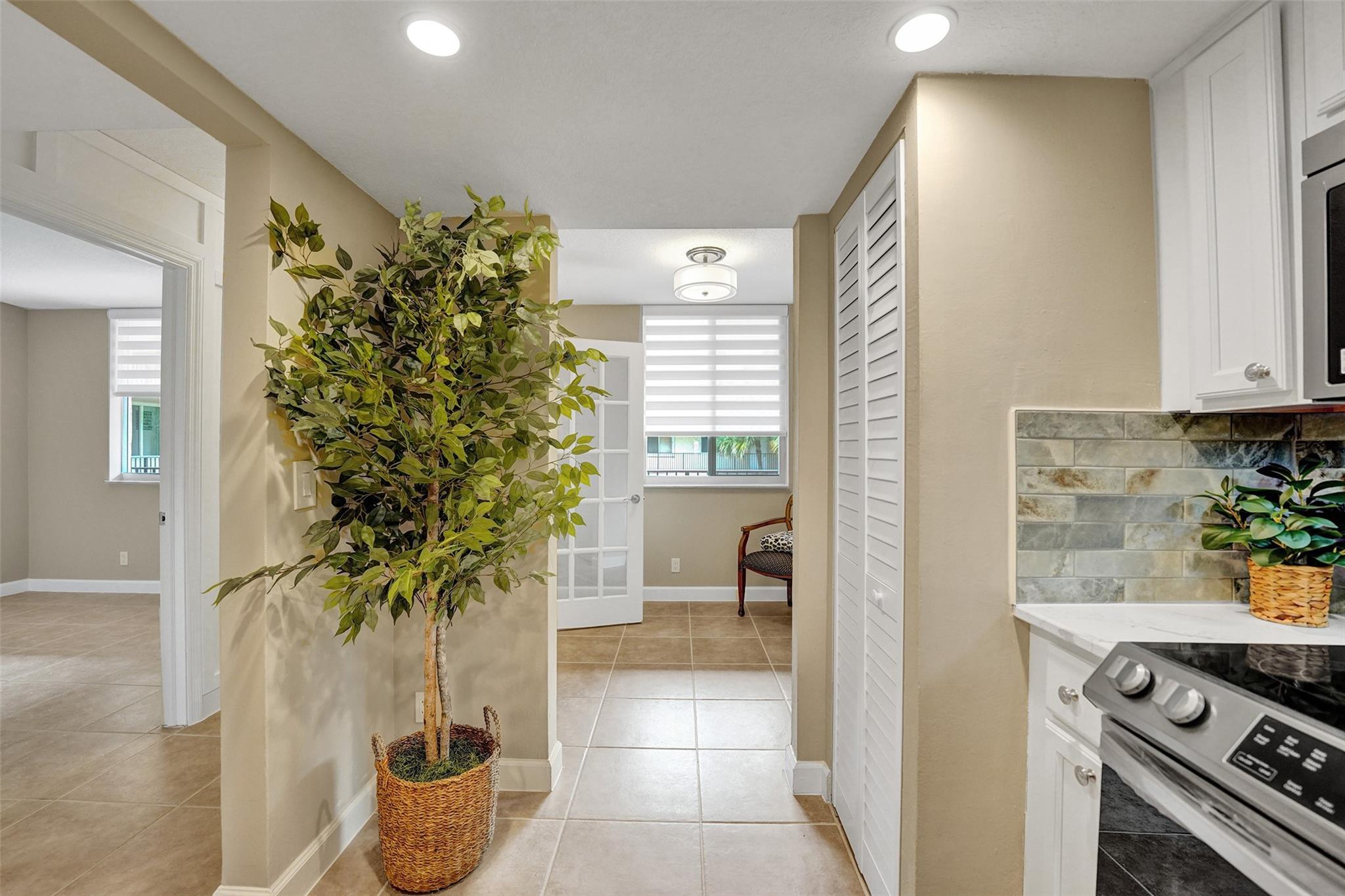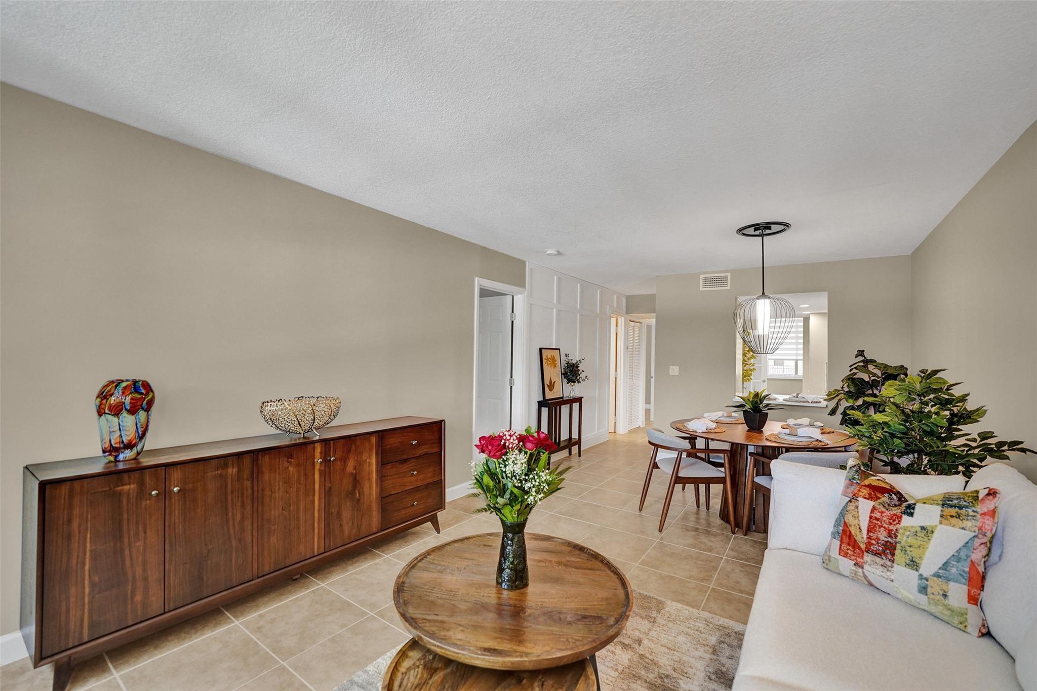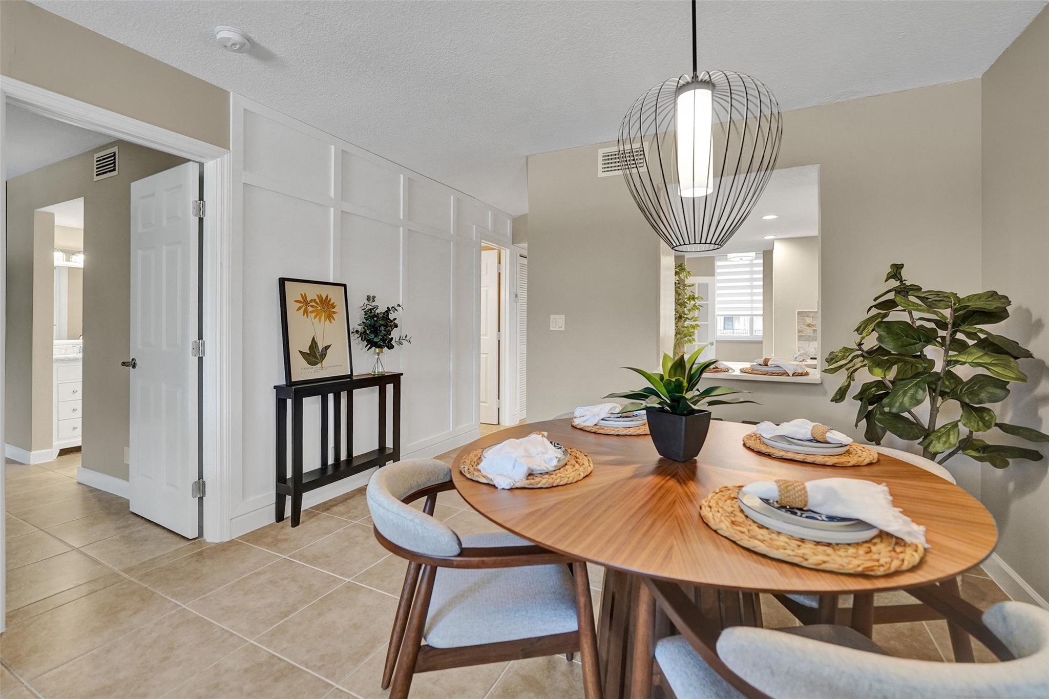 Welcome to this beautifully completely updated, move-in-ready condo featuring 2 spacious bedrooms, 2 modern bathrooms, plus BONUS den—perfect as a home office or even a 3rd bedroom. The interior showcases custom wood accent walls that add warmth and character throughout. Enjoy a fully renovated kitchen with beautiful white cabinetry, Quartz counter tops and brand-new stainless steel appliances, along with totally updated bathrooms featuring stylish finishes. Full IMPACT WINDOWS and a newer A/C (2020) provide comfort and peace of mind all year long. Private storage unit included. Located in a well-maintained pet-friendly community with large pool and spa has a low HOA of just $352/month. Centrally situated near shops, dining. **NO RENTALS ALLOWED**