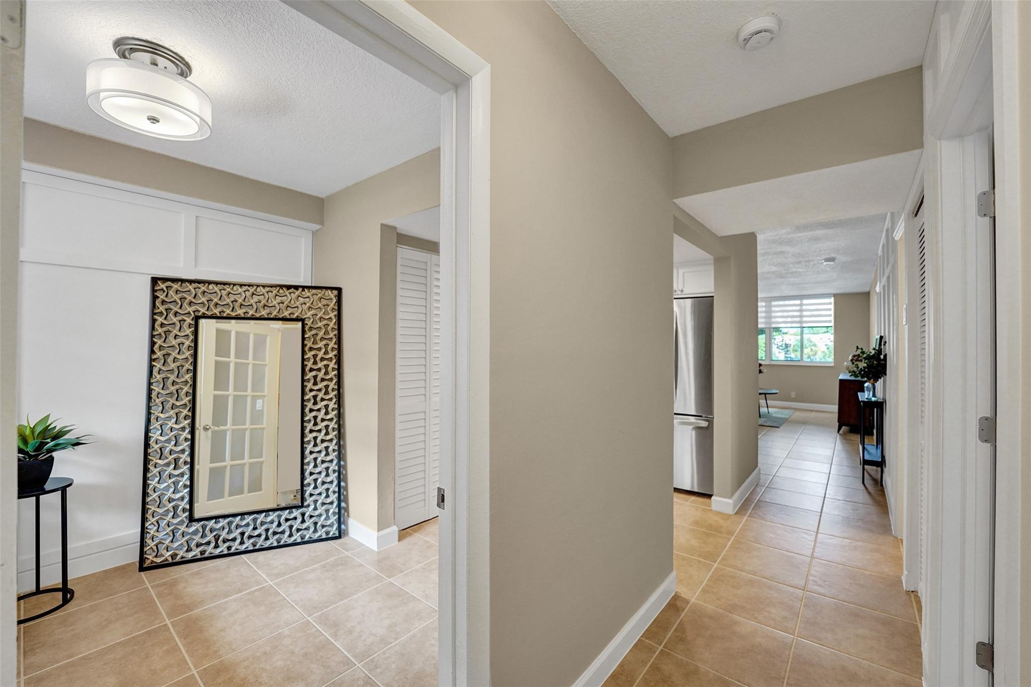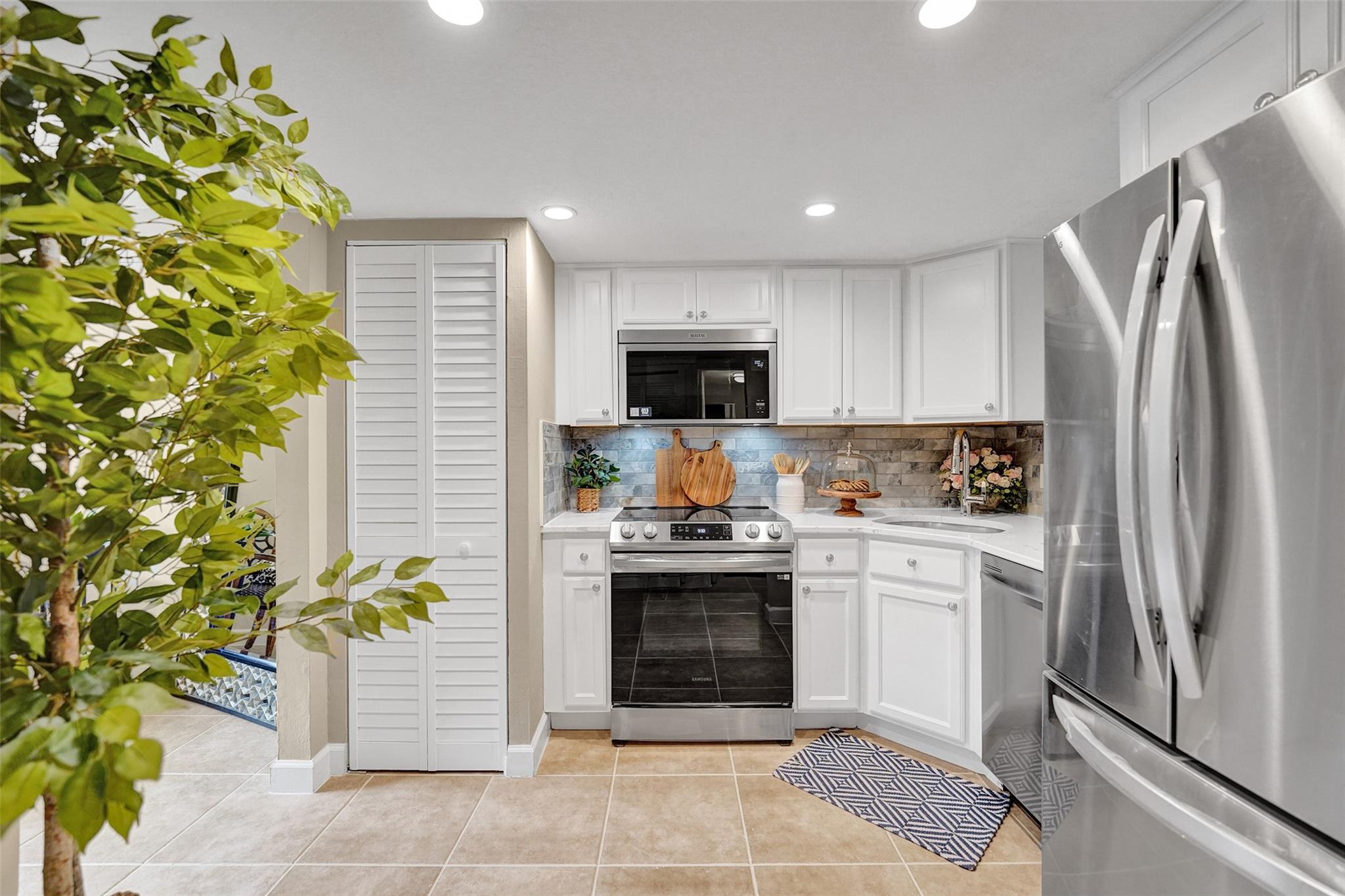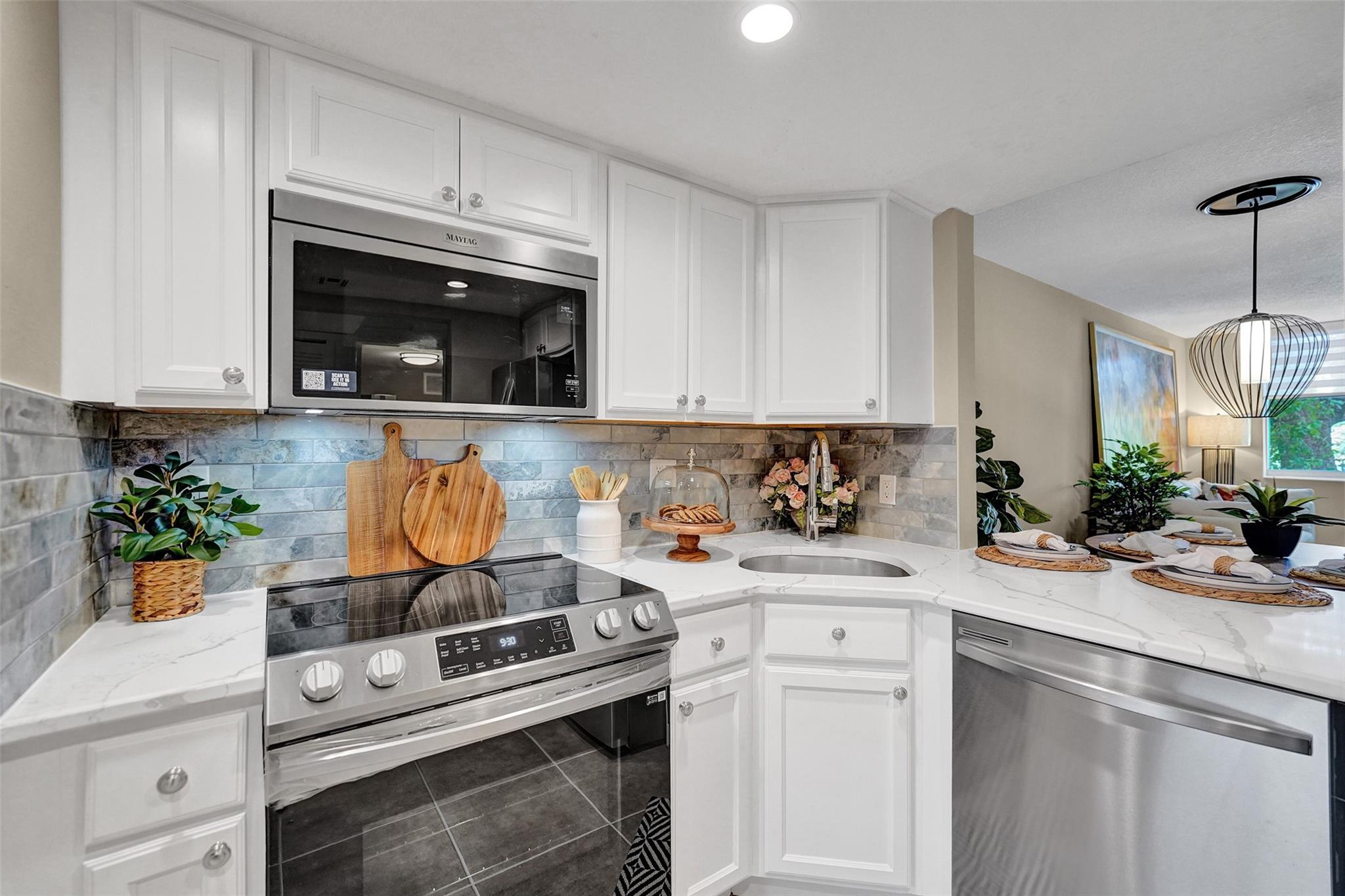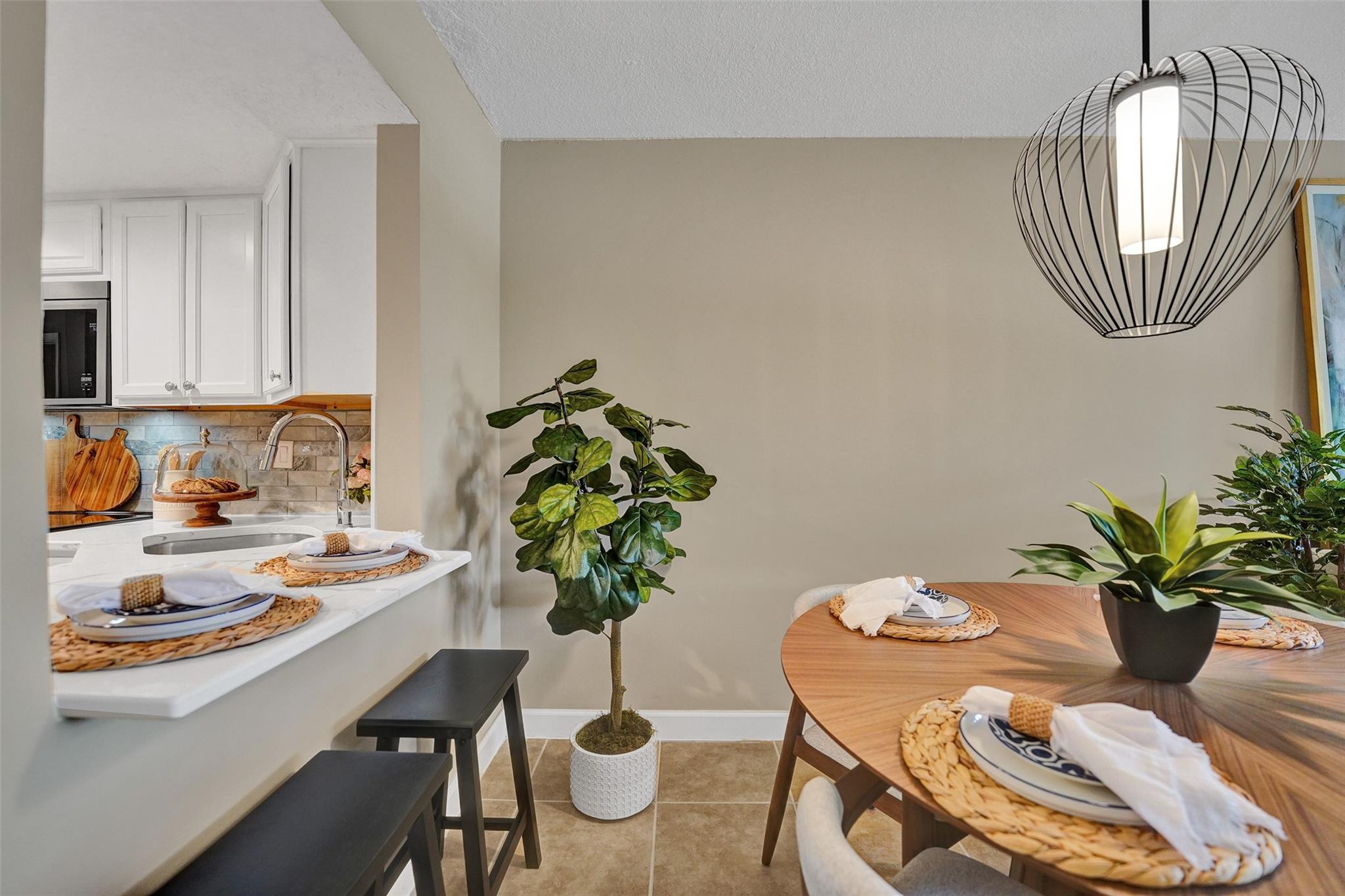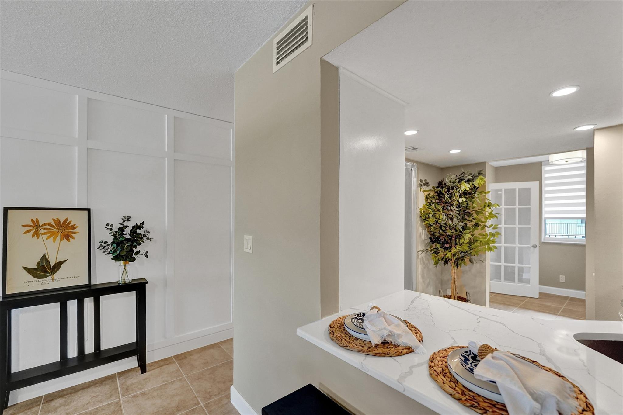 Welcome to this beautifully completely updated, move-in-ready condo featuring 2 spacious bedrooms, 2 modern bathrooms, plus BONUS den—perfect as a home office or even a 3rd bedroom. The interior showcases custom wood accent walls that add warmth and character throughout. Enjoy a fully renovated kitchen with beautiful white cabinetry, Quartz counter tops and brand-new stainless steel appliances, along with totally updated bathrooms featuring stylish finishes. Full IMPACT WINDOWS and a newer A/C (2020) provide comfort and peace of mind all year long. Private storage unit included. Located in a well-maintained pet-friendly community with large pool and spa has a low HOA of just $352/month. Centrally situated near shops, dining. **NO RENTALS ALLOWED**