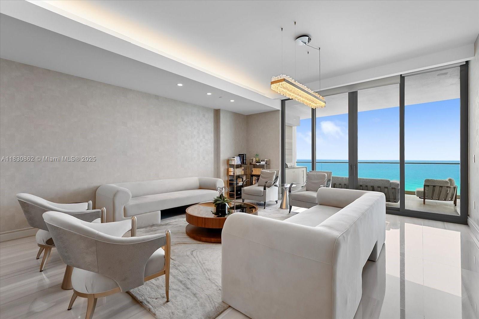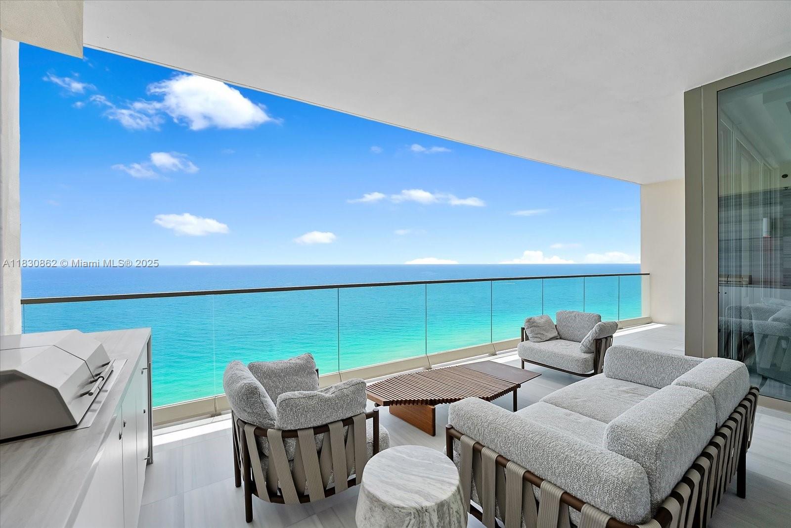 Step into a world of refined sophistication in this stunning Vecchio residence, located in the prestigious Estates at Acqualina. This oceanfront home offers a seamless blend of timeless design and modern luxury. With panoramic views of the Atlantic and Intracoastal, the residence features expansive terraces, a summer kitchen, and a thoughtfully designed flow-through layout. Inside, marble floors lead you through a grand living space with custom cabinetry, a La Cornue gas range, and a gold onyx spa-inspired bath with a steam shower. A den provides flexibility for a home office or media retreat, while smart-home automation ensures effortless living. The Estates at Acqualina delivers an extraordinary lifestyle with five-star amenities, including fine dining, and a private beach club.