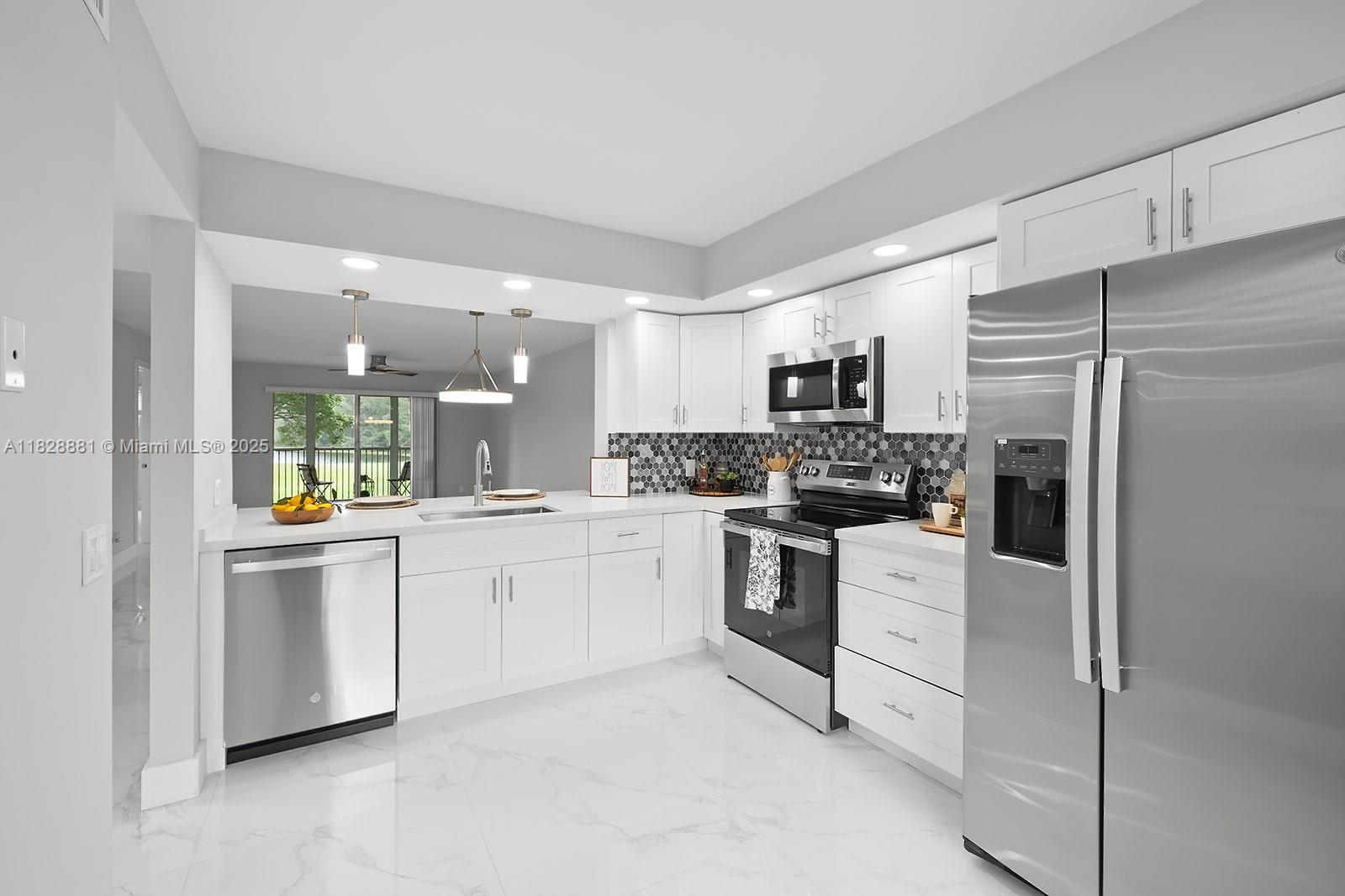 Welcome to this beautifully updated 2/2 unit w/a serene golf view that greets you as you enter the front door. This condo features all-new appliances, ceramic floors throughout, new balcony flooring, & newly plastered walls for a modern feel. Enjoy the convenience of an in-unit washer and dryer, a new hot water tank, and a 2-year-old A/C unit with a Nest Wi-Fi thermostat for energy-efficient comfort. Additional upgrades include a stylish barn door in the bathroom. The HOA is $512/month plus CVP $266/month, and includes water, cable, internet, and access to endless amenities, including a million-dollar clubhouse. Located in Buckingham East I at Century Village, one of Pembroke Pines’ most desirable 55+ active adult communities—minutes from The Shops at Pembroke Gardens and major highways.