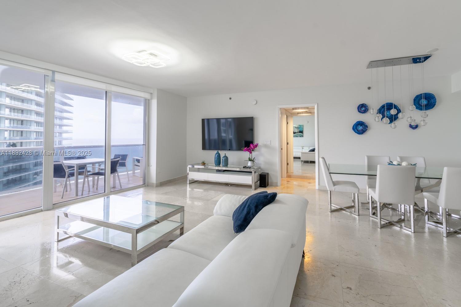 Living in this condo is like living in a hotel, located in Sunny Isles Beach, this stunning unit boasts 2 beds /2 baths, beautiful and wide living and dinning room. Marble floors throughout add a touch of elegance to every room, luxuries cabinets, quartz counters and stainless steel appliances in the kitchen, semi-private entrance from the elevator, and huge balcony with impressive ocean and city views. Amenities include: direct access to the beach with towel and umbrella service, heated pool, gym, sauna, and tennis court, all of them offer endless opportunities for recreation and relaxation. One parking garage and excellent valet parking service for additional parking. Don't miss out on the opportunity to make this amazing Condo your new home.