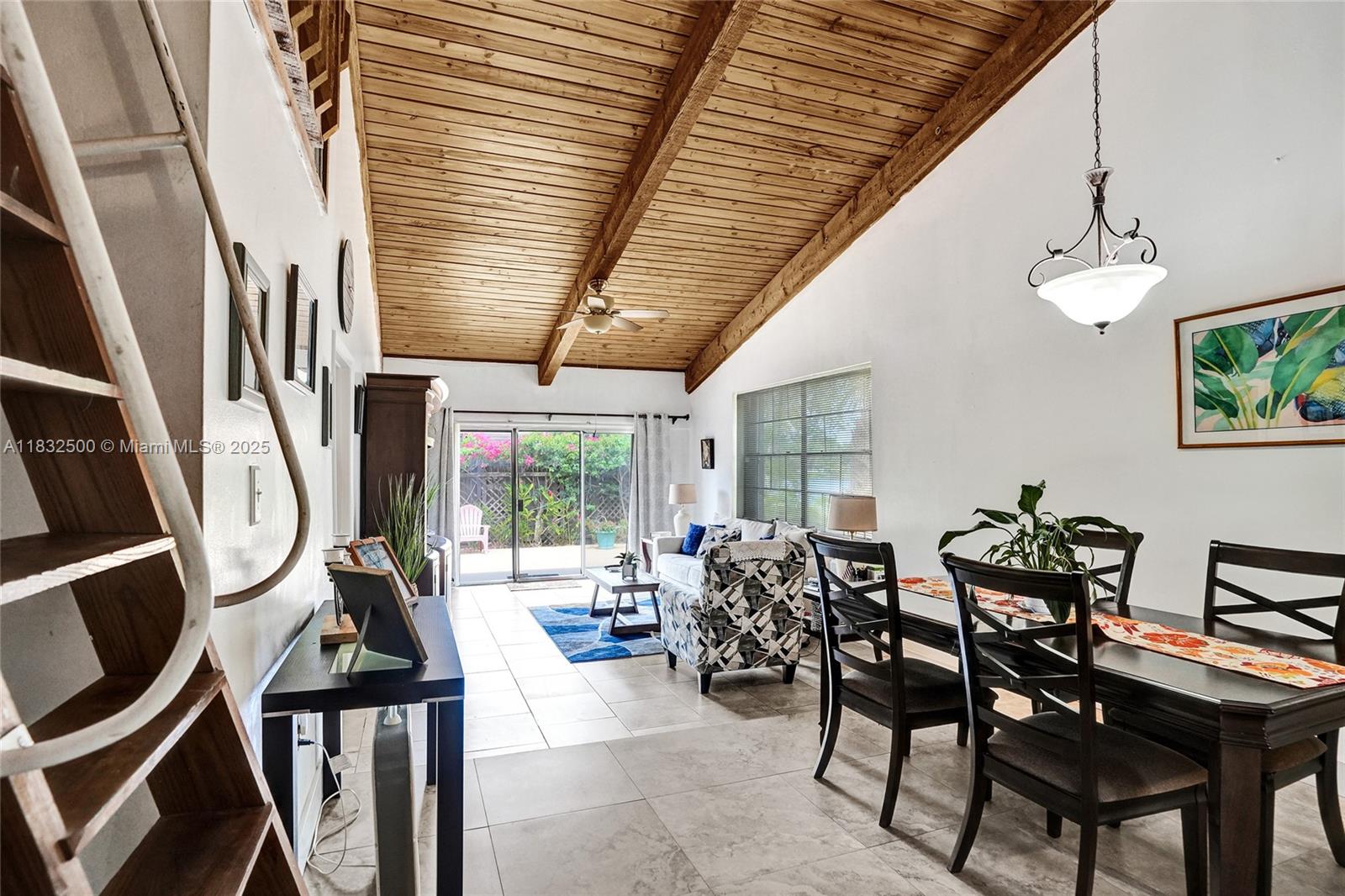 Lovely 2/2 corner Cedarwoods villa with a loft located on the lake in an adorable community in the heart of Pembroke Lakes. Open and airy unit has wood vaulted ceilings, eat in kitchen, an open patio overlooking a beautiful lake plus a large storage shed on the west side of the villa. Plenty of cabinetry in the eat in kitchen overlooking the dining and living room. Large walk in closets in both bedrooms. The loft area can be used as an office, play area or even a hobby room. Beautiful lush landscaping in the backyard. Enjoy the constant breezes from the patio. Lots of windows for great natural lighting throughout. Located on a dead end street with 2 parking spots plus guest parking across from the unit. Great biking/walking path and child play areas. Low maintenance!